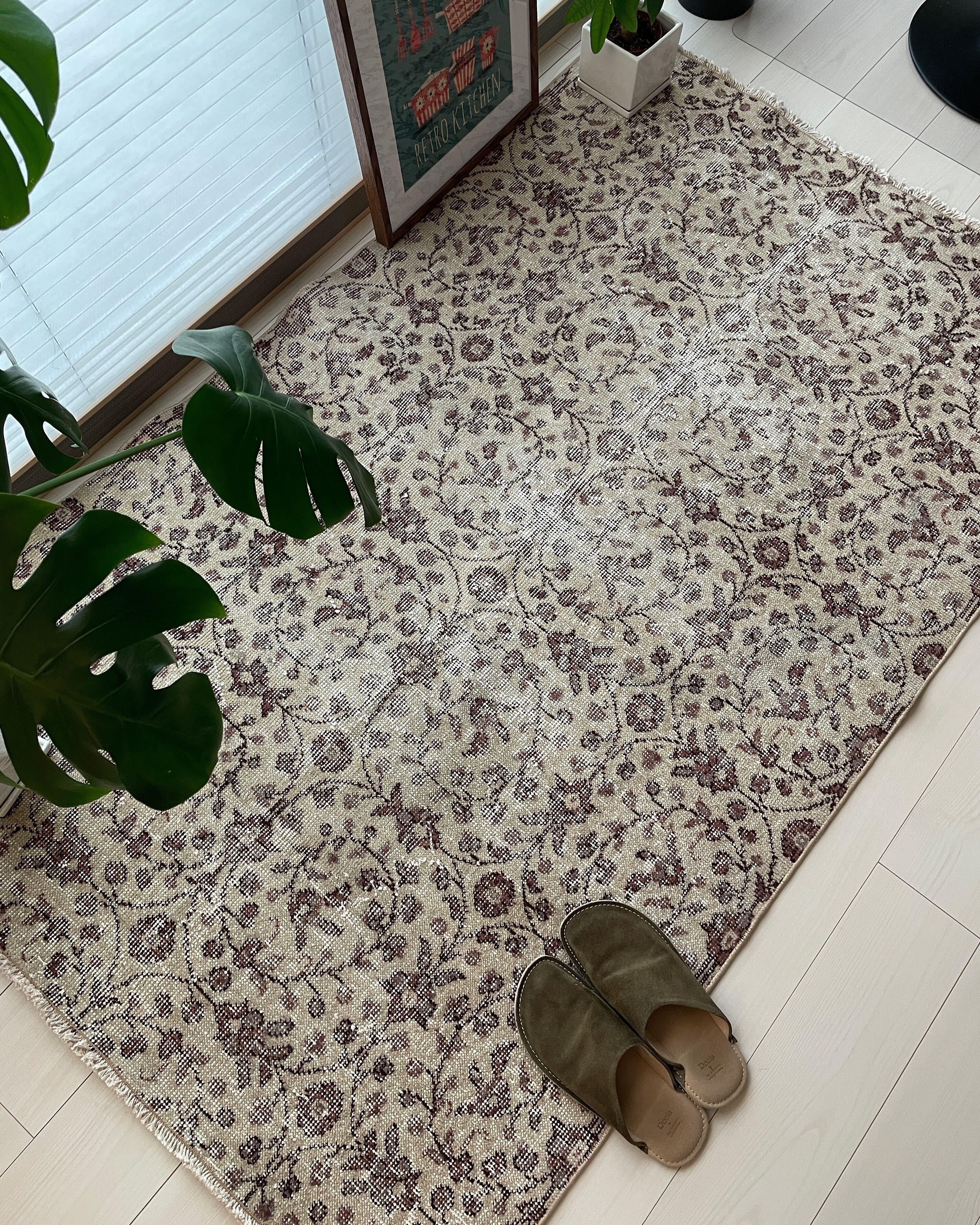 ヴィンテージラグは、糸のほつれ、抜け、毛羽立ち、シミなど見られる場合がございます。ヴィンテージ品ならではの雰囲気としてお楽しみいただけますと幸いです。