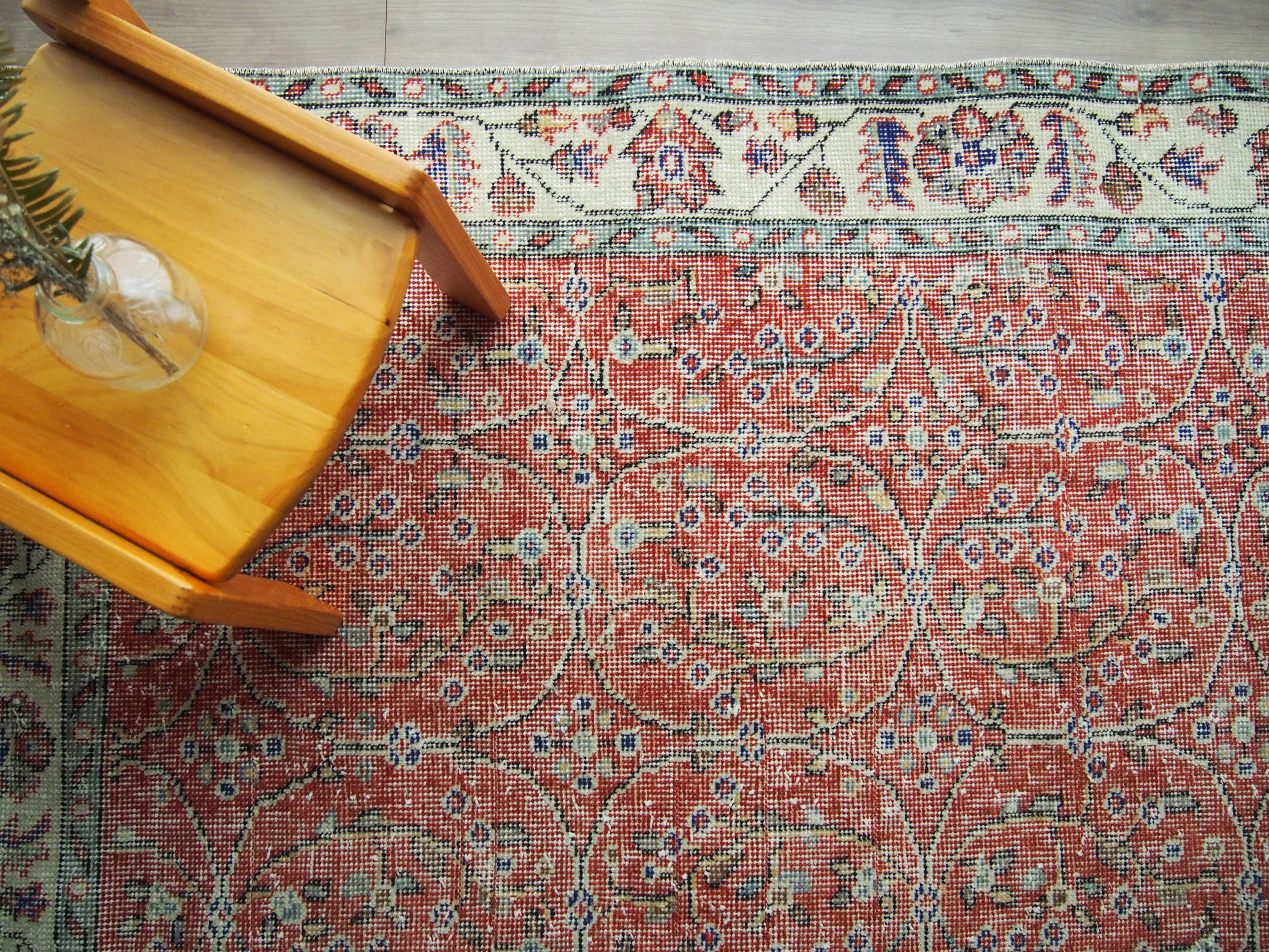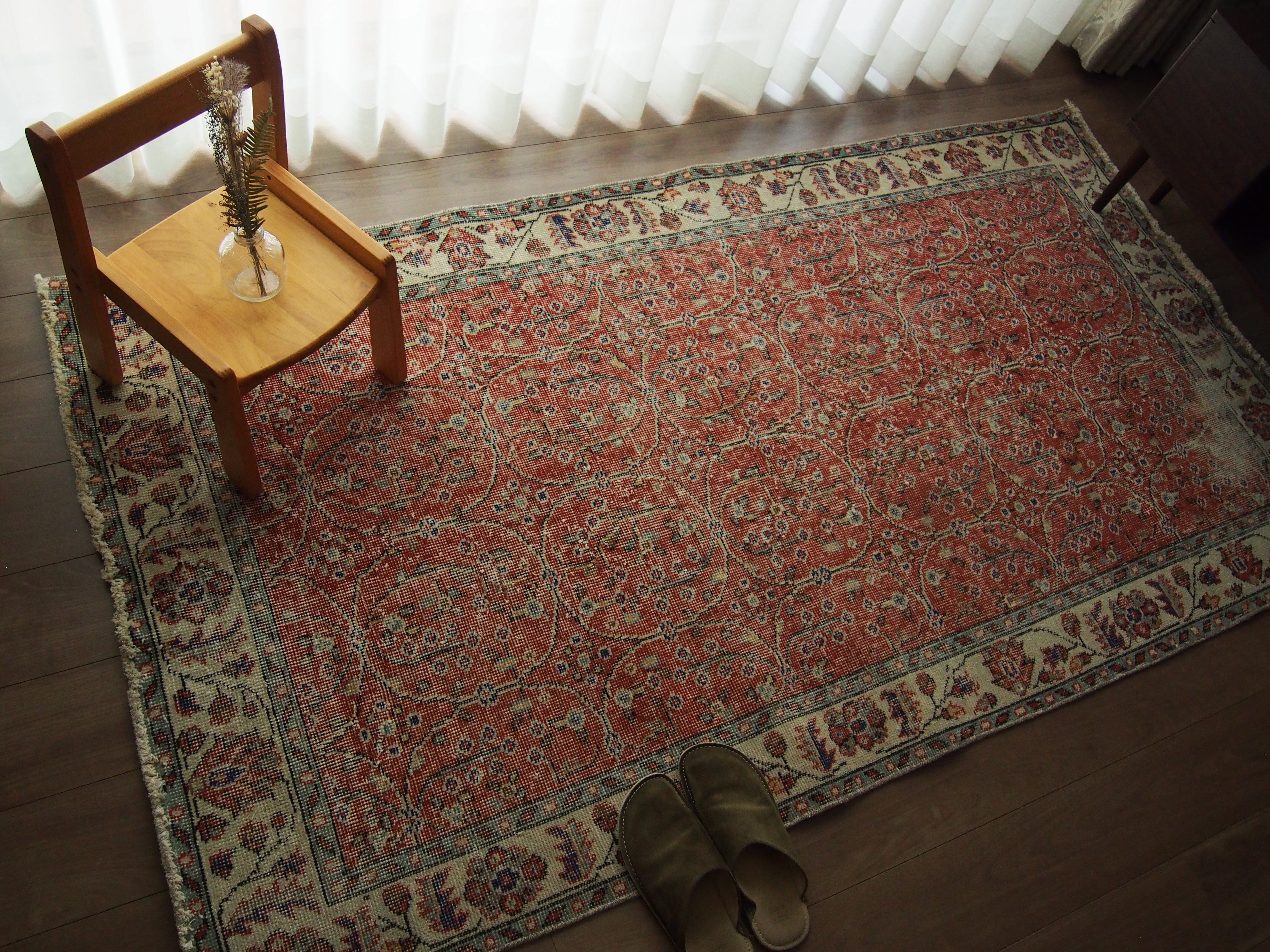 ヴィンテージラグは、糸のほつれ、抜け、毛羽立ち、シミなど見られる場合がございます。ヴィンテージ品ならではの雰囲気としてお楽しみいただけますと幸いです。