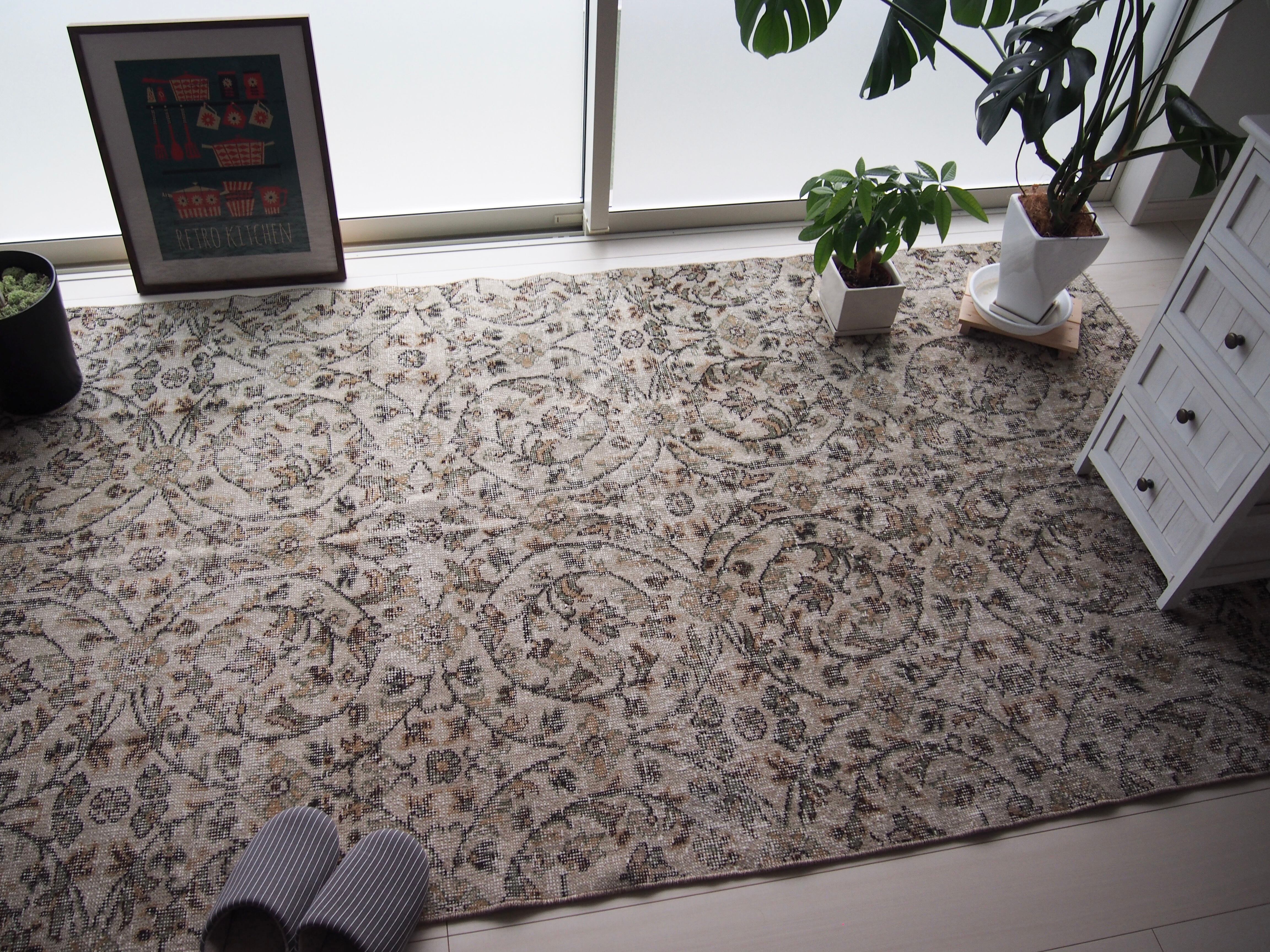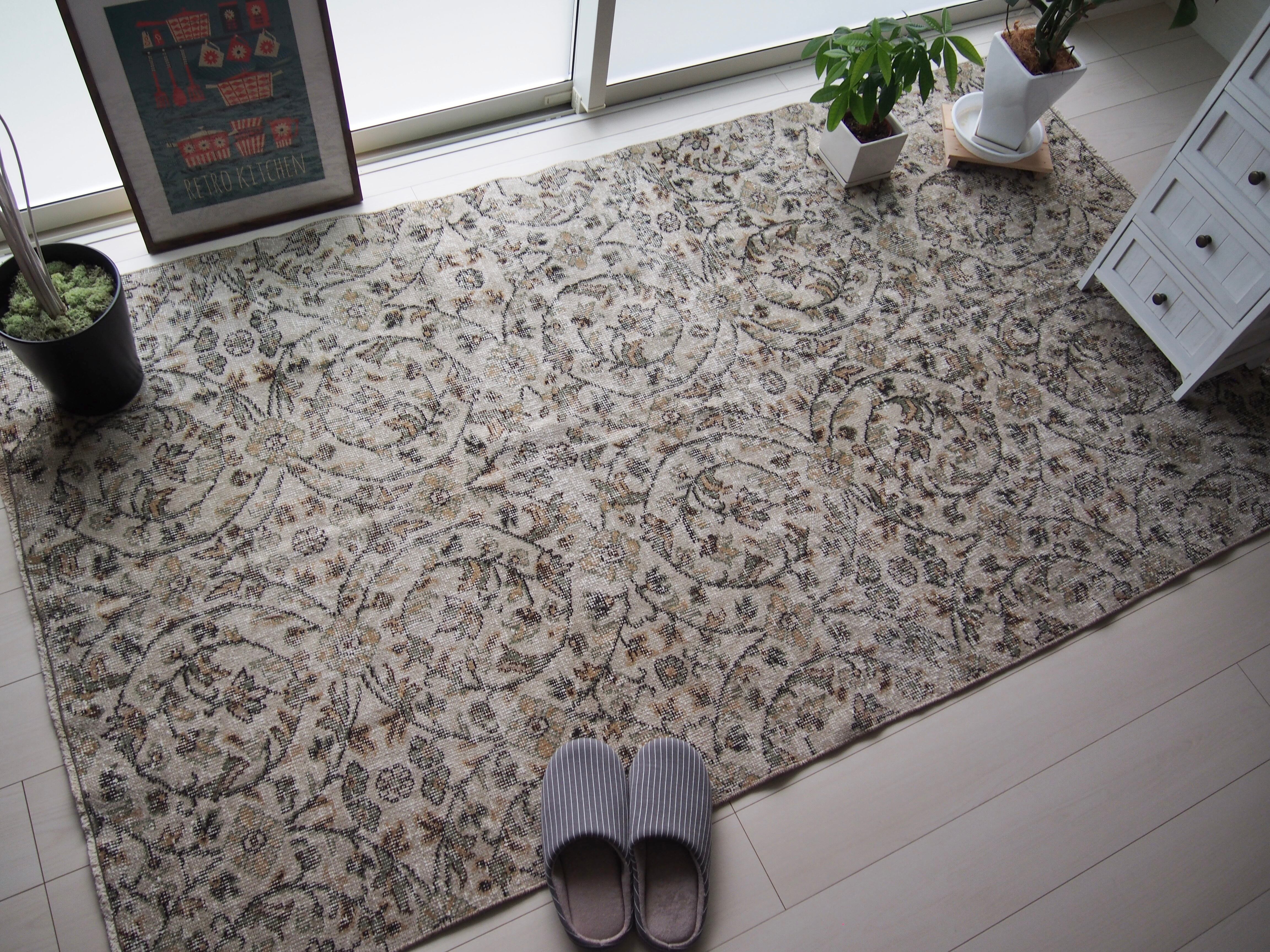 ヴィンテージのトルコラグは、短くカットされた毛足が特徴です。