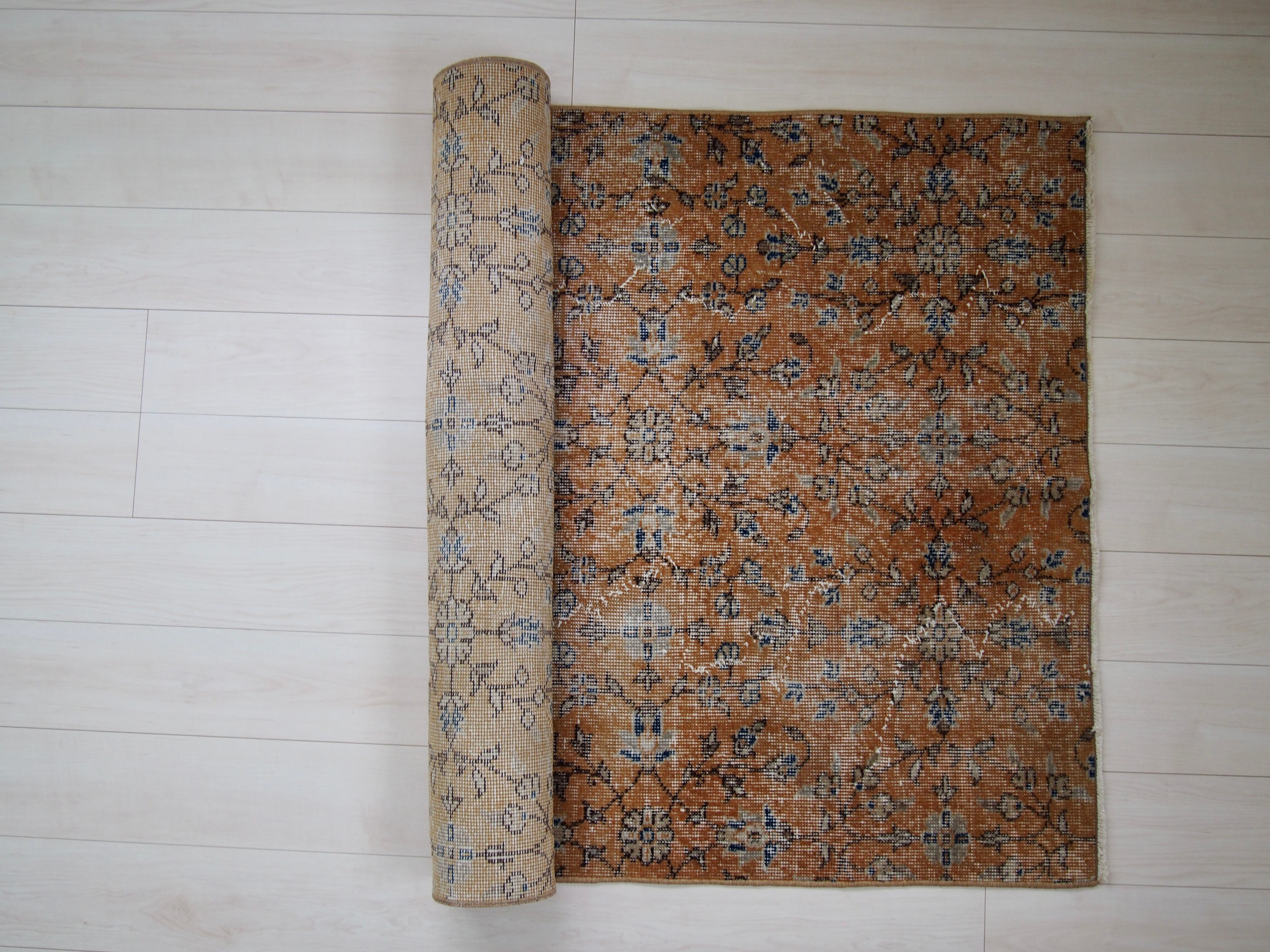 70's vintage rug -orange floral-
