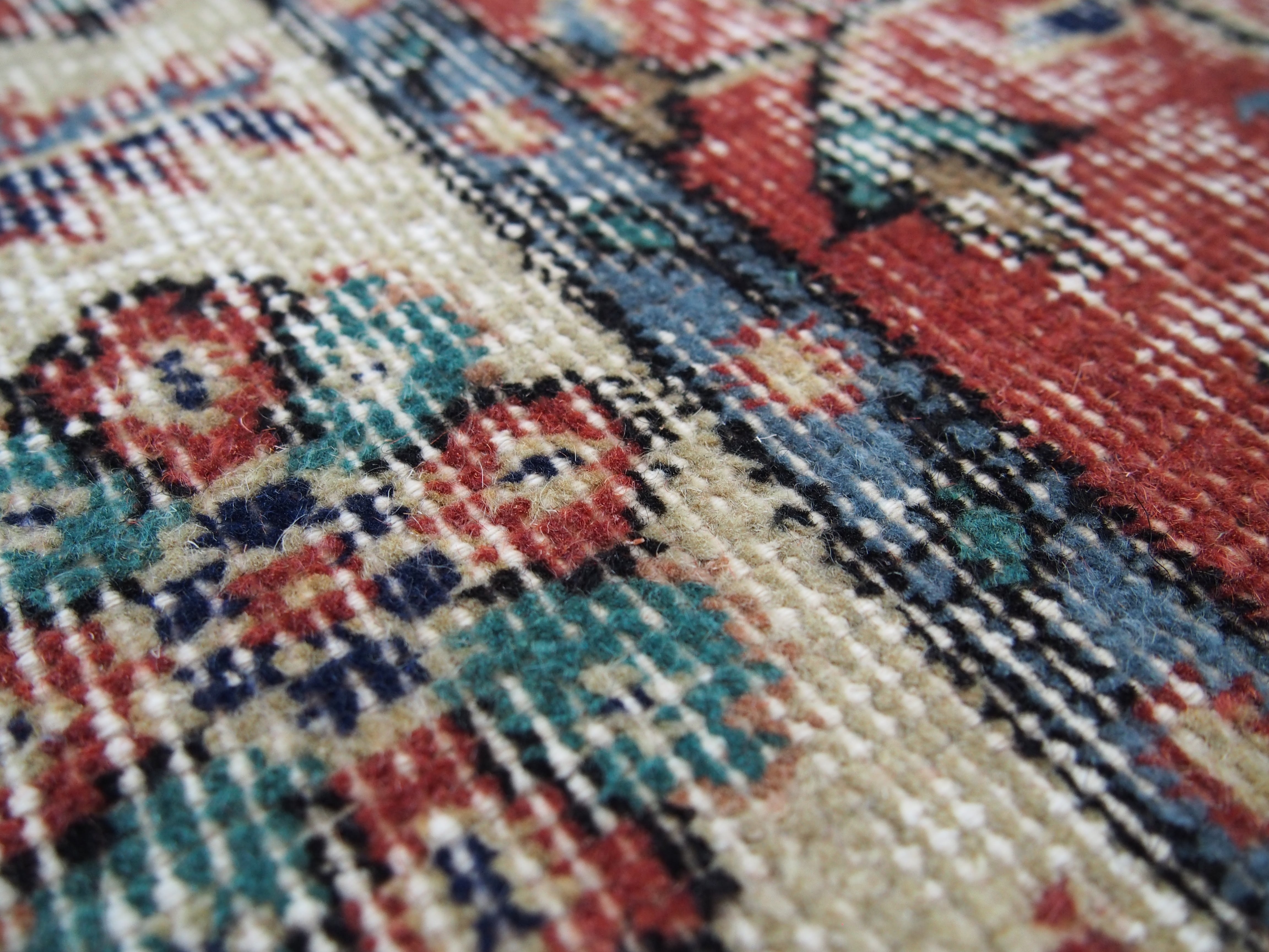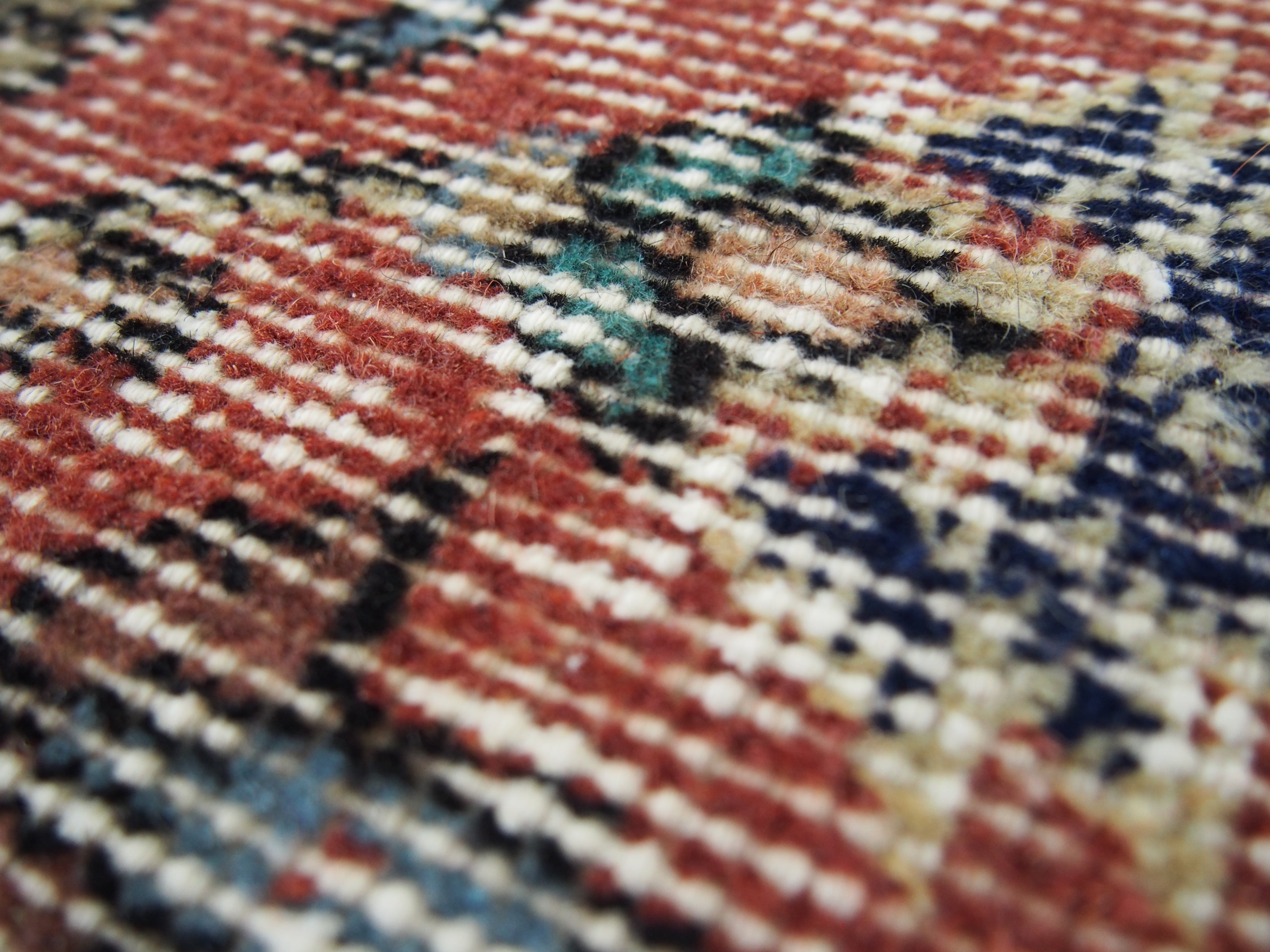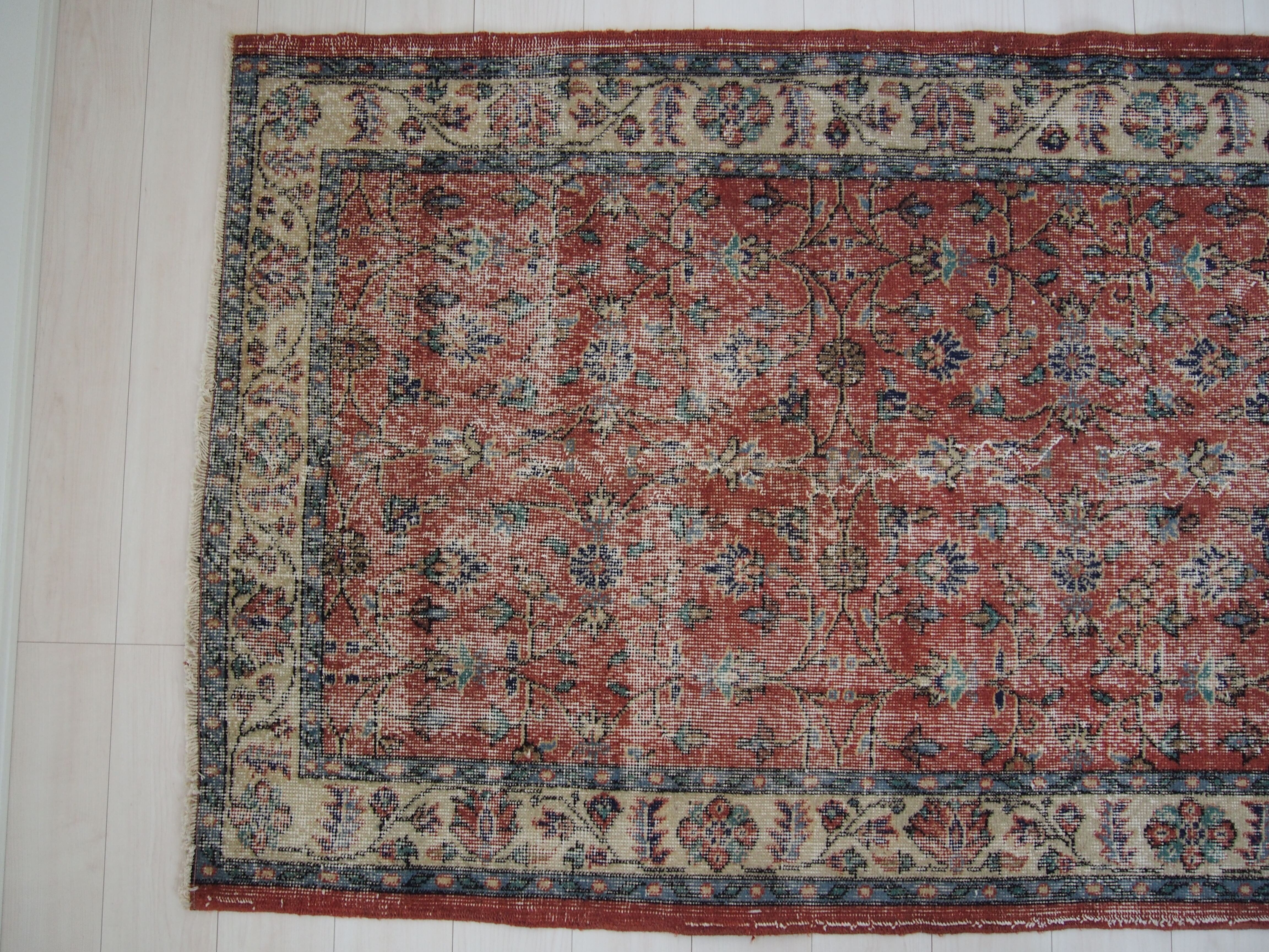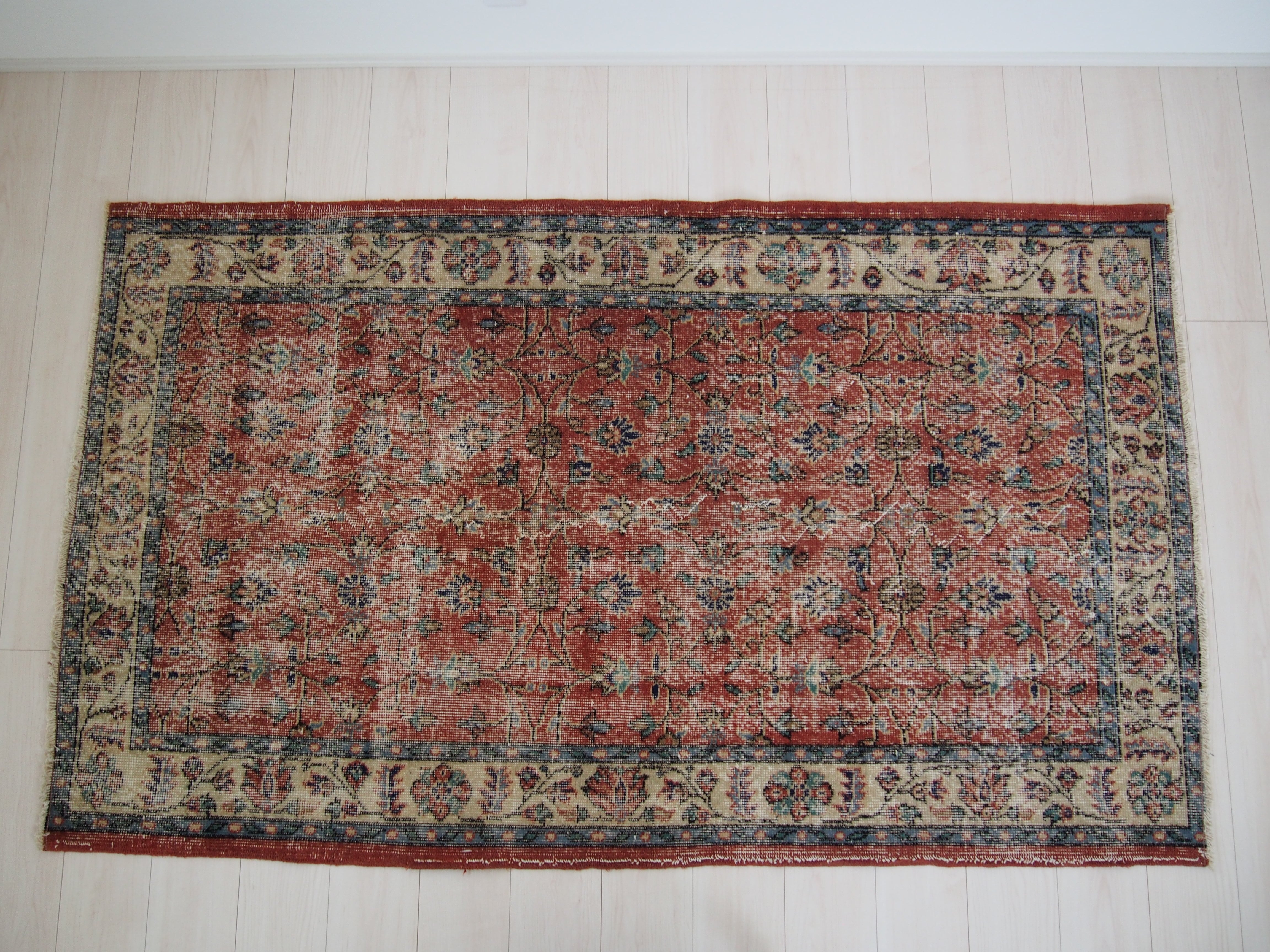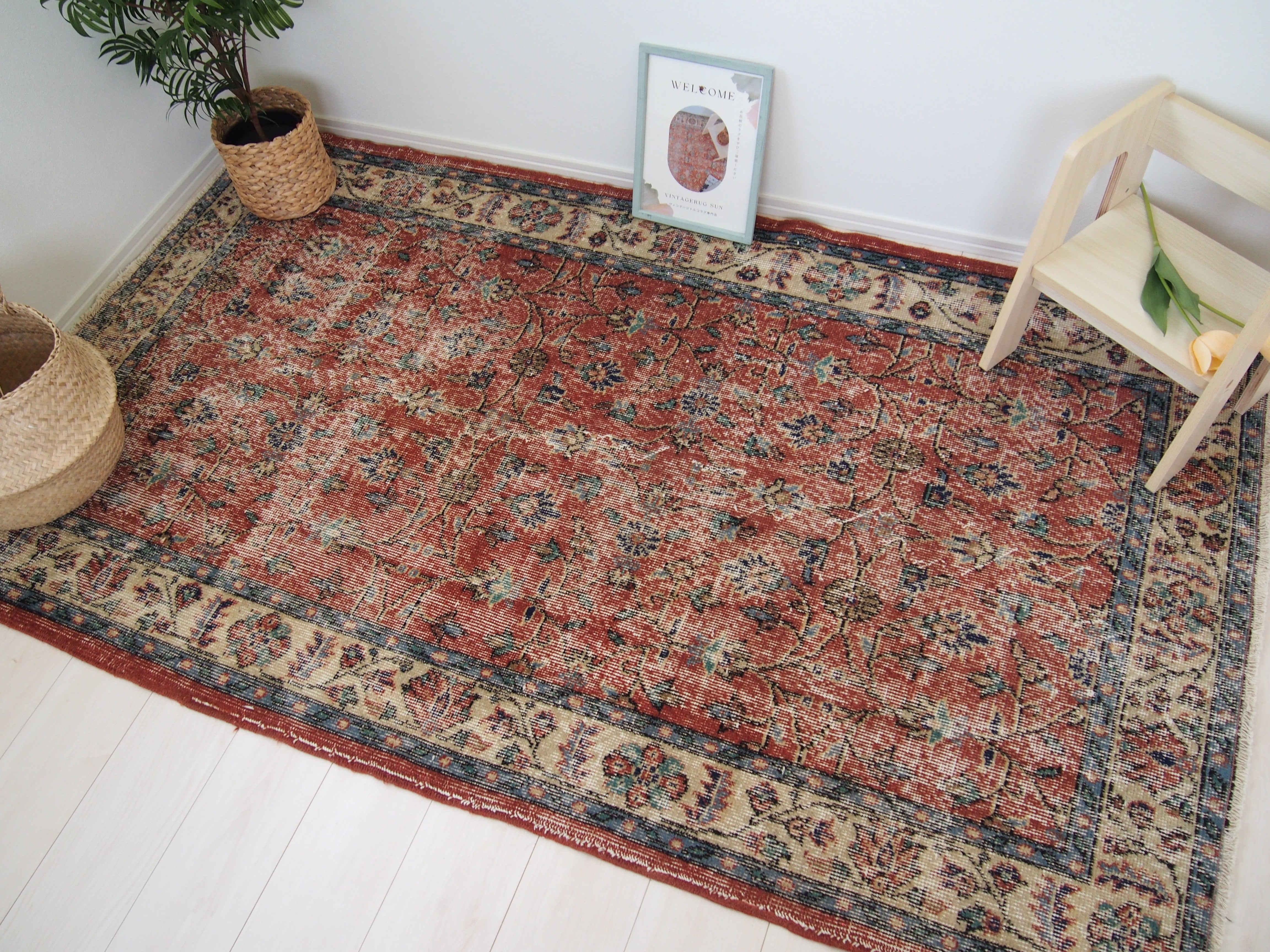 ヴィンテージラグは、糸のほつれ、抜け、毛羽立ち、シミなど見られる場合がございます。ヴィンテージ品ならではの雰囲気としてお楽しみいただけますと幸いです。
