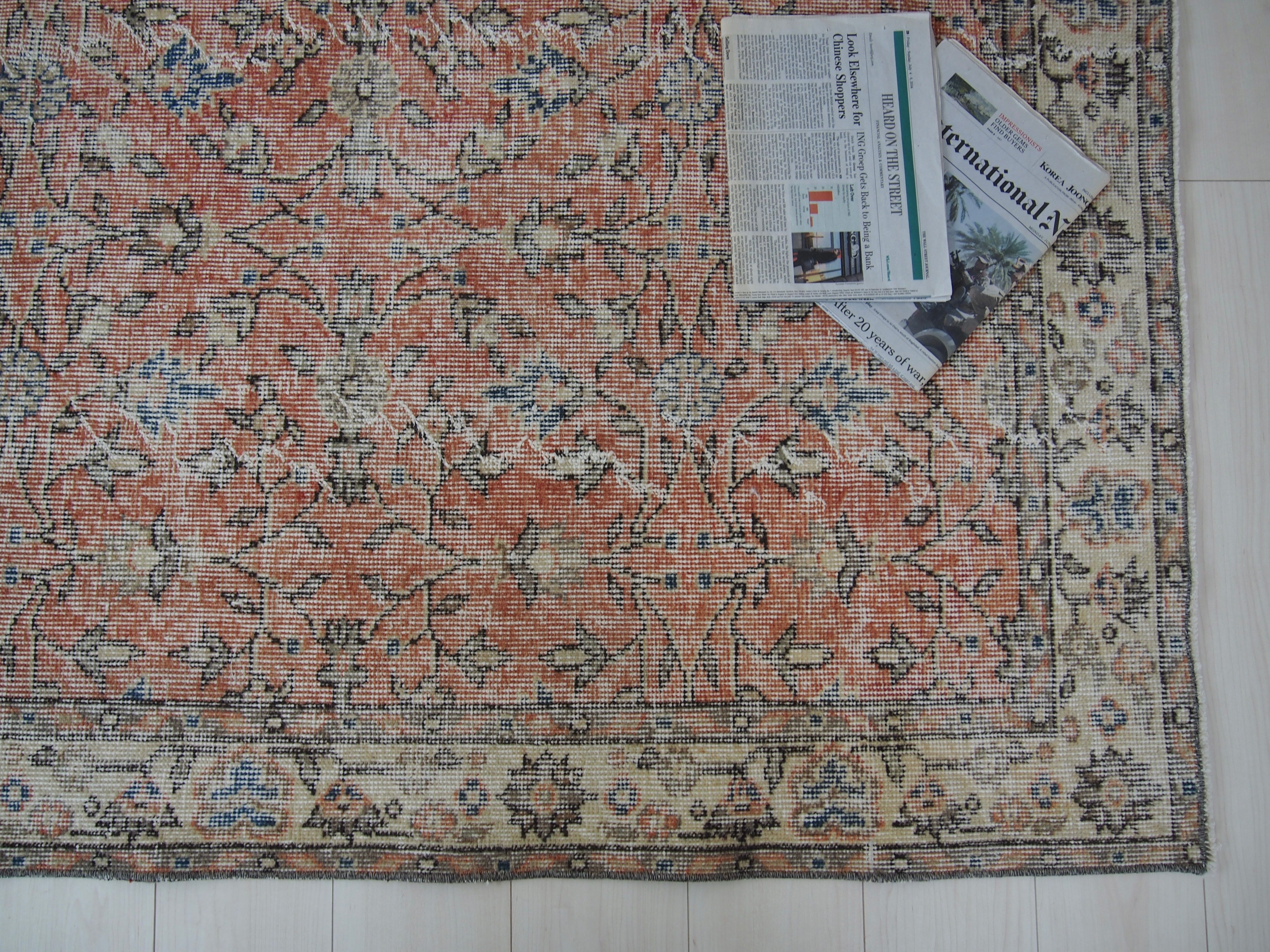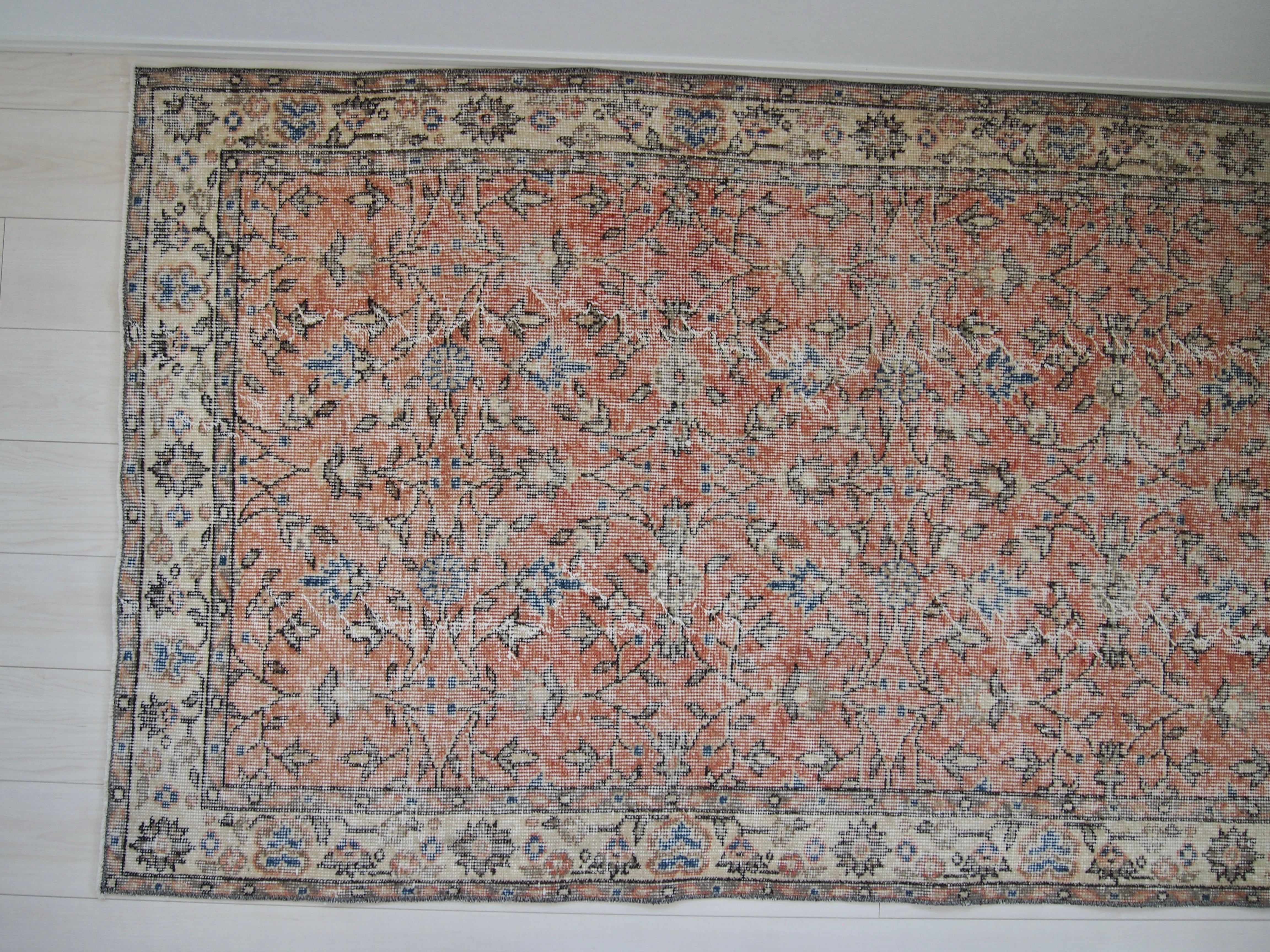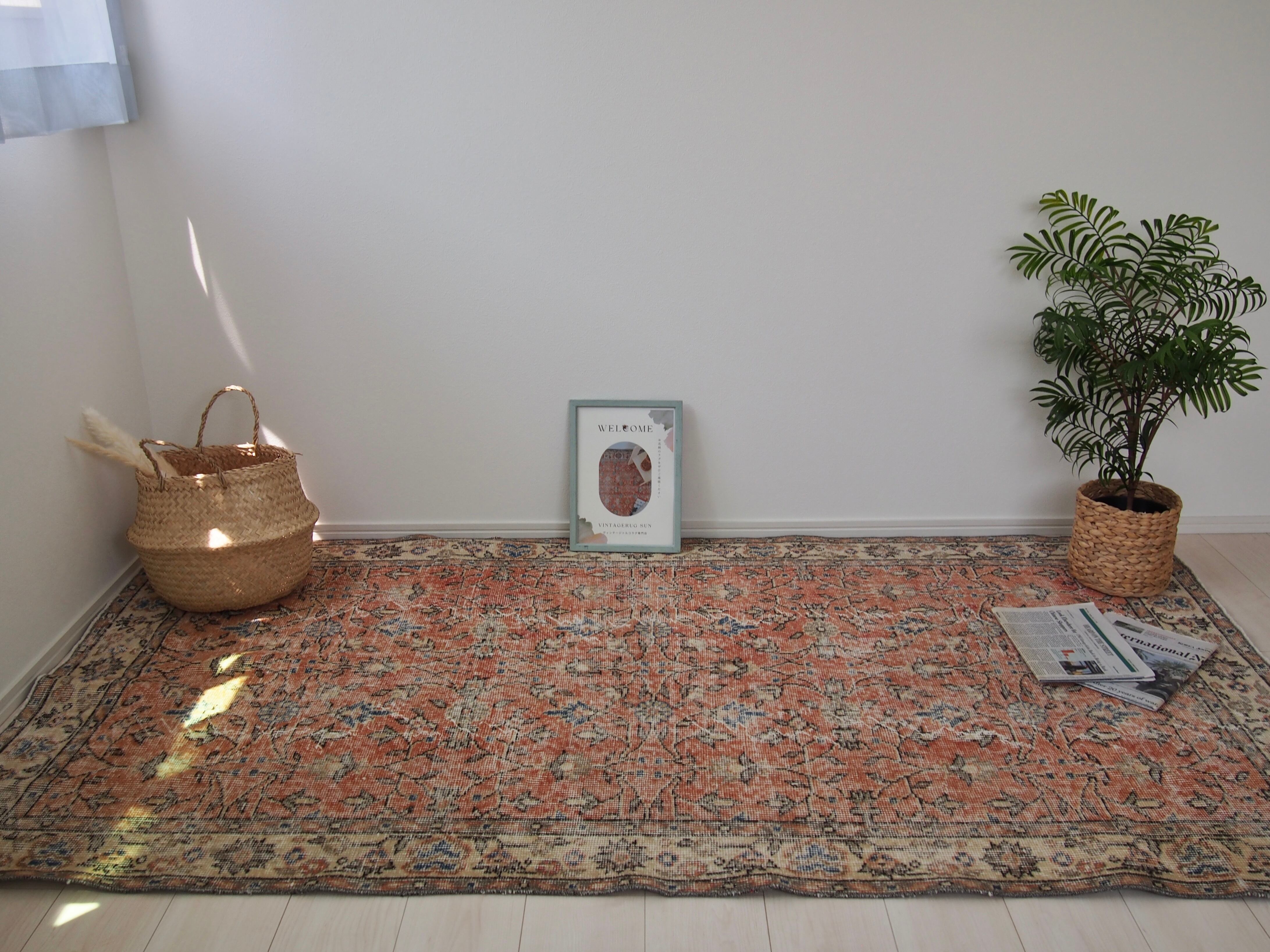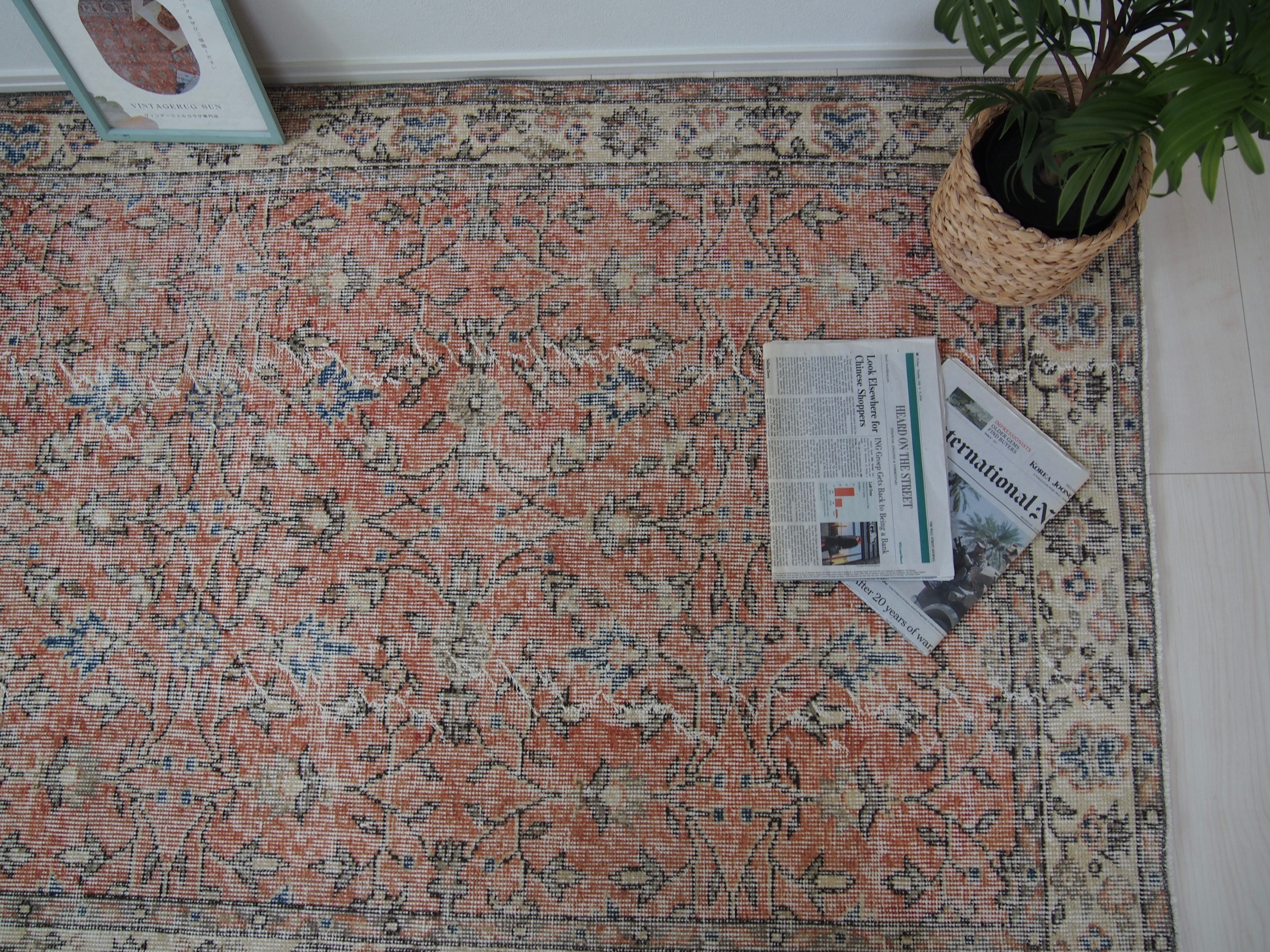 ヴィンテージラグは、糸のほつれ、抜け、毛羽立ち、シミなど見られる場合がございます。ヴィンテージ品ならではの雰囲気としてお楽しみいただけますと幸いです。