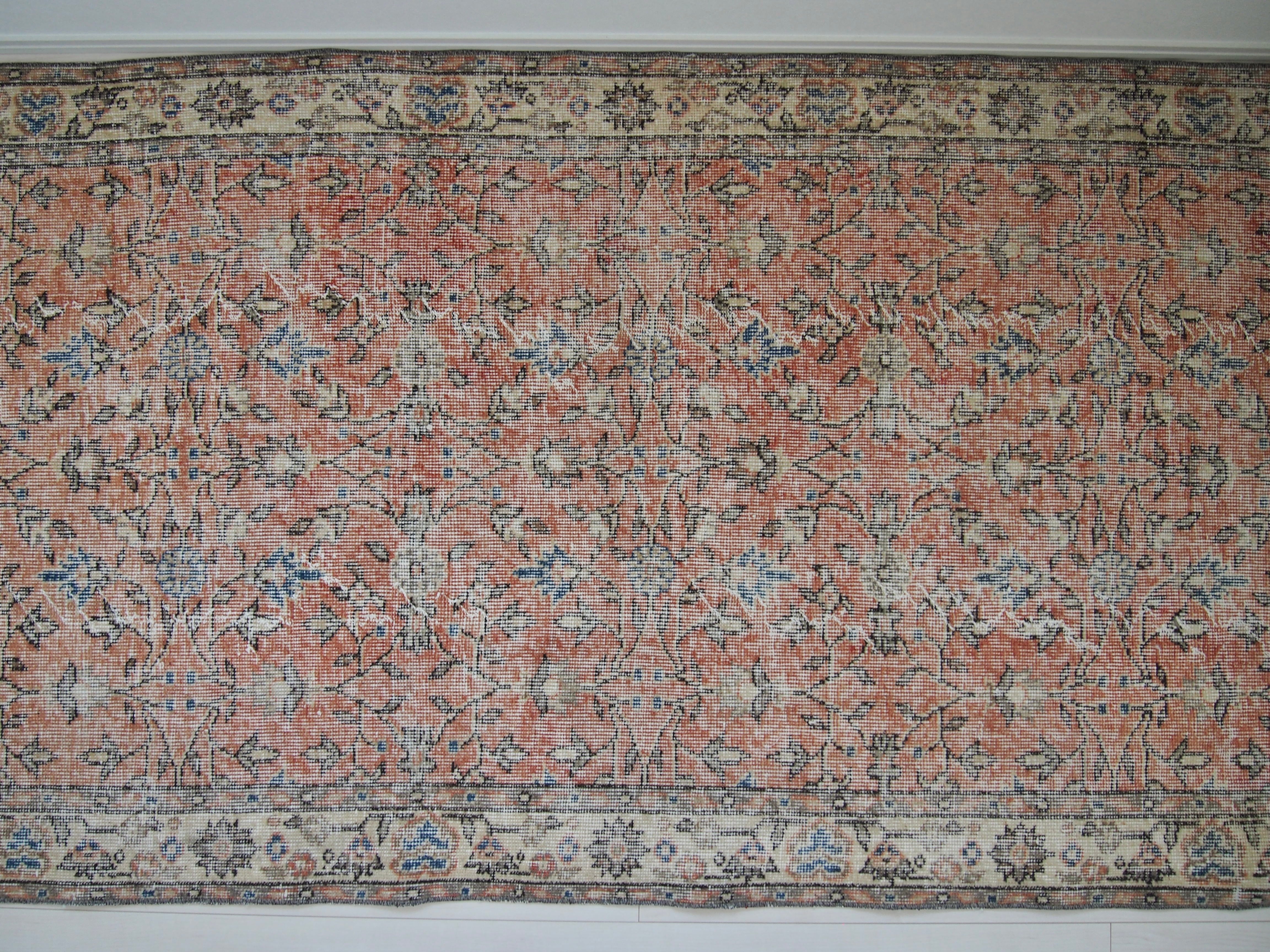70's vintage rug -coral orange floral-