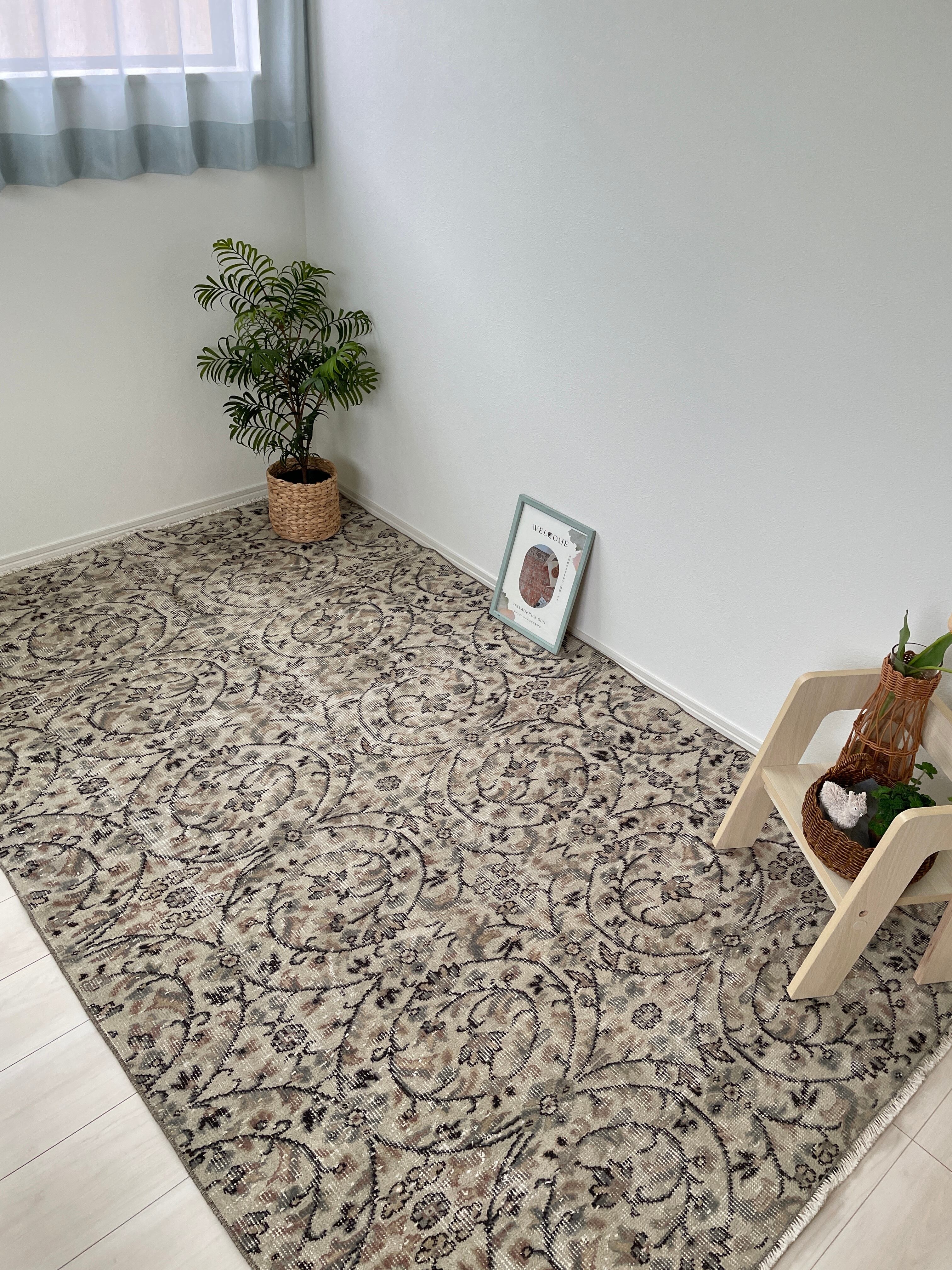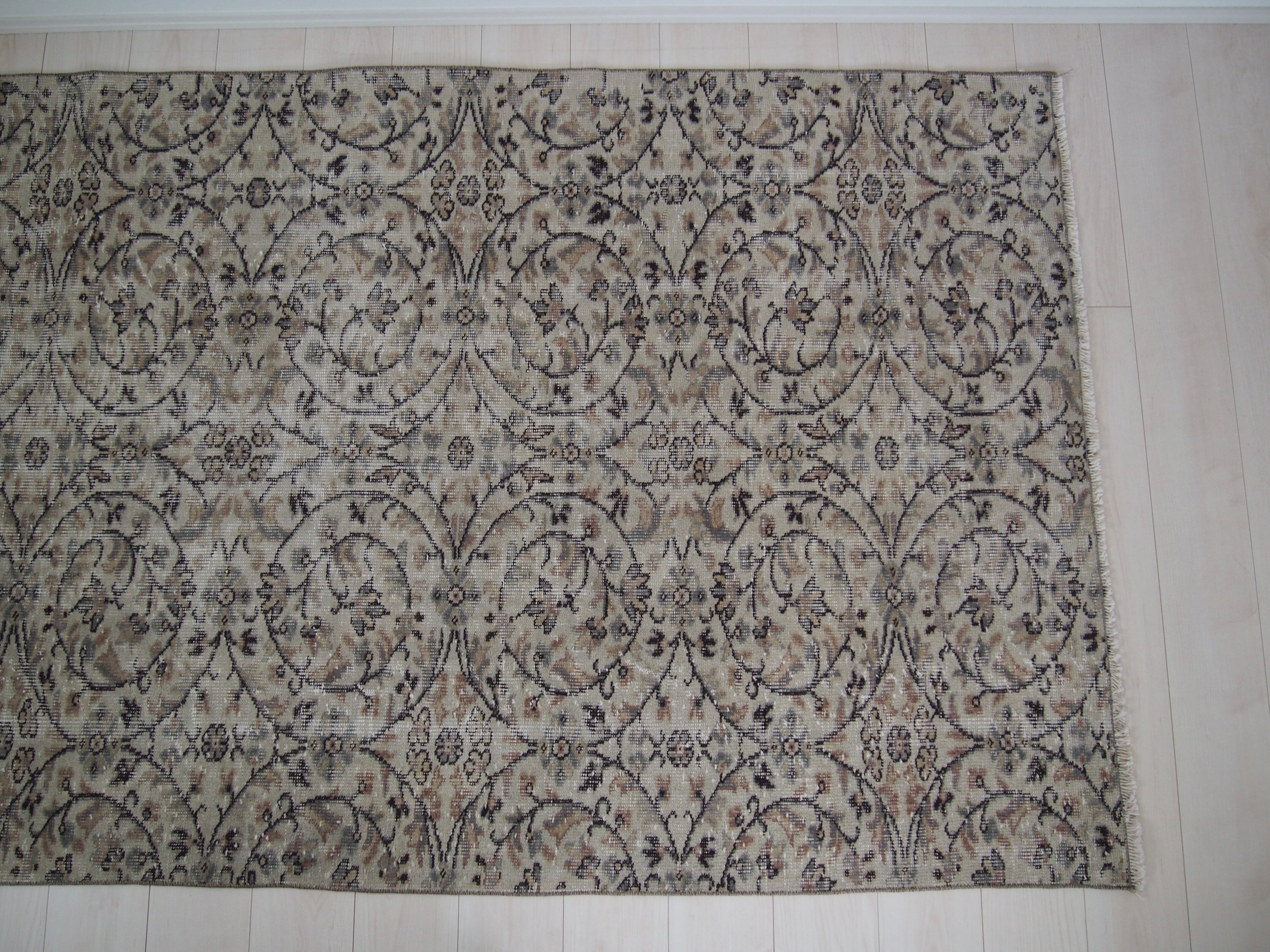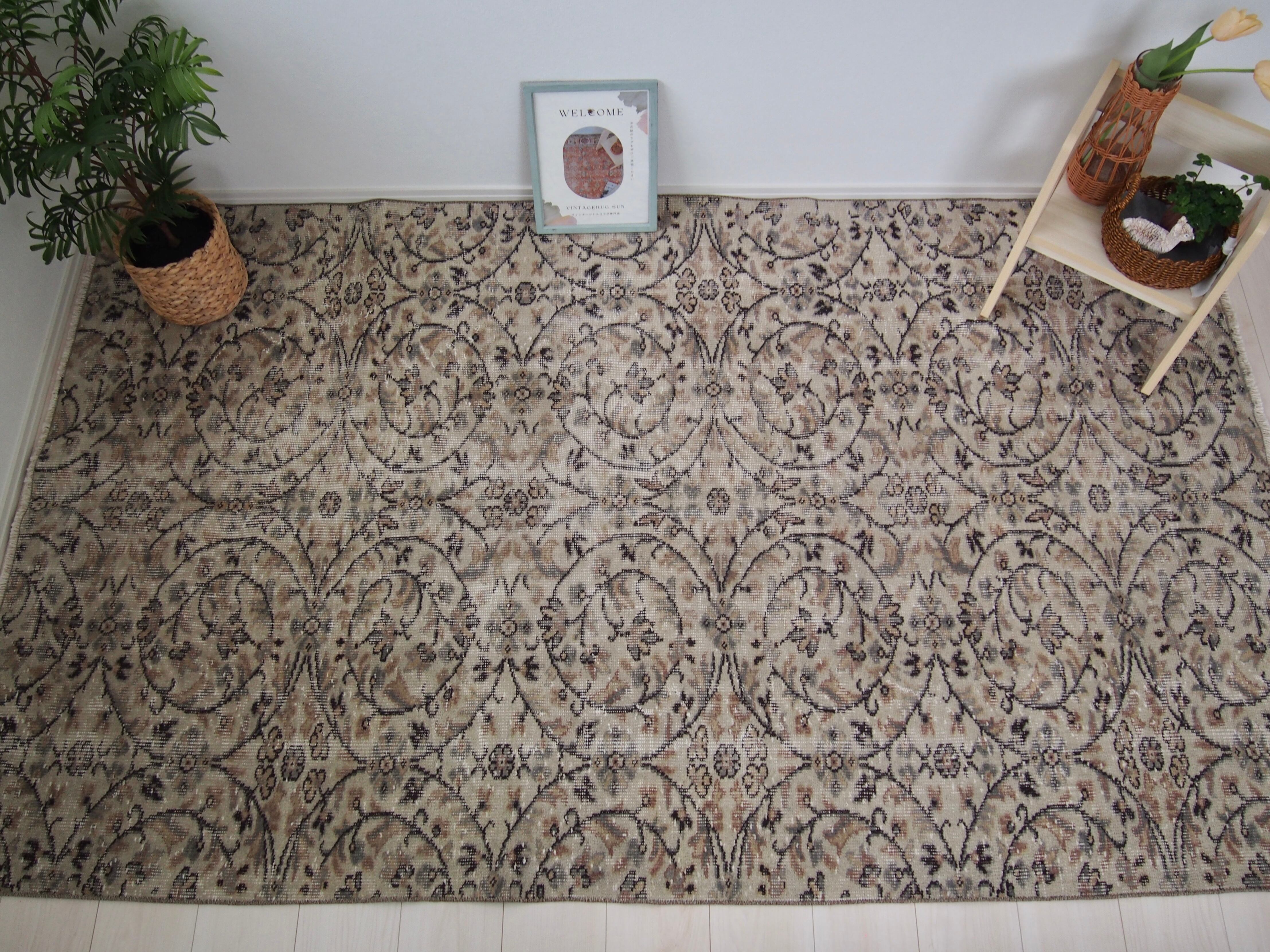 70's vintage rug -greige floral-