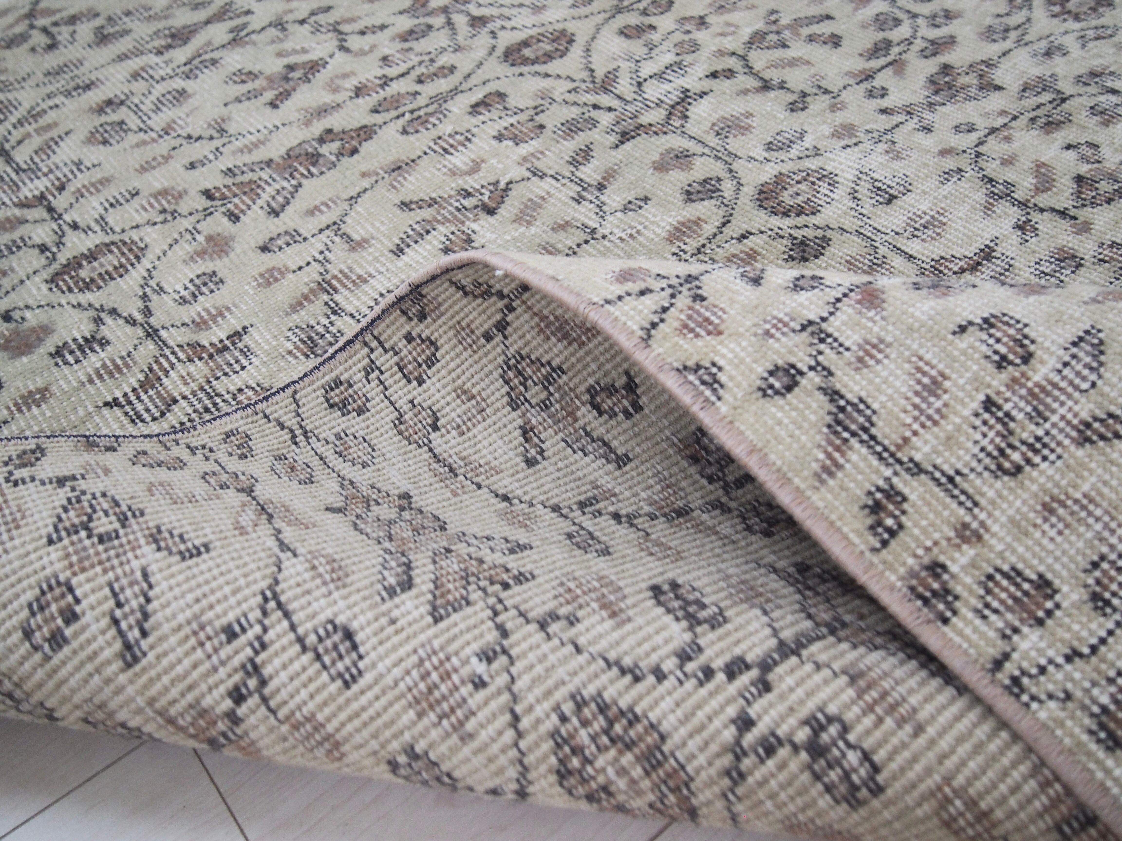 70's vintage rug -beige circle floral-