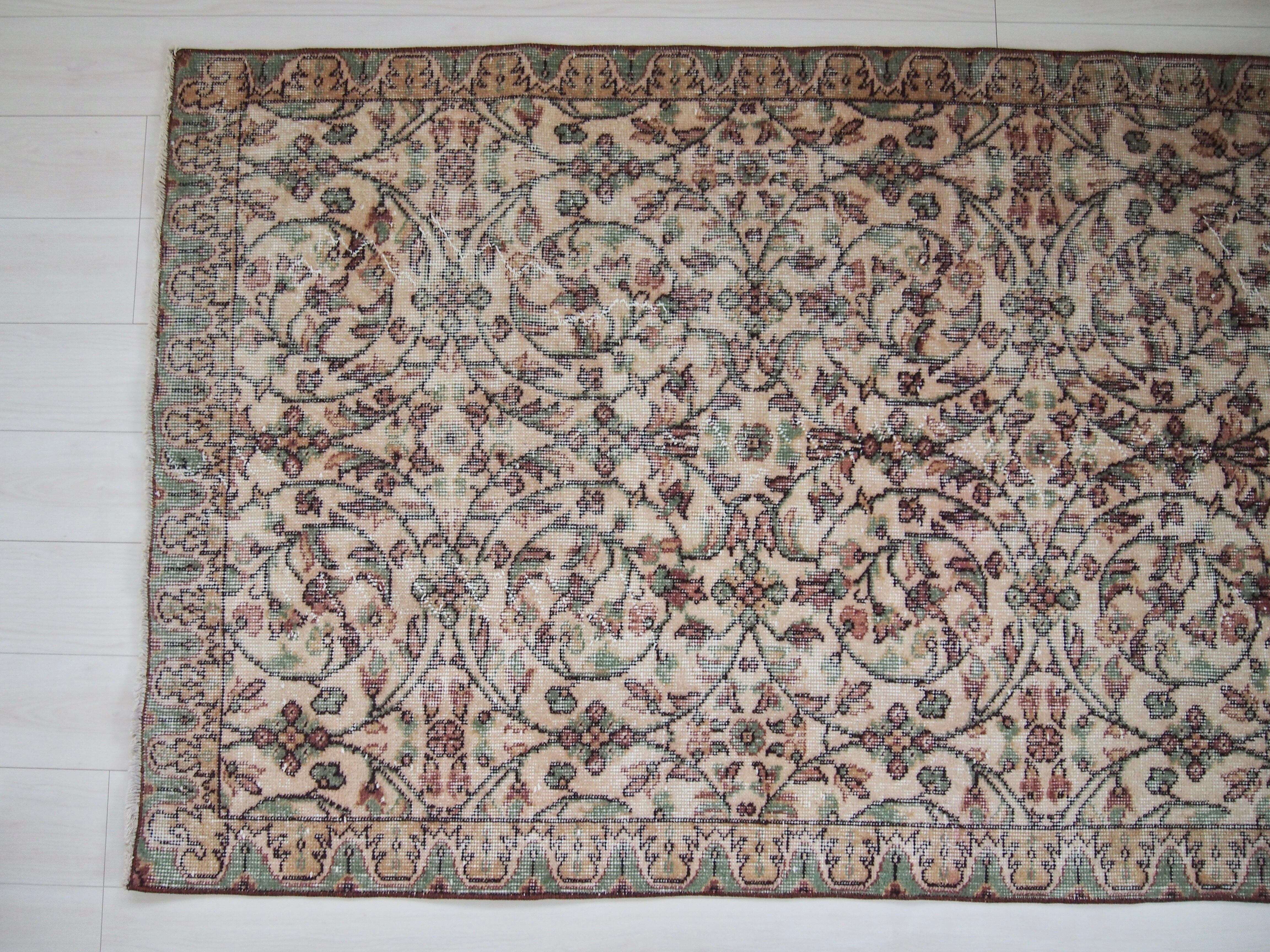 ヴィンテージラグは、糸のほつれ、抜け、毛羽立ち、シミなど見られる場合がございます。ヴィンテージ品ならではの雰囲気としてお楽しみいただけますと幸いです。