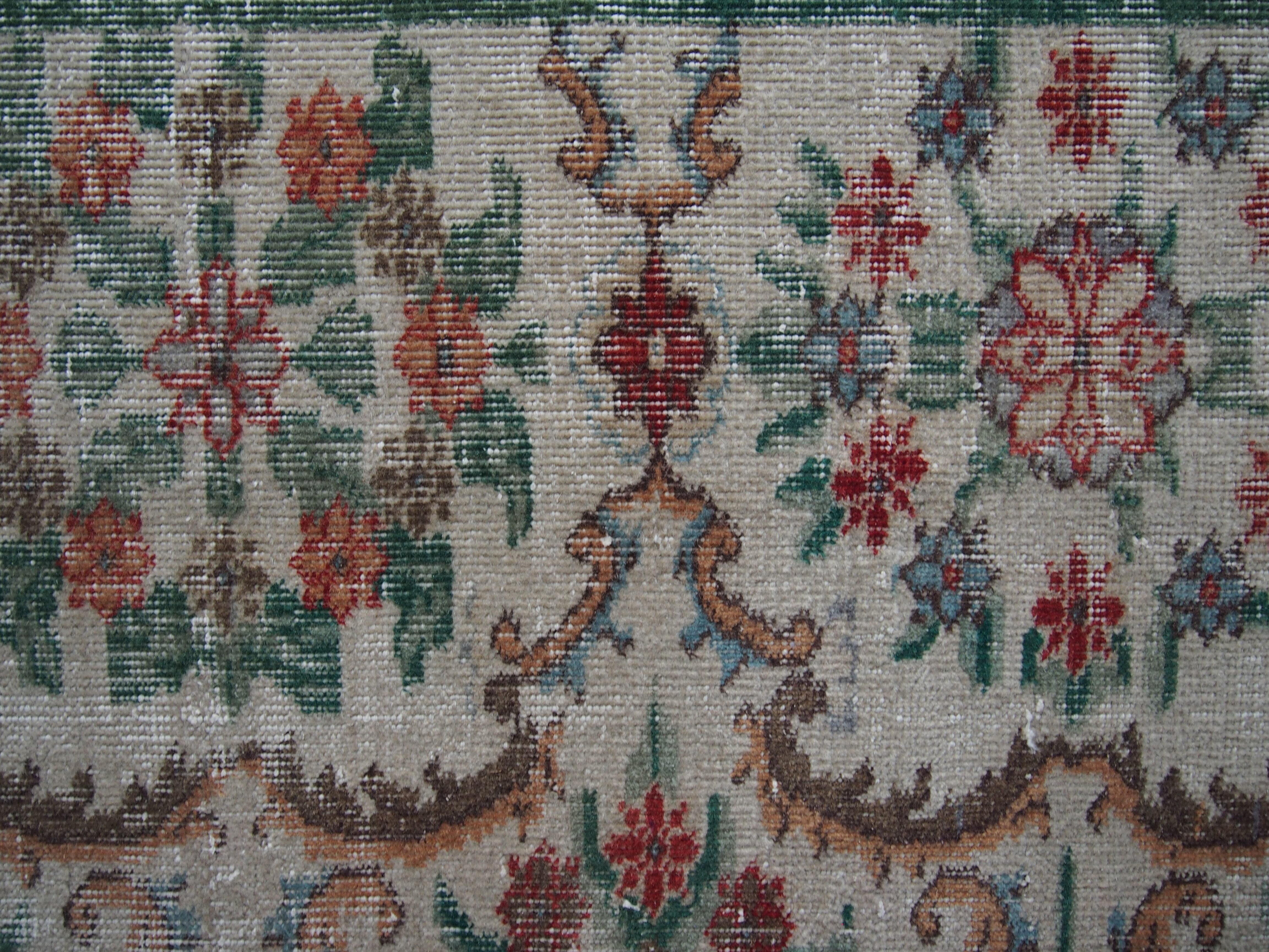 70's vintage rug -green floral-