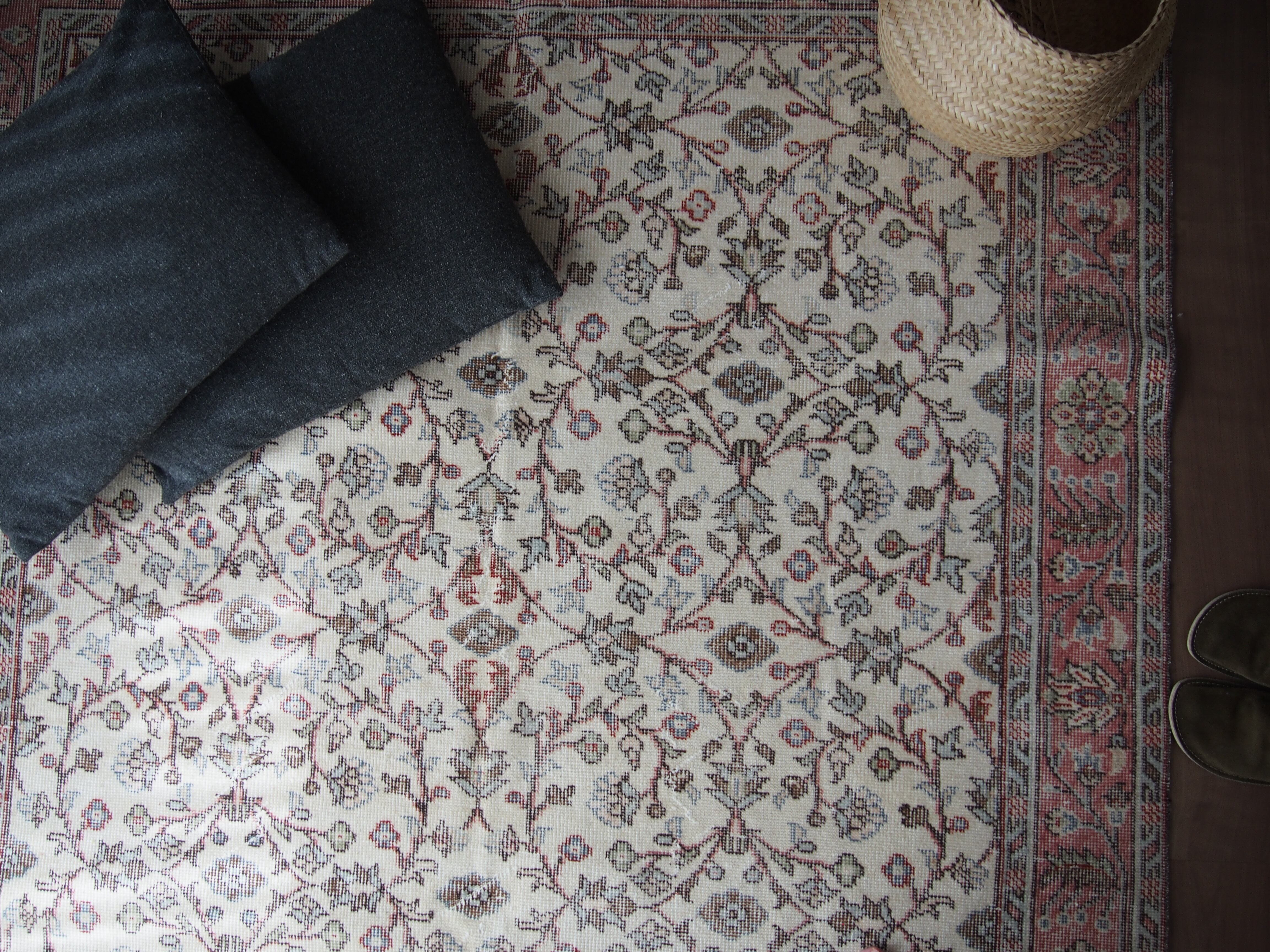 70's vintage rug -pink circle floral-