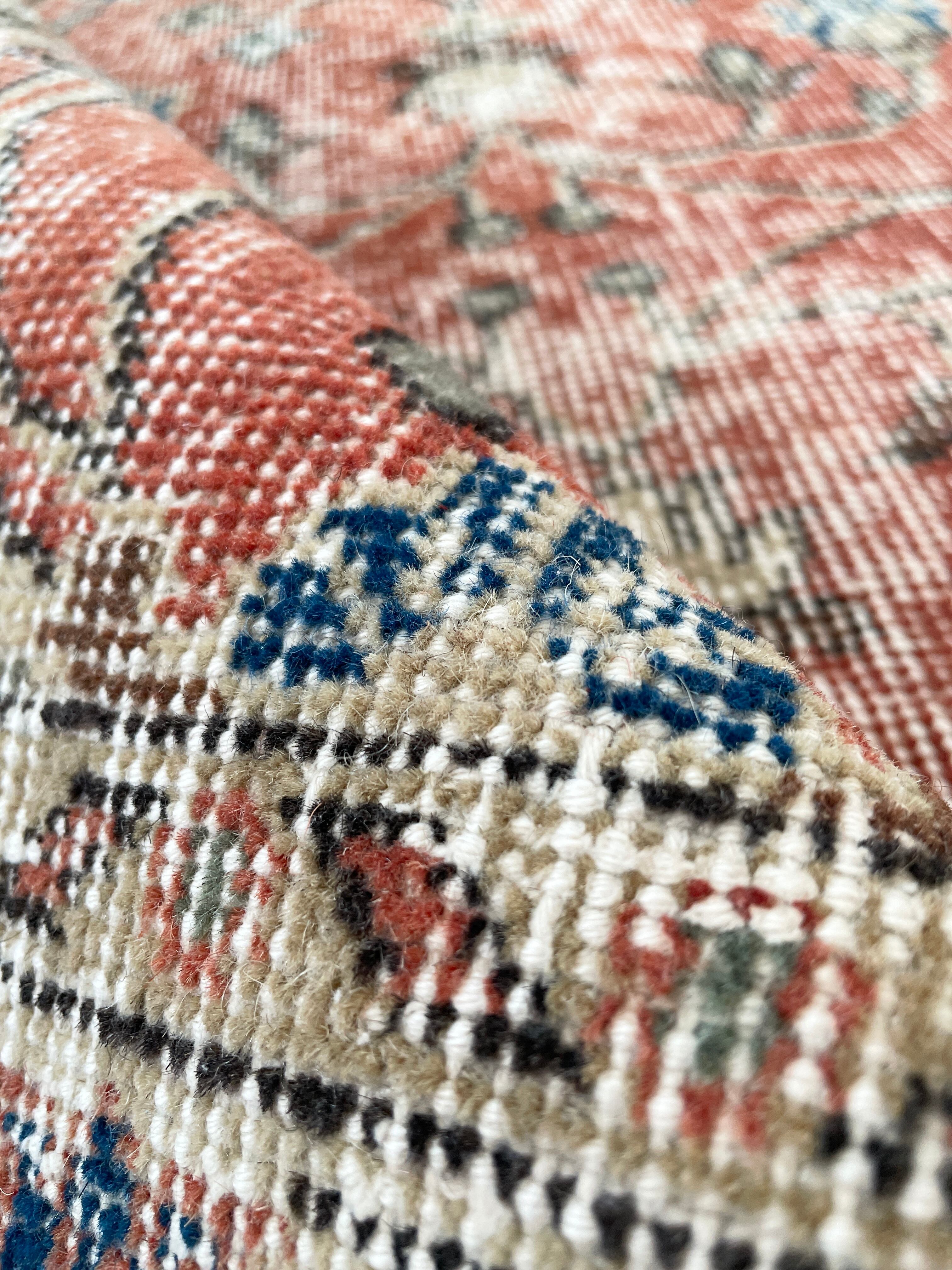 70's vintage rug -orange floral-