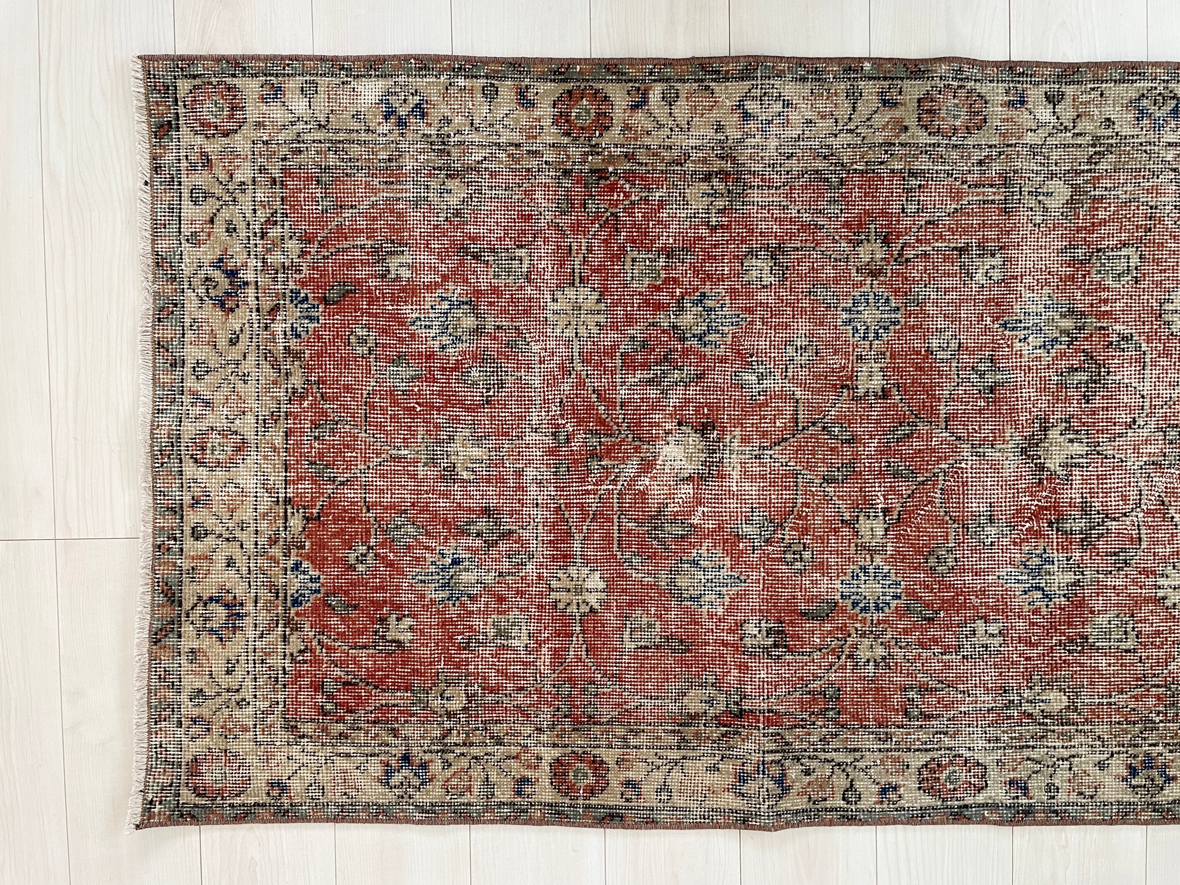 ヴィンテージラグは、糸のほつれ、抜け、毛羽立ち、シミなど見られる場合がございます。ヴィンテージ品ならではの雰囲気としてお楽しみいただけますと幸いです。