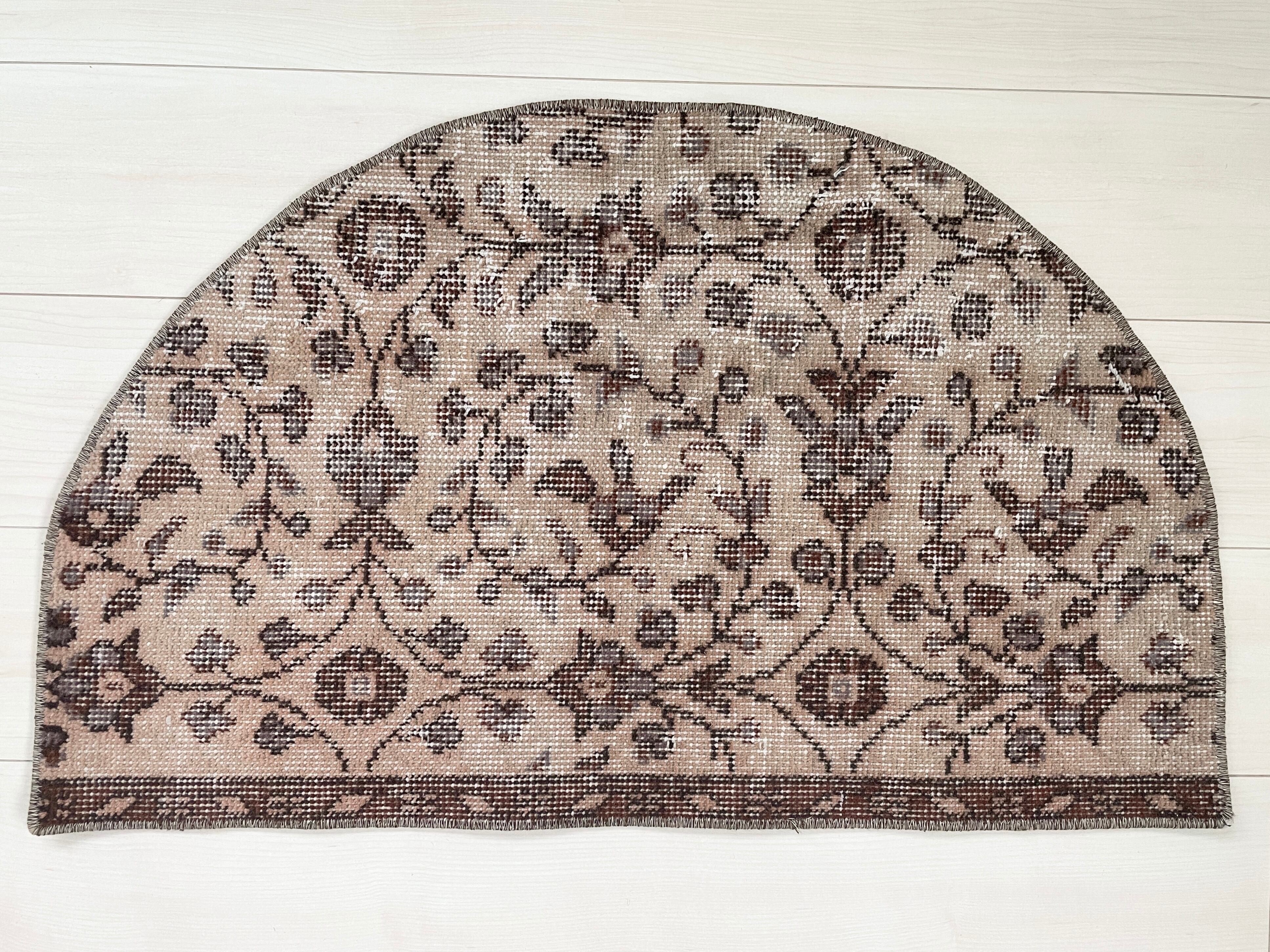 70's vintage half round rug -brown circle floral-