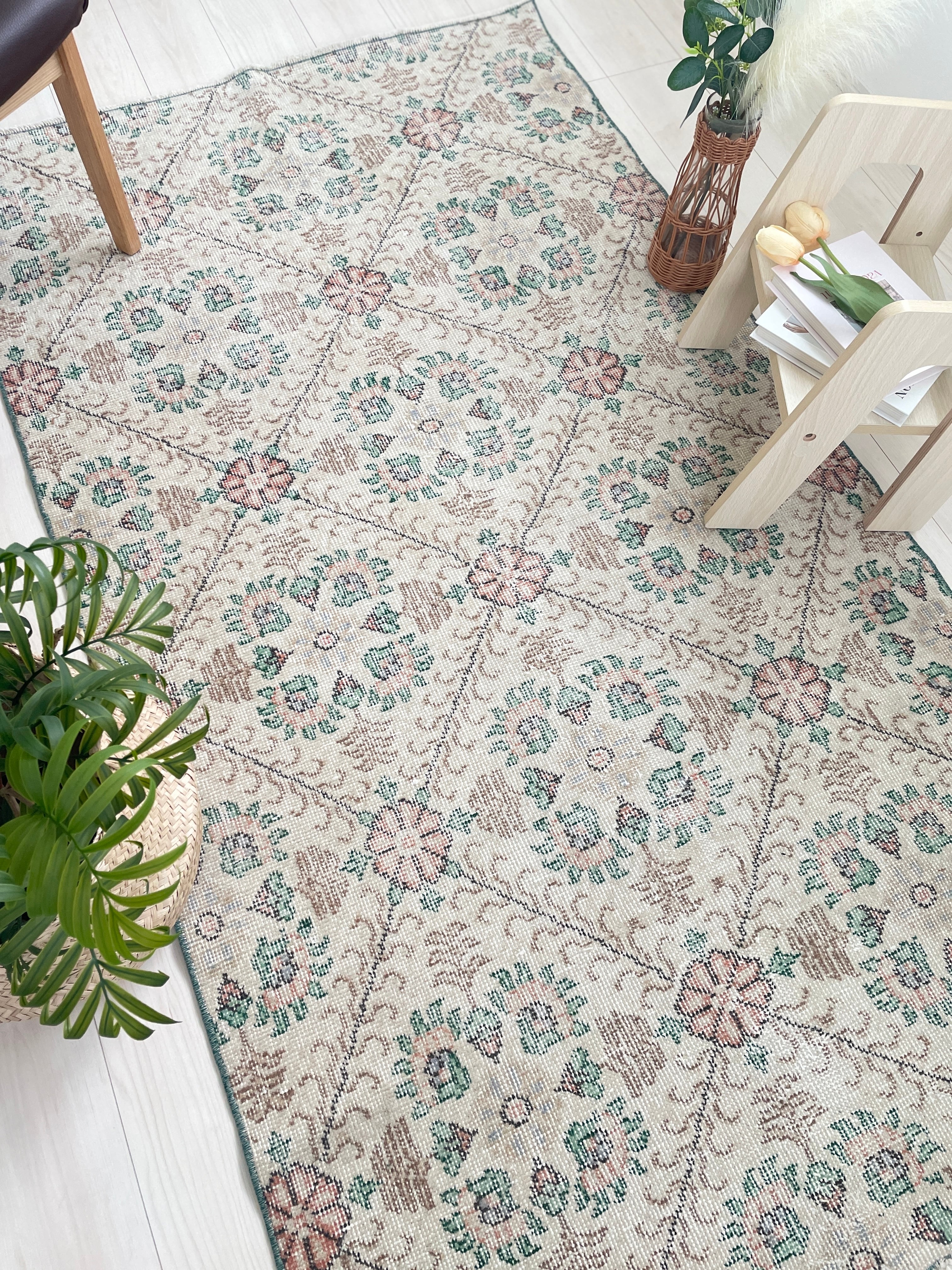 フェミニンな雰囲気のあるヴィンテージラグ。
