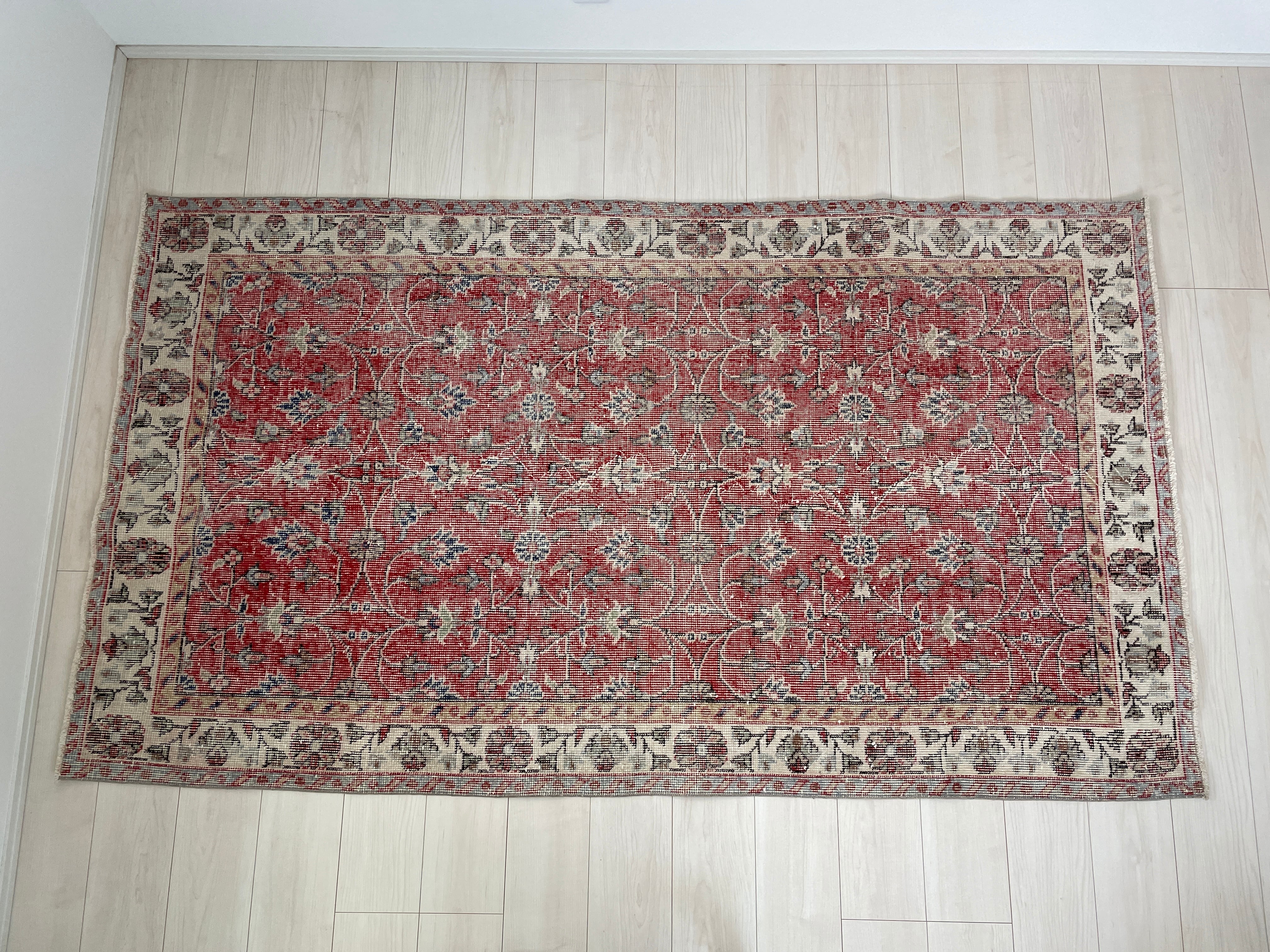 柄がくっきりと残っているきれいな状態のヴィンテージラグです。