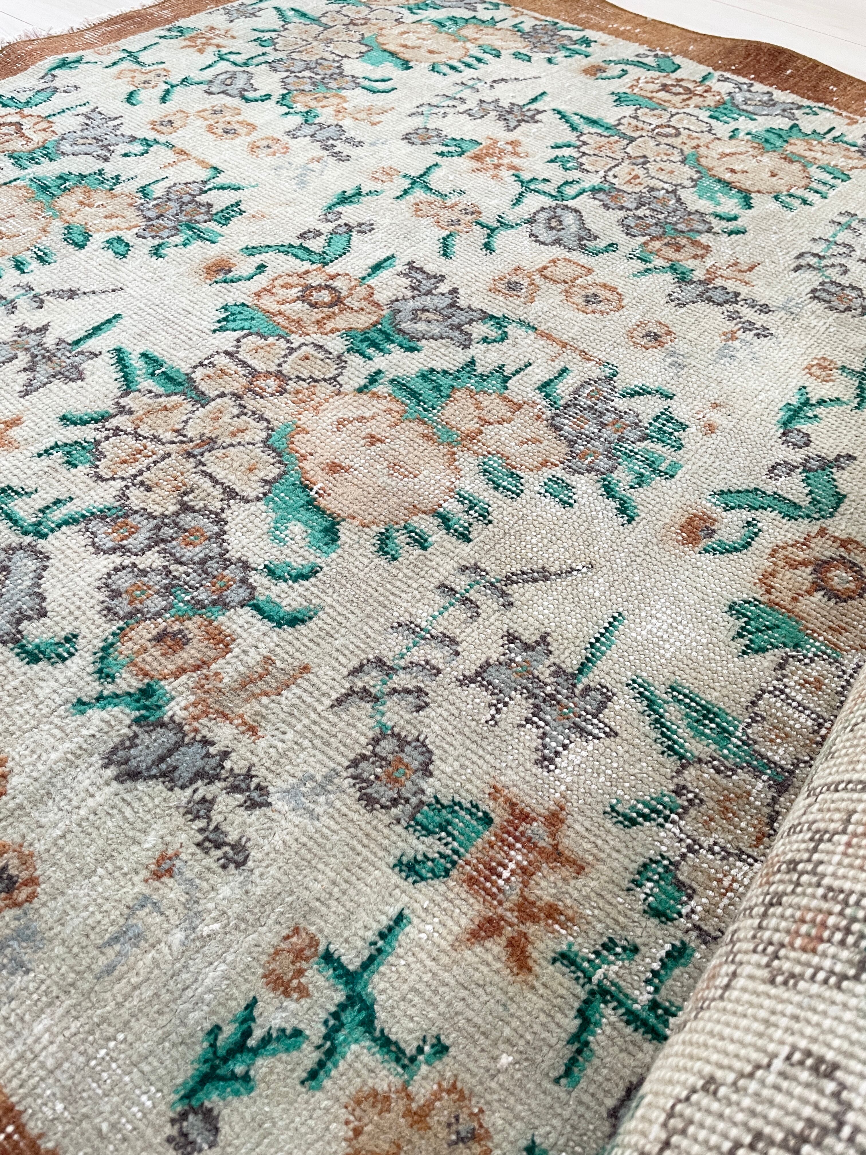 くすんだオレンジブラウンが優しく空間を照らしてくれるヴィンテージラグ。