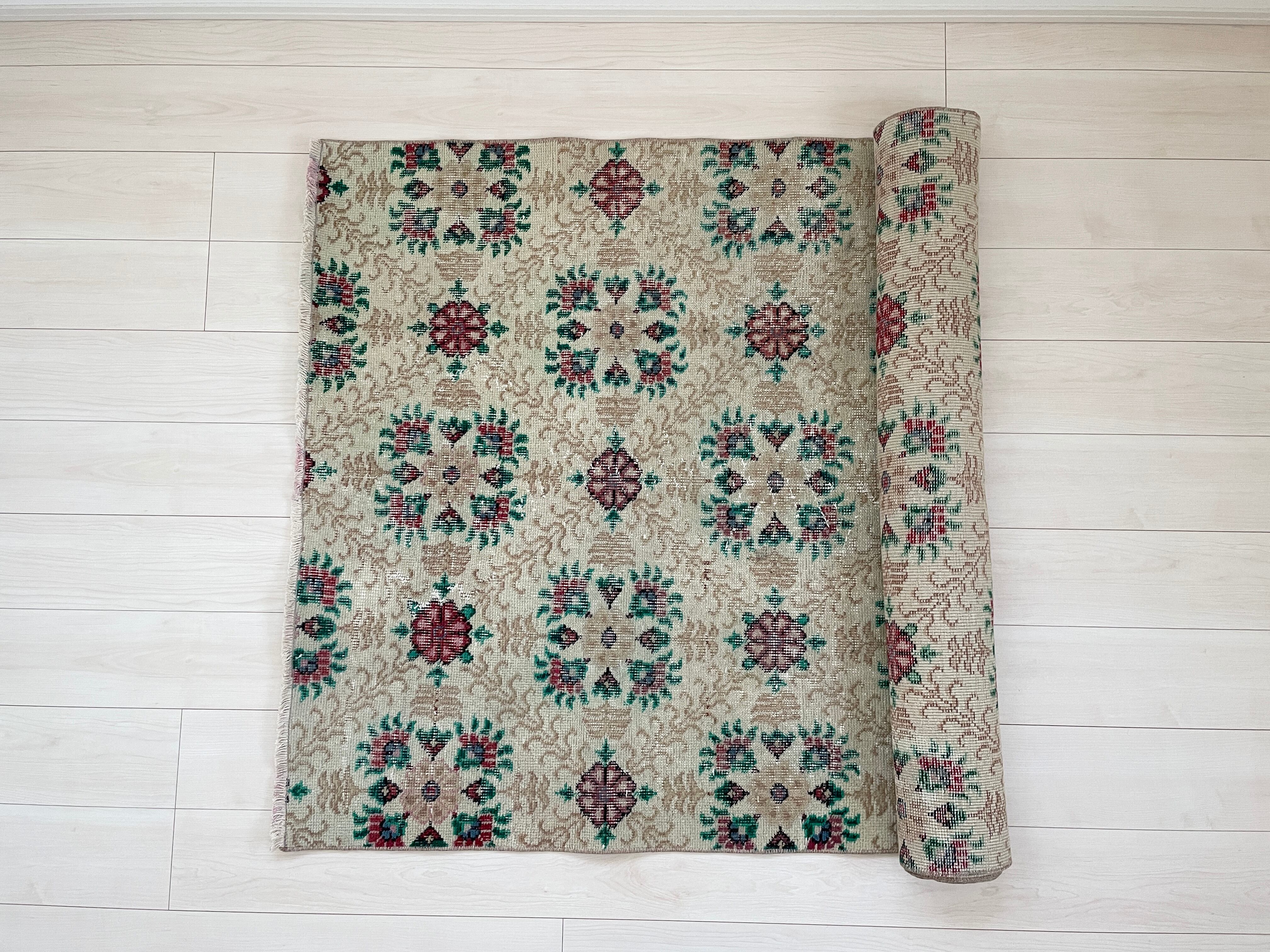 華やかなお花たちが目を引くヴィンテージラグ。