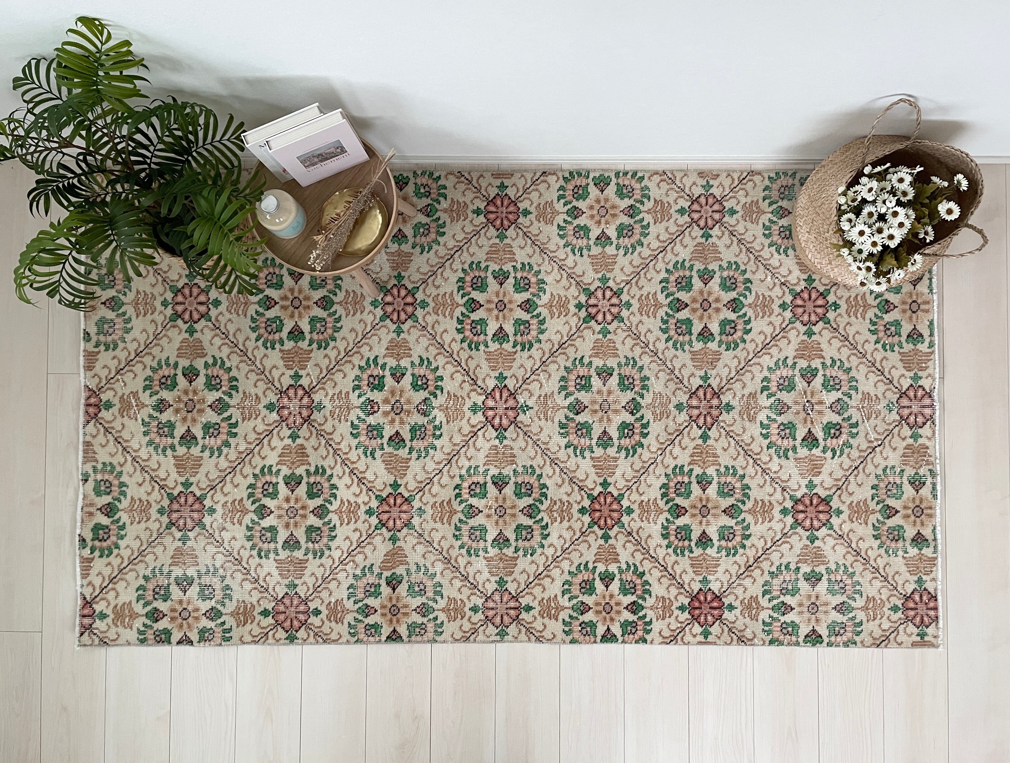 お部屋の主役にも脇役にもなれる華やかなヴィンテージラグ。