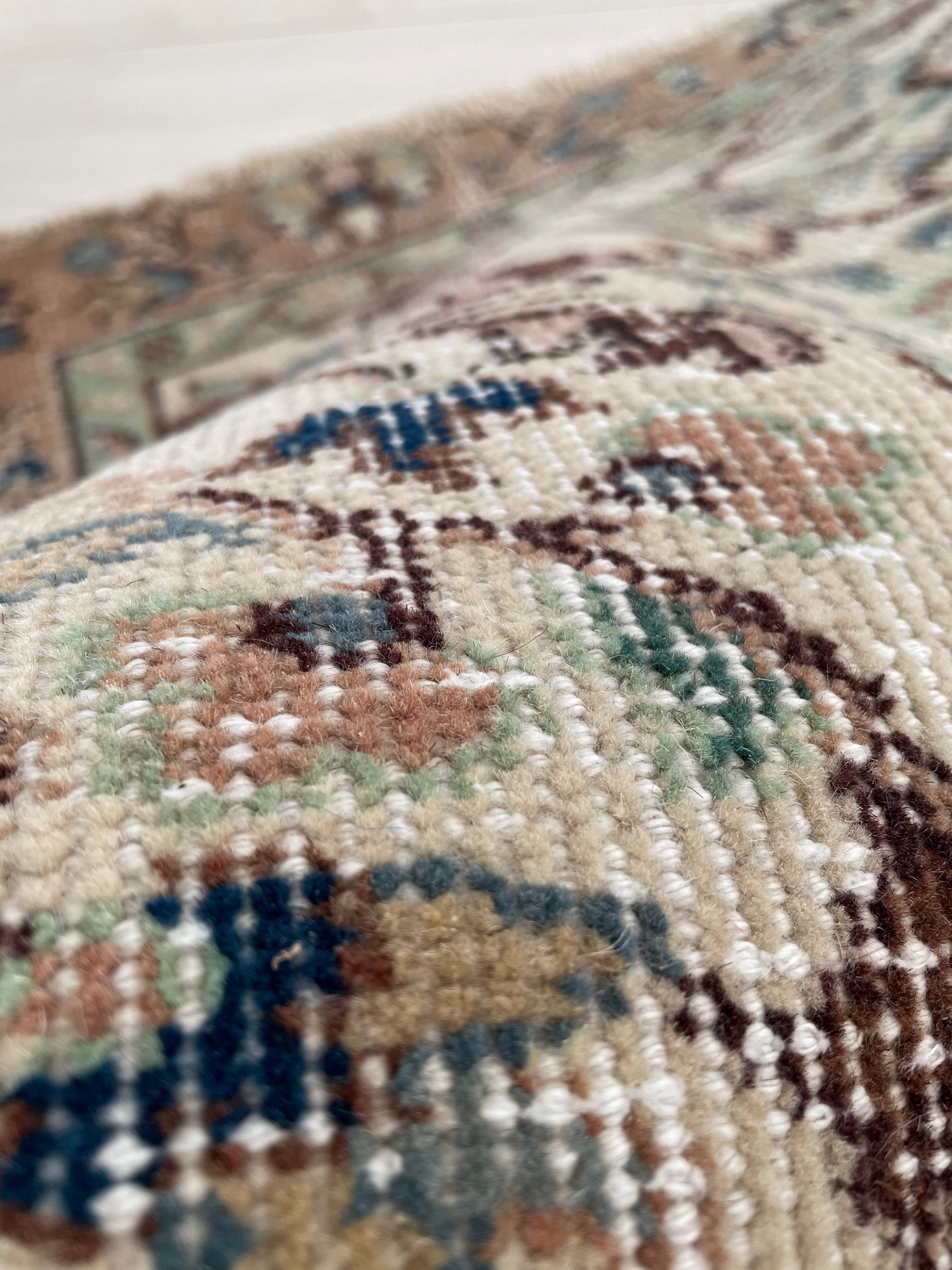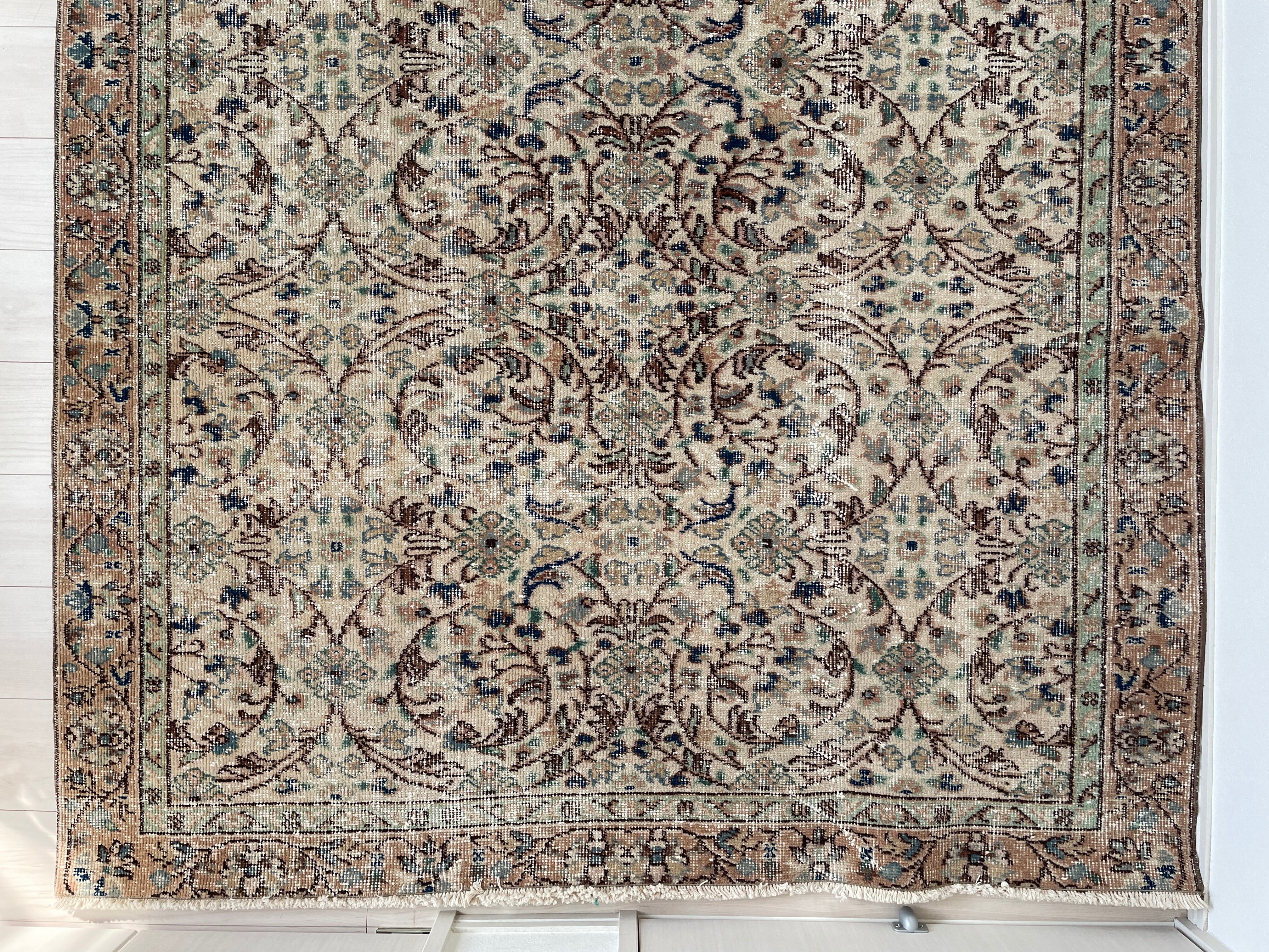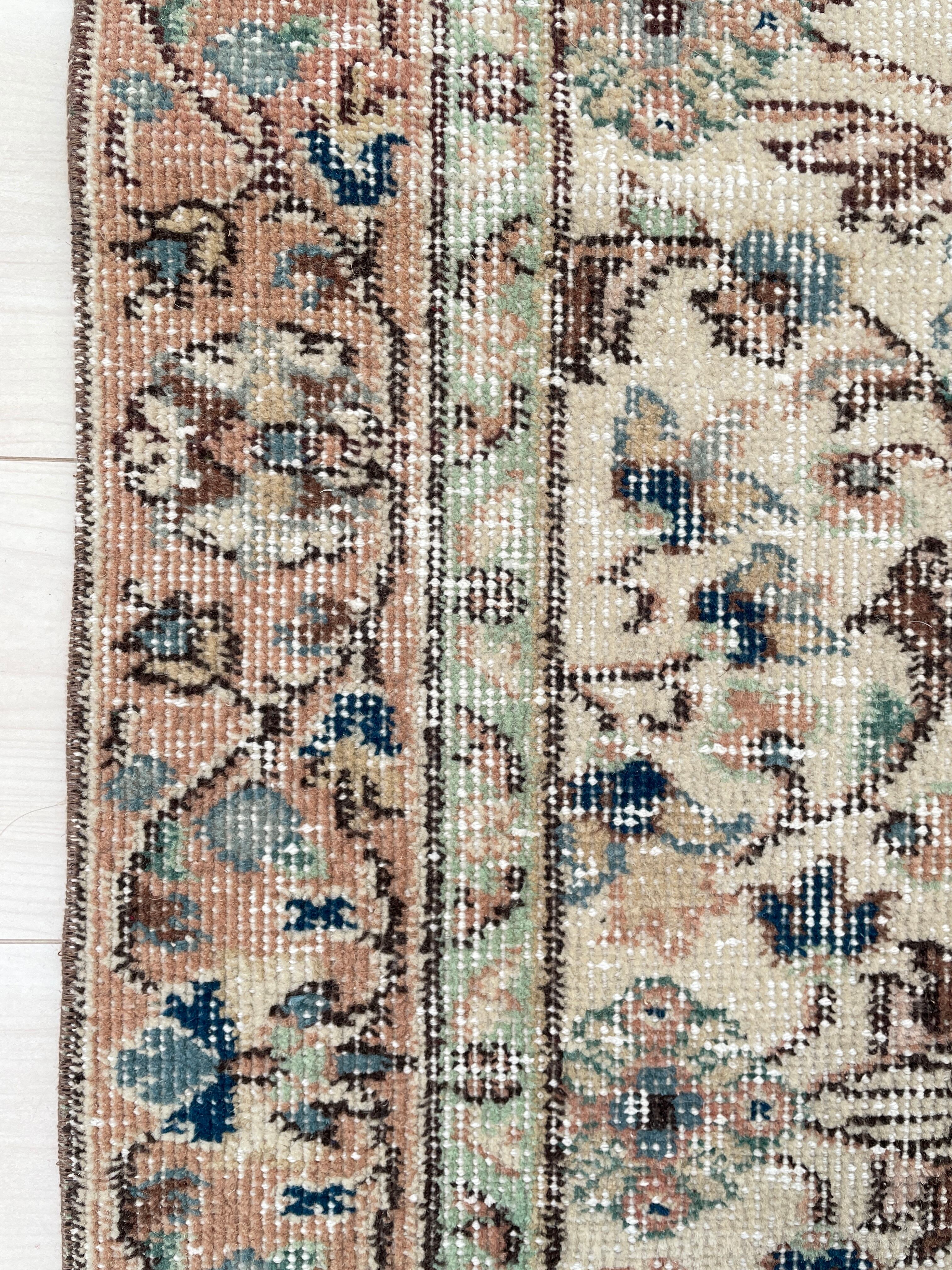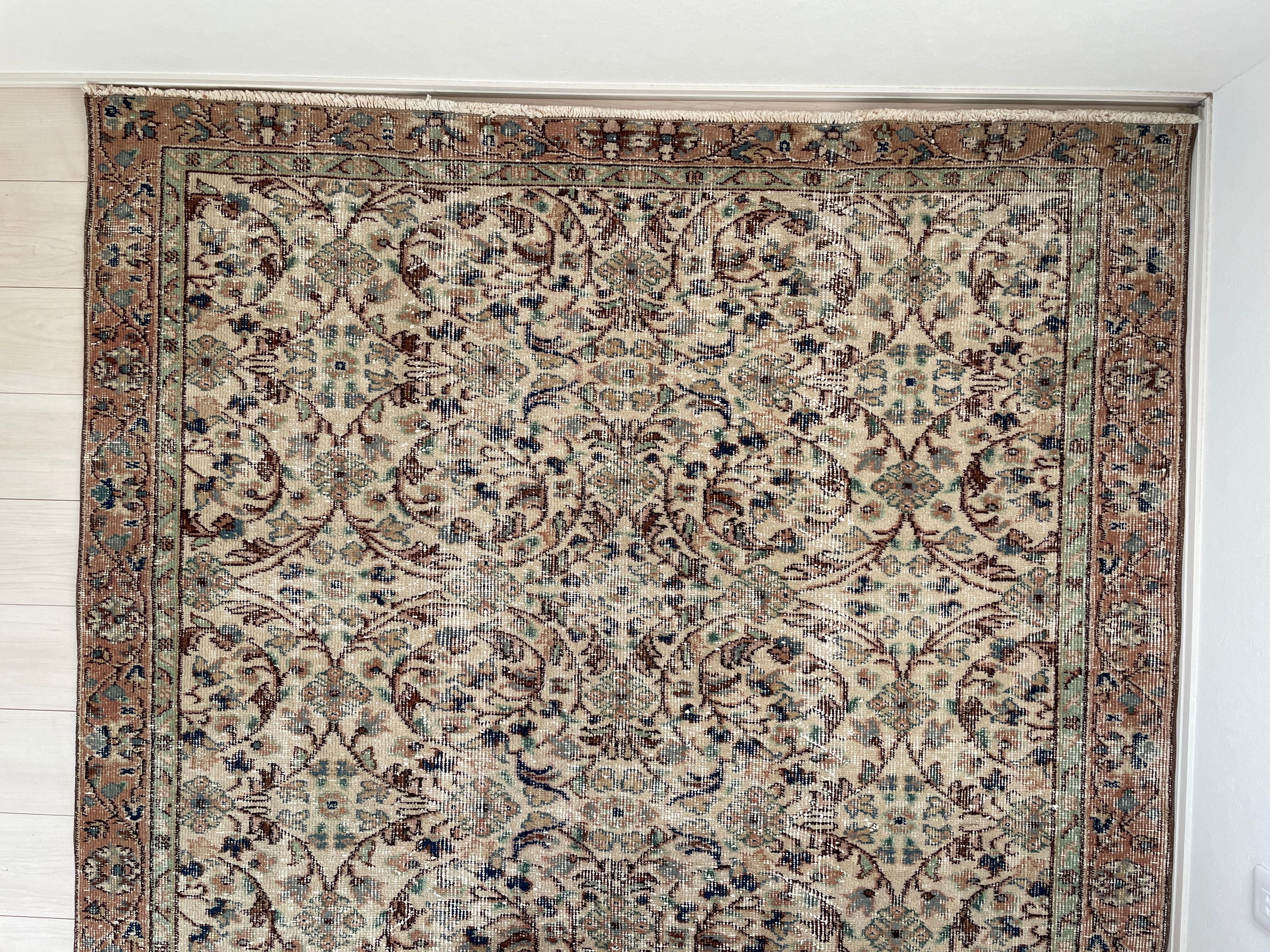 お花柄を存分に堪能できるヴィンテージラグです。