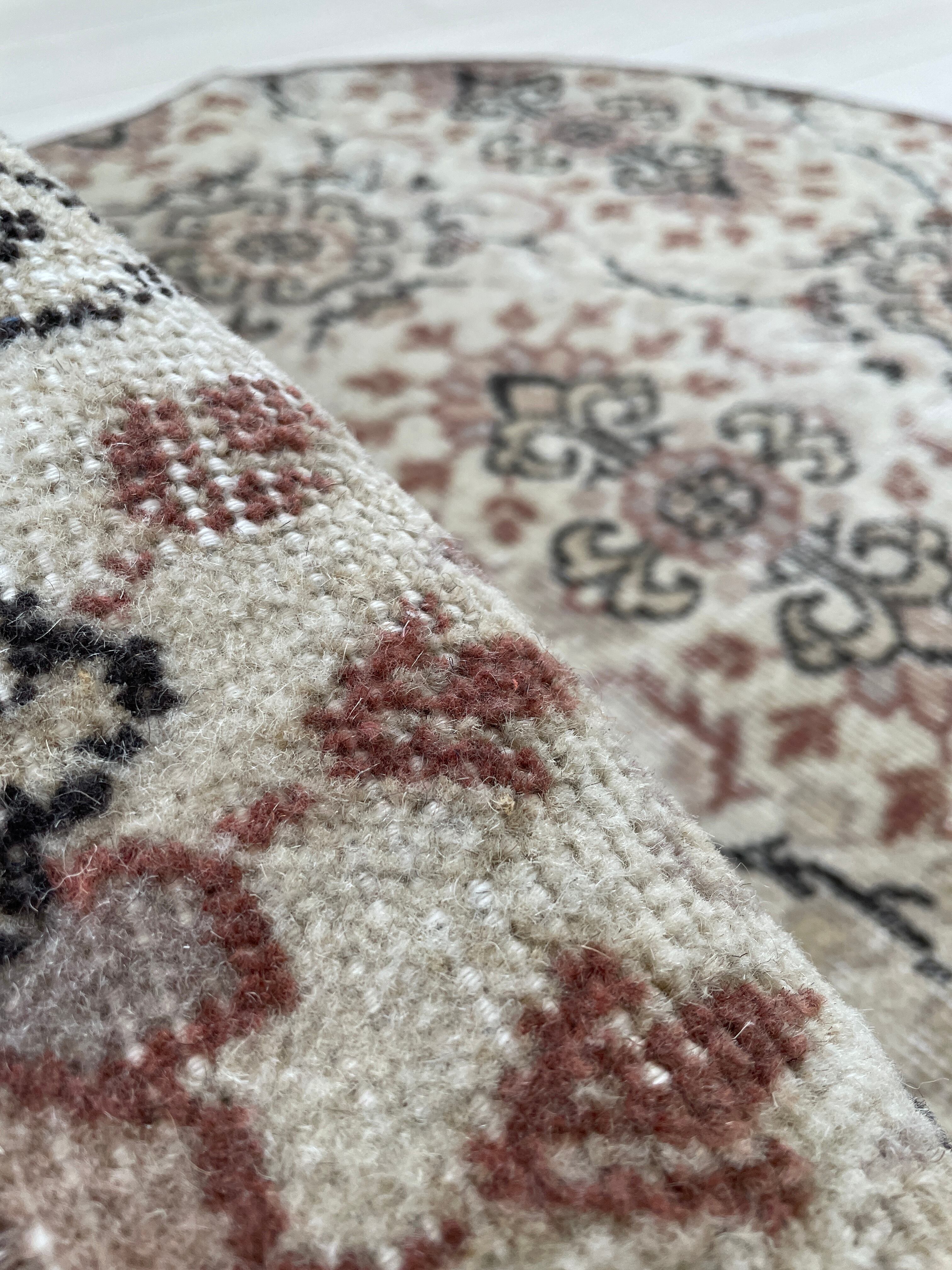 70's vintage round rug -”manmaru hibiscus” floral-