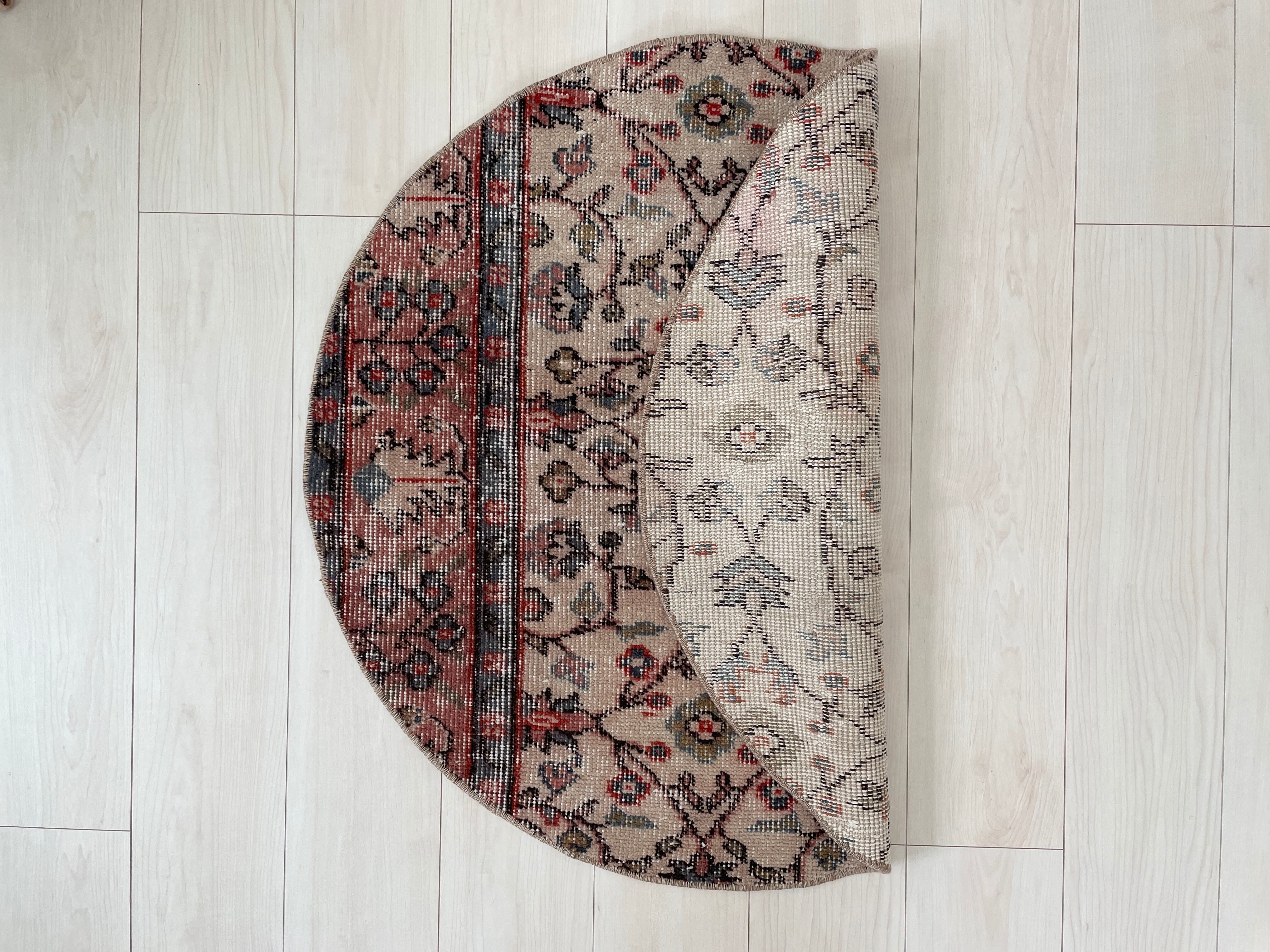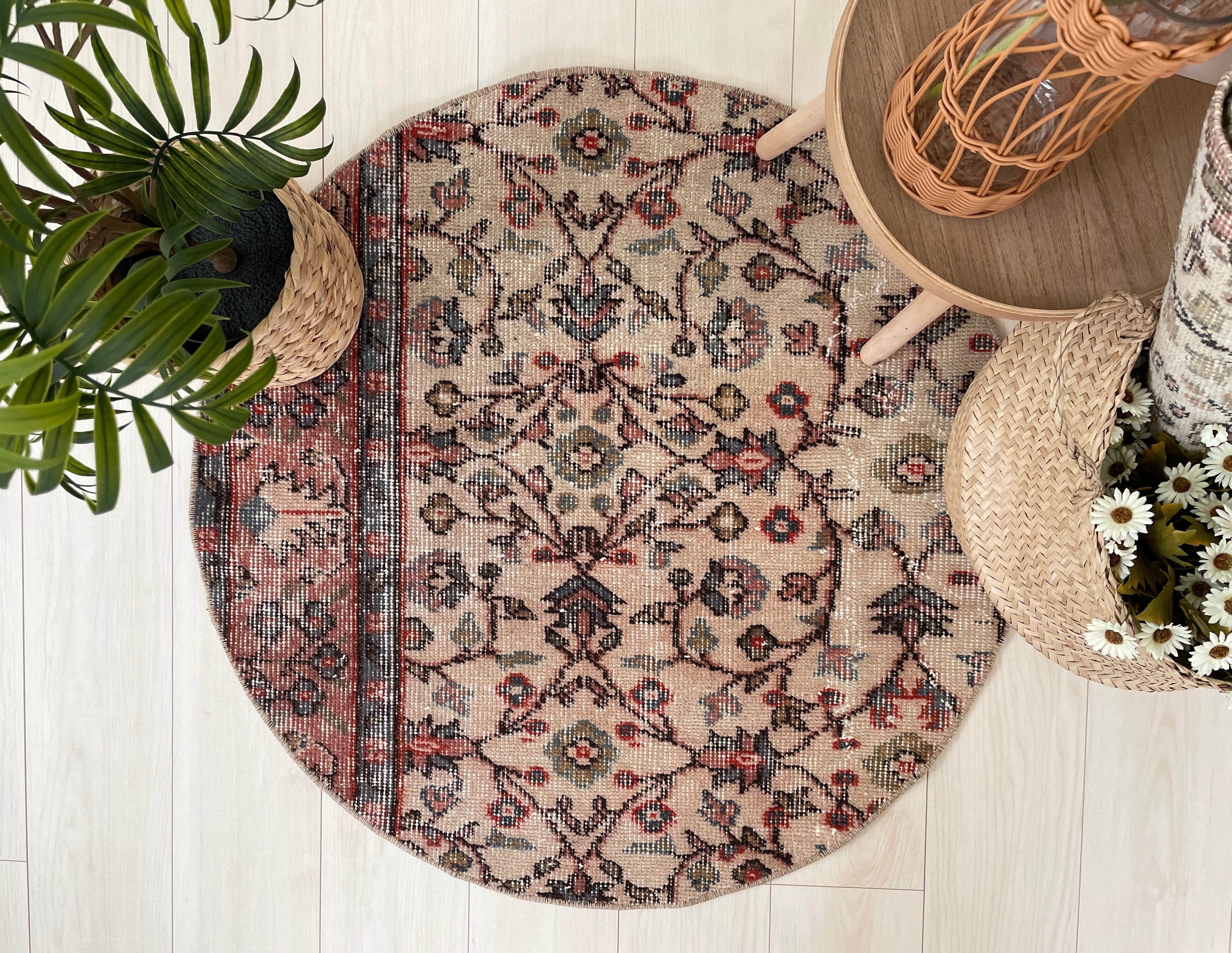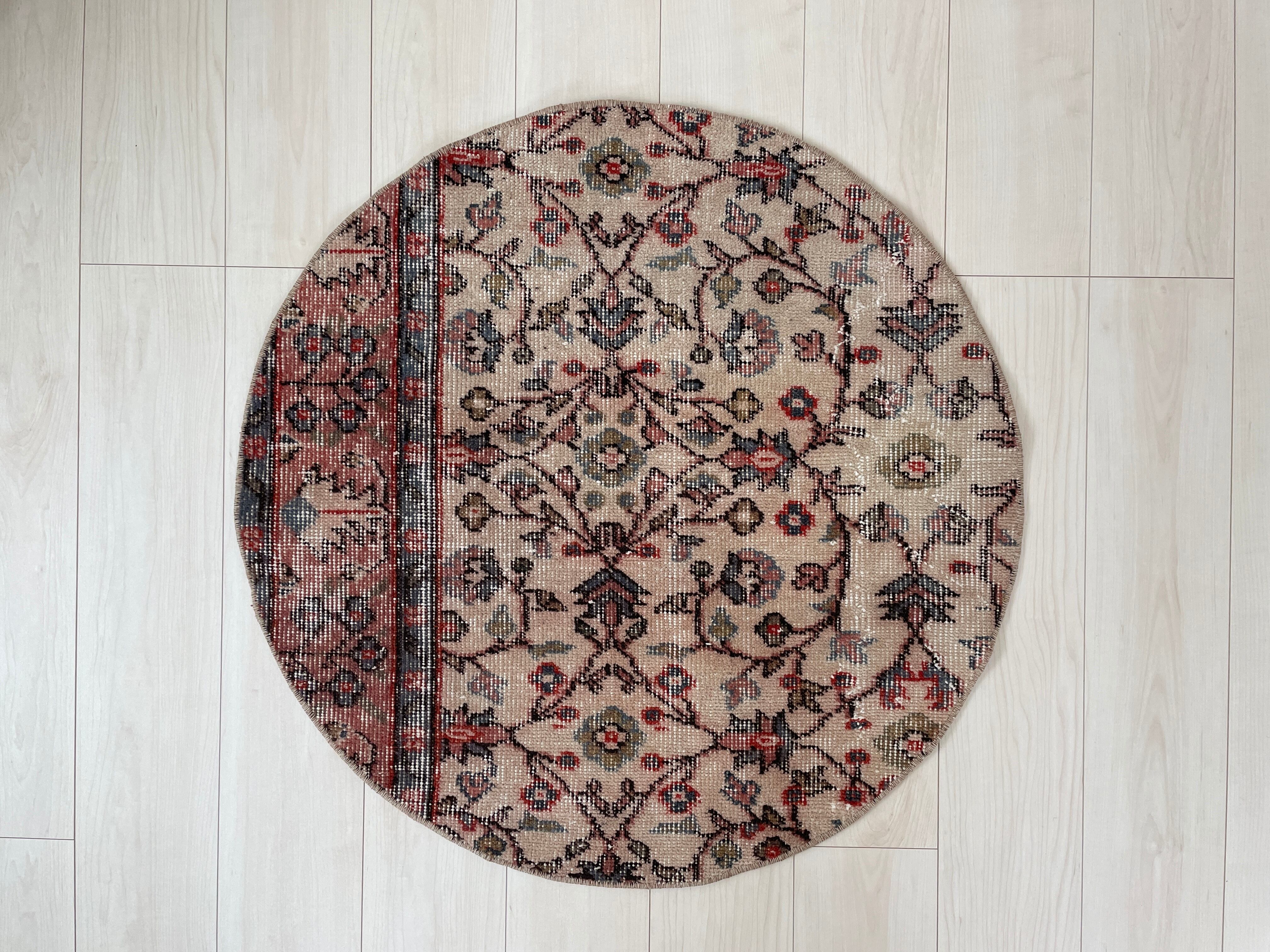70's vintage round rug -”manmaru pink” floral-