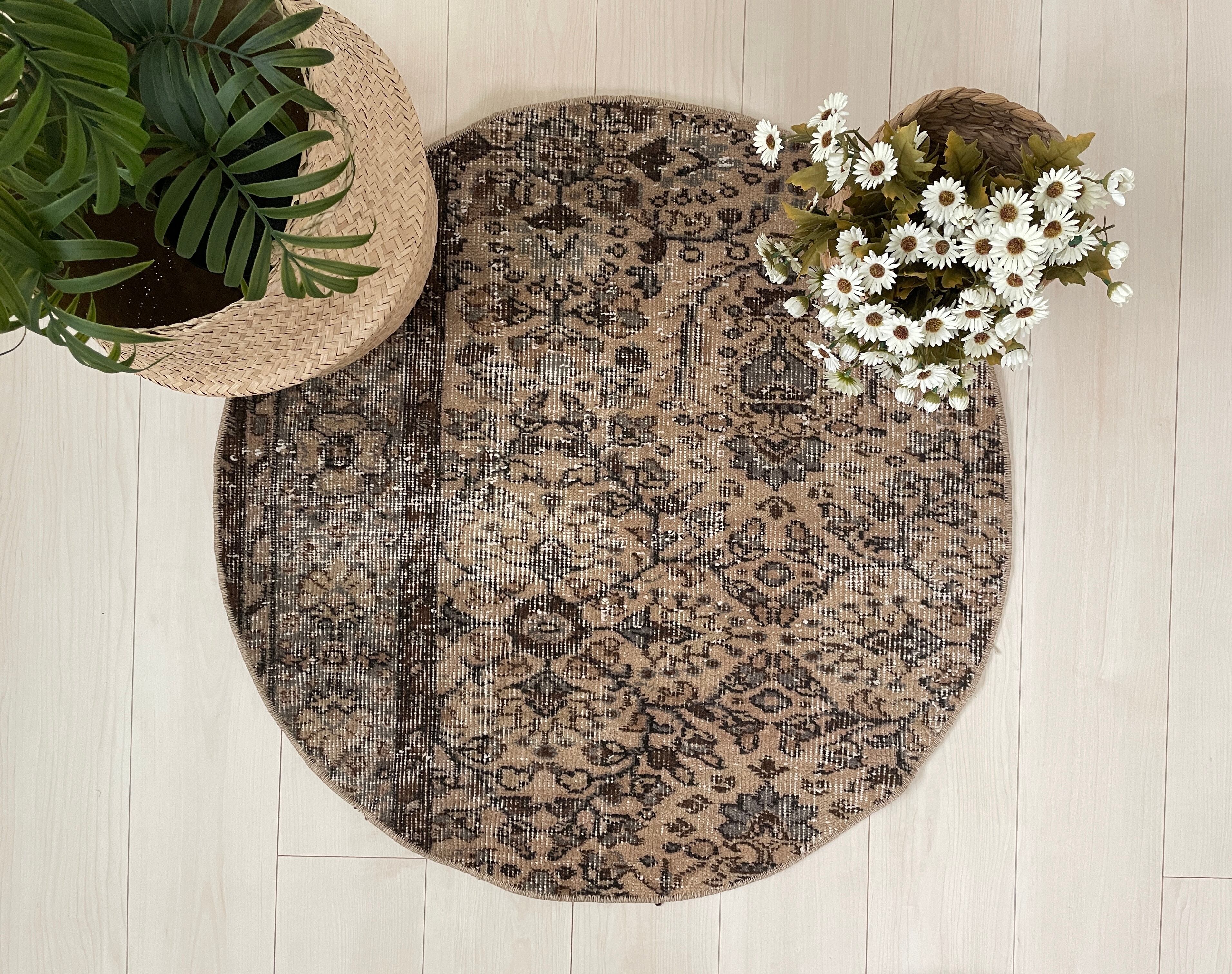 70's vintage round rug -”kokuto milk tea”-