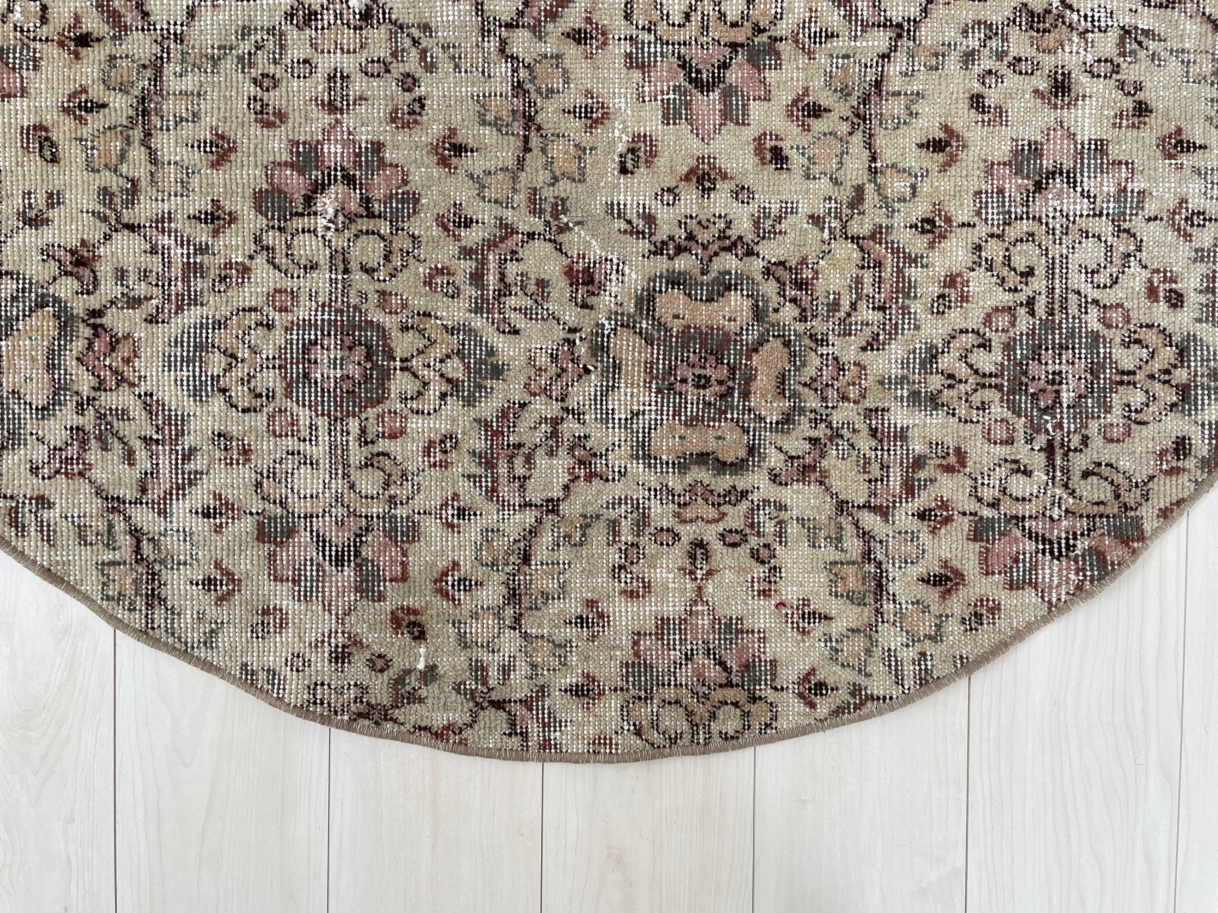 まんまるな形と、上品なデザインのバランスが魅力的なヴィンテージラグ。