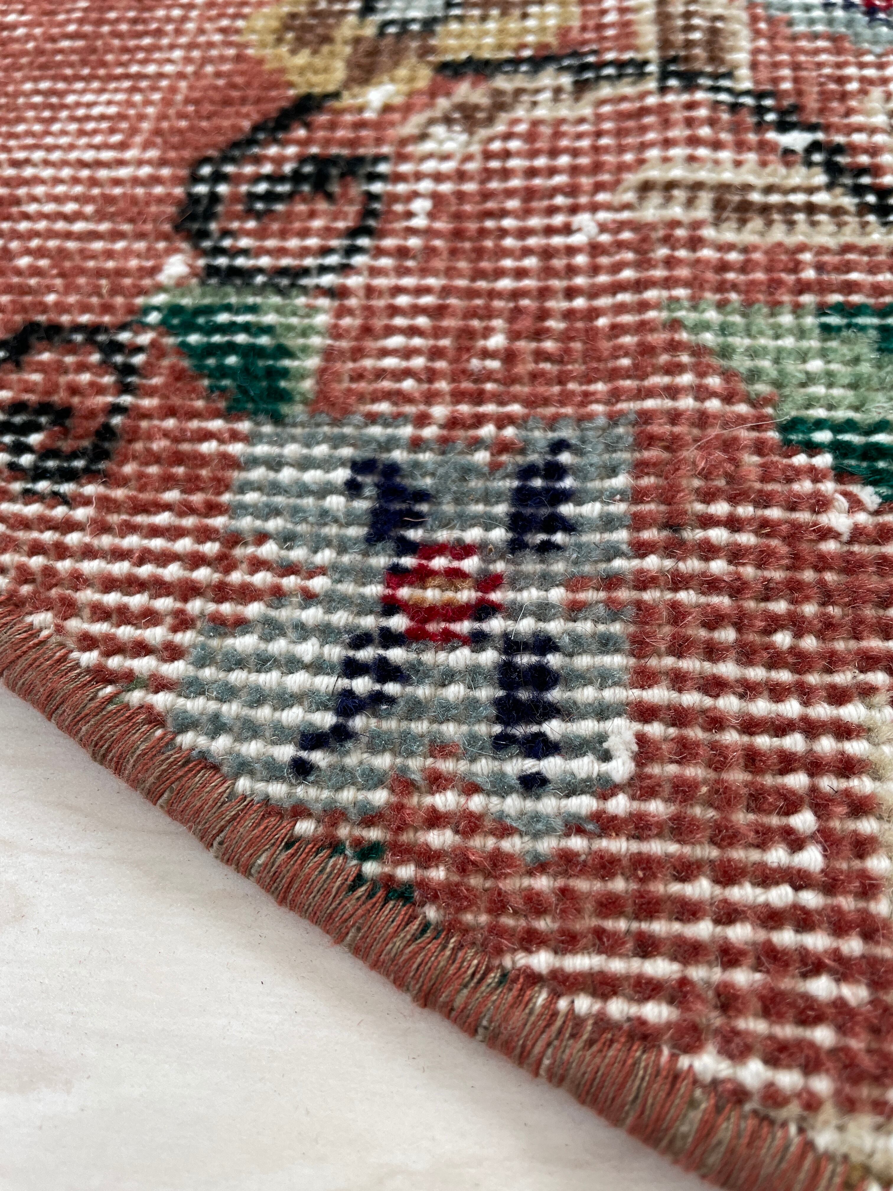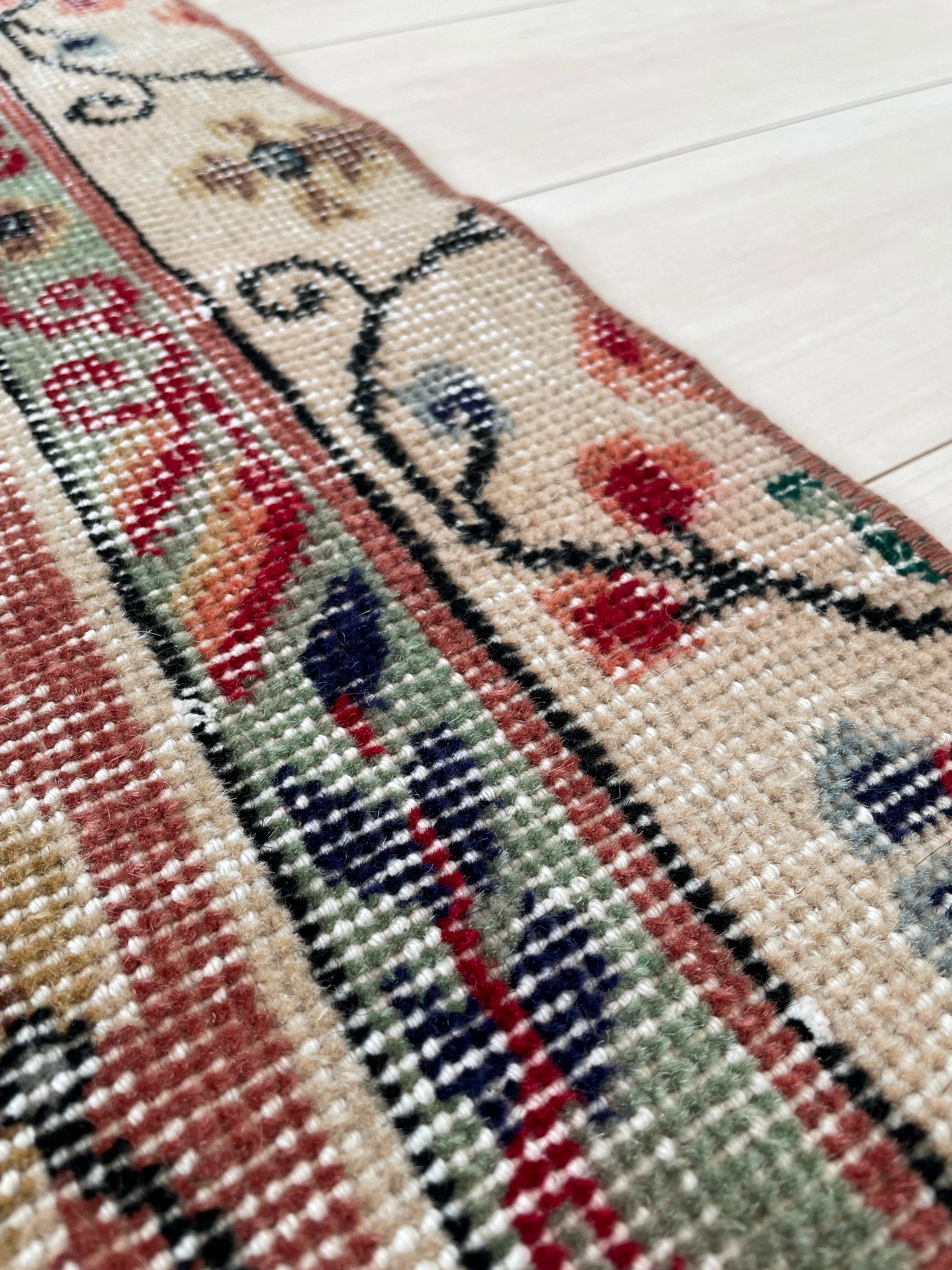 お花が咲いたようなお花柄ヴィンテージラグなので、敷いてあるだけでもインテリアになりますよ。