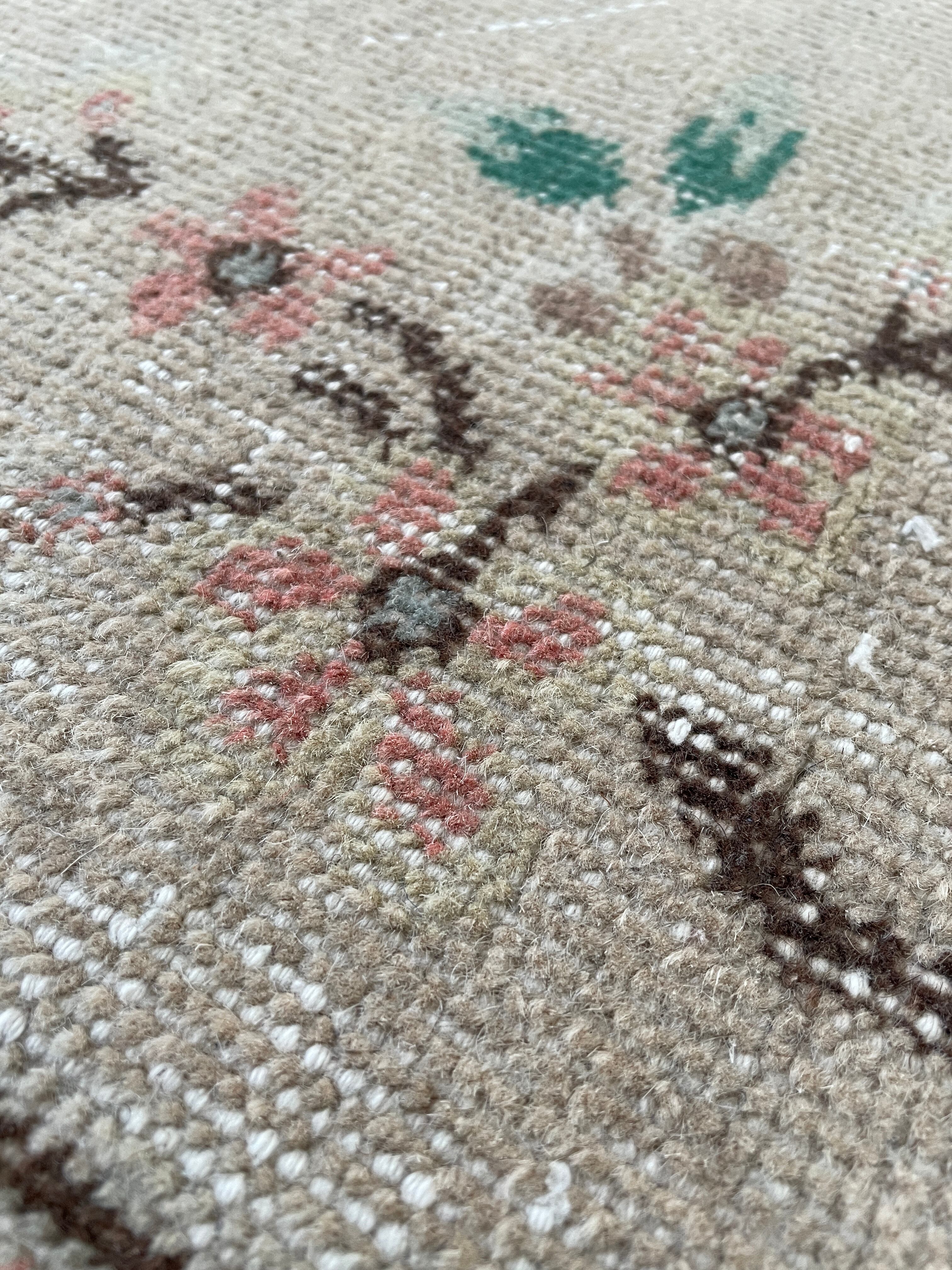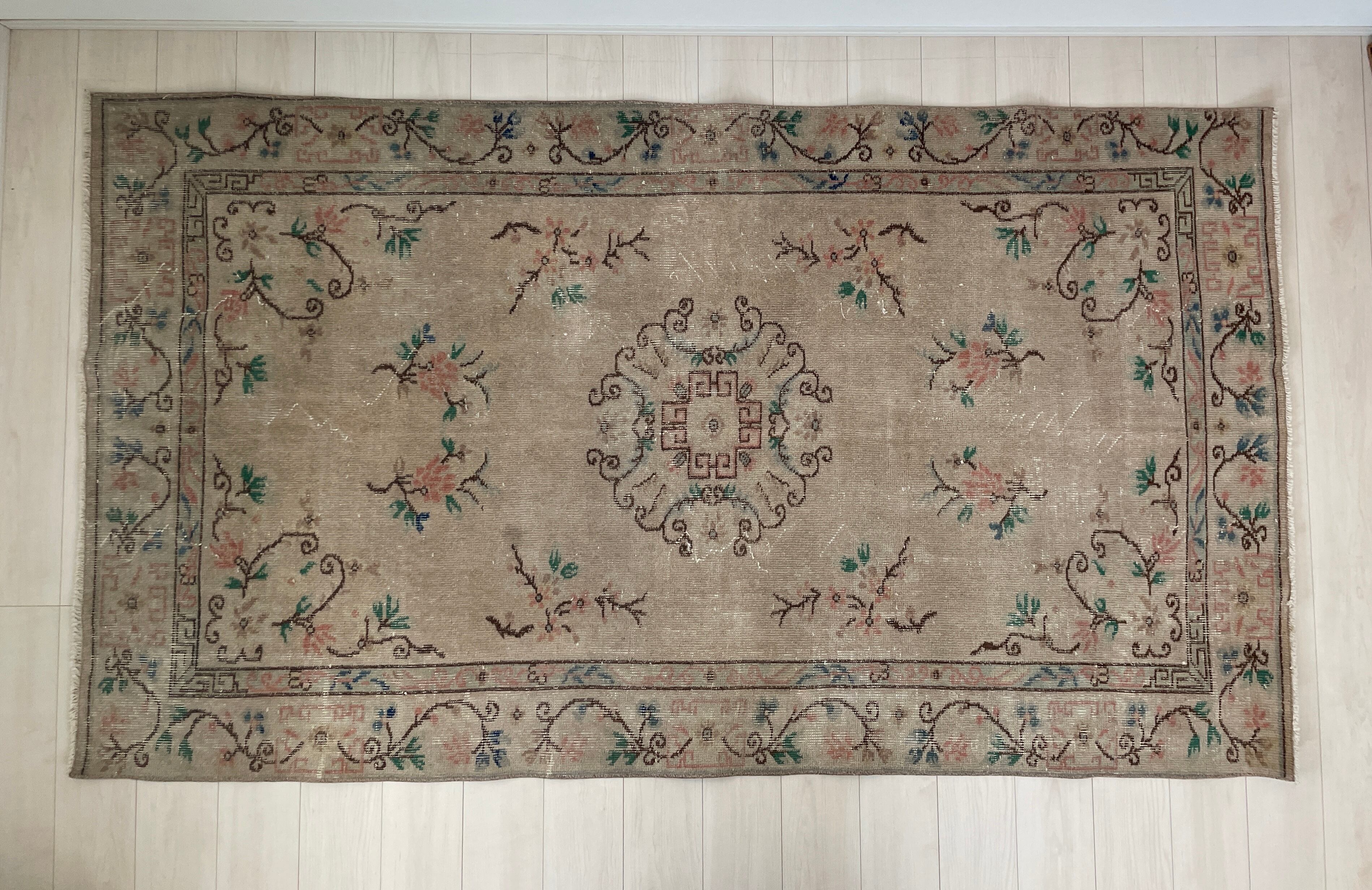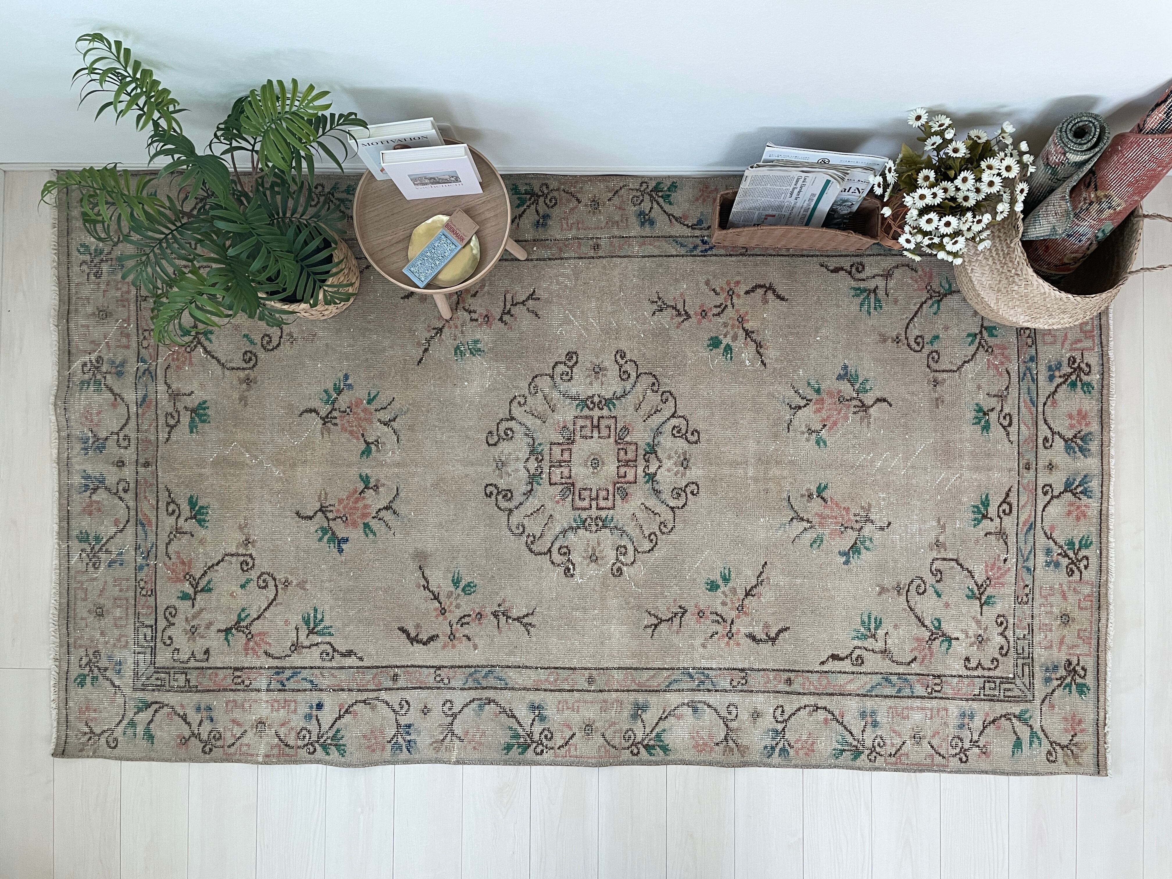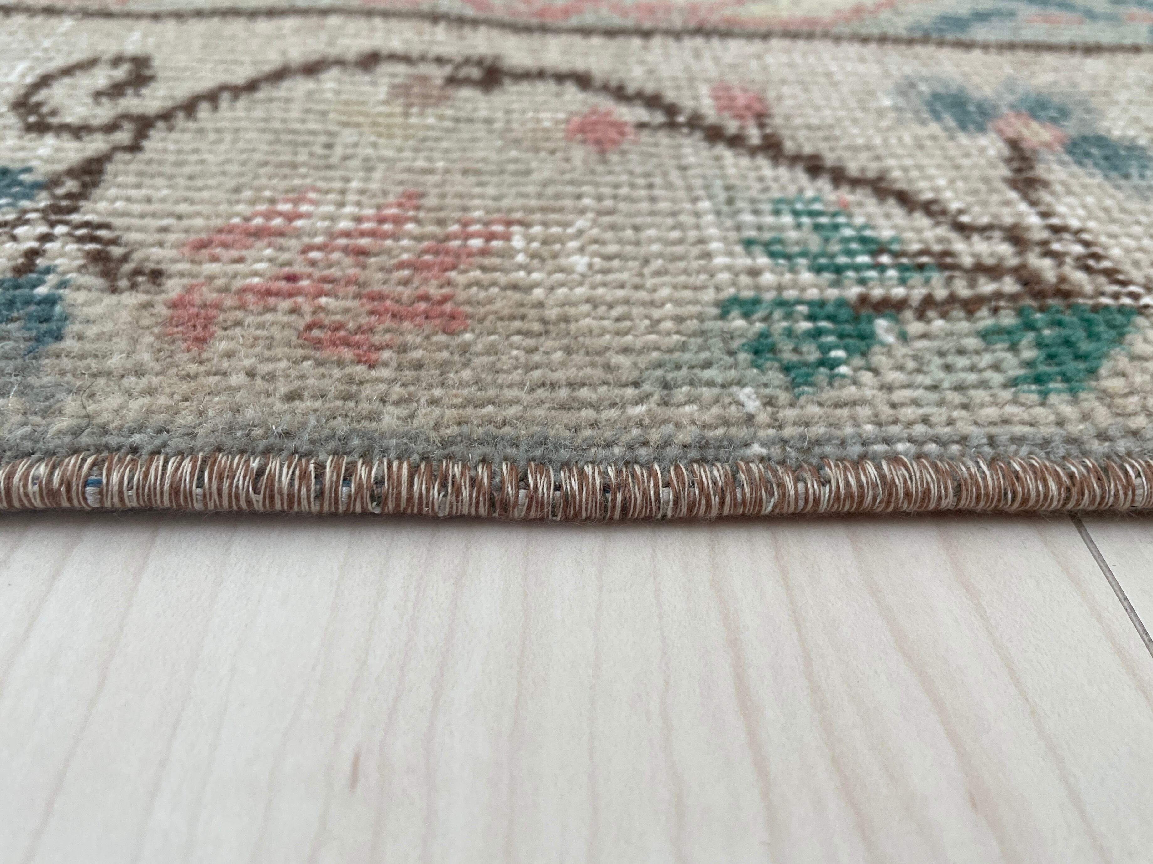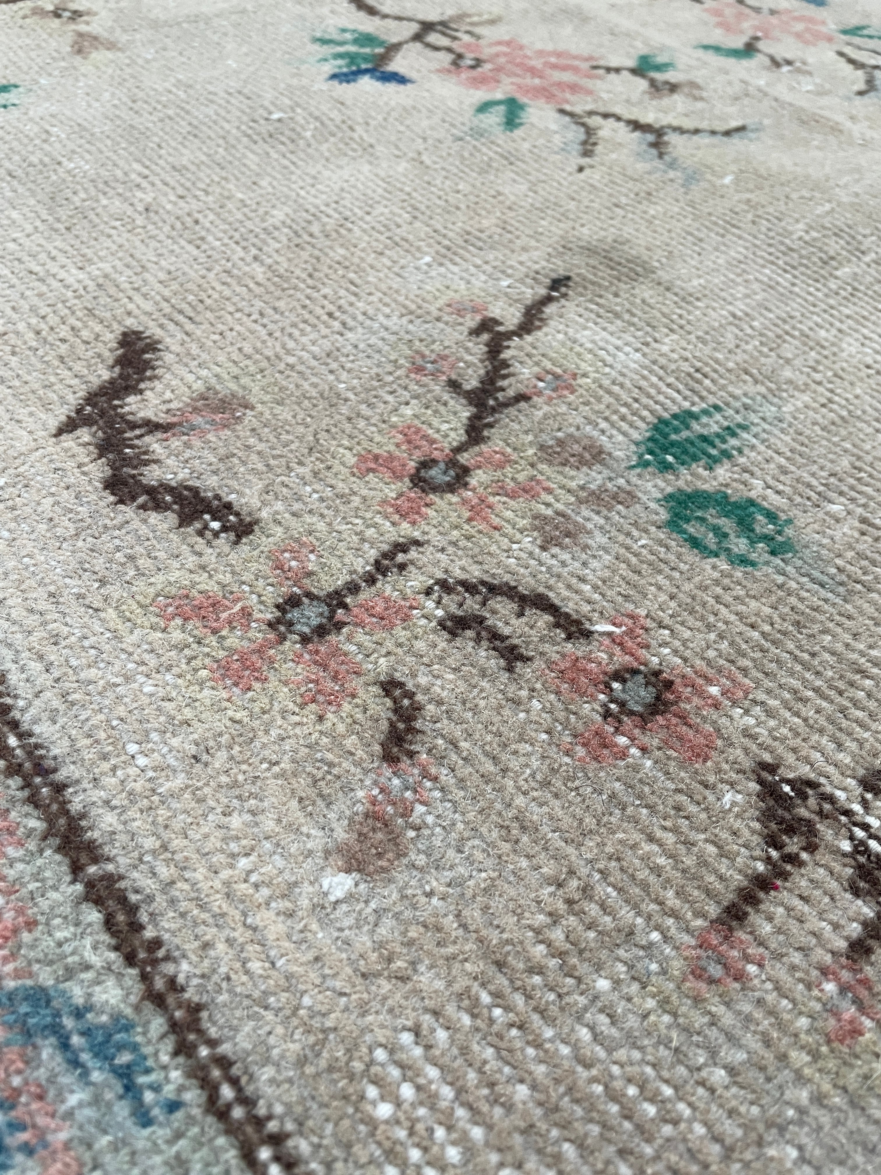 上品に咲き誇ったお花たちが美しいヴィンテージラグ。