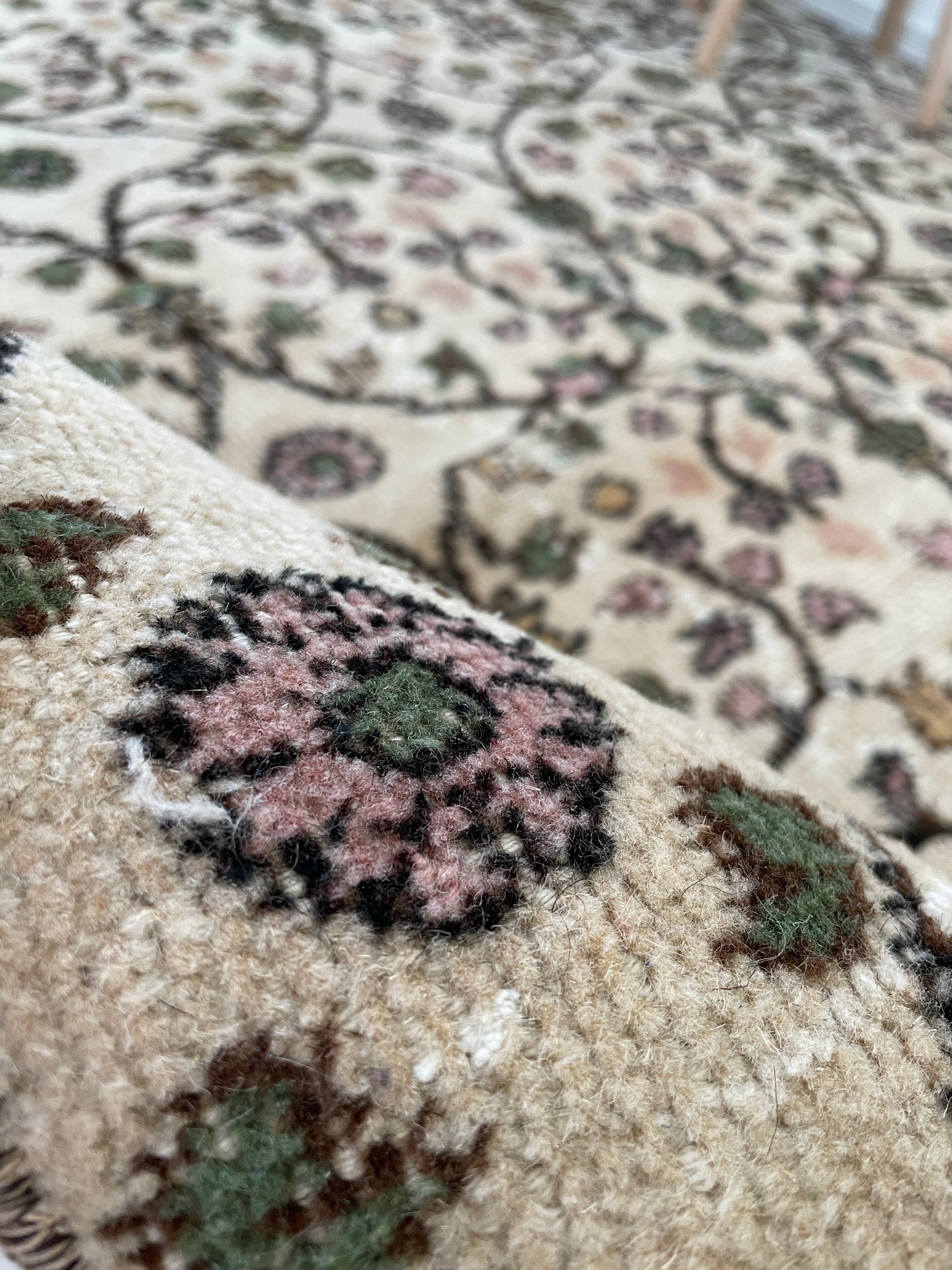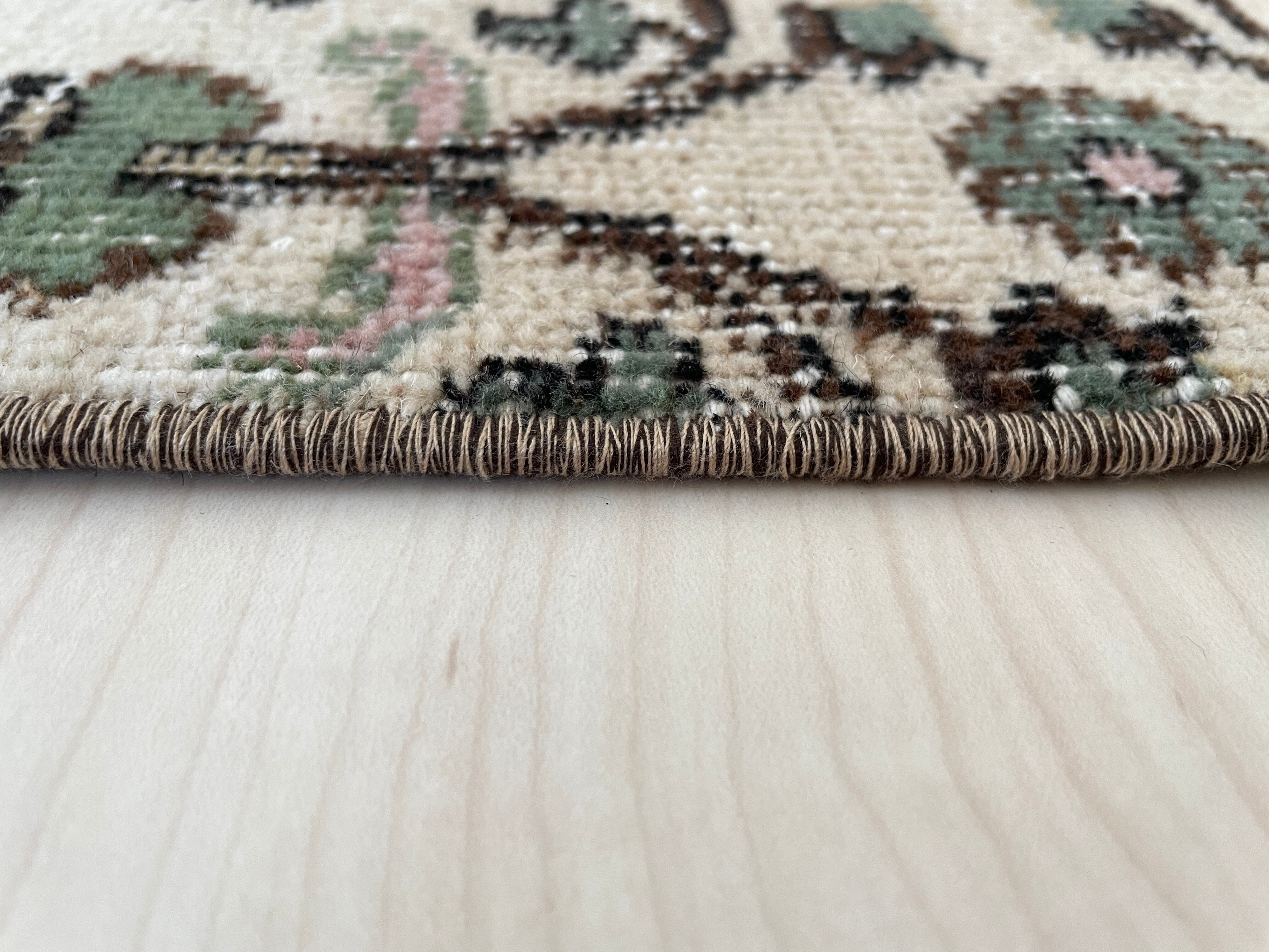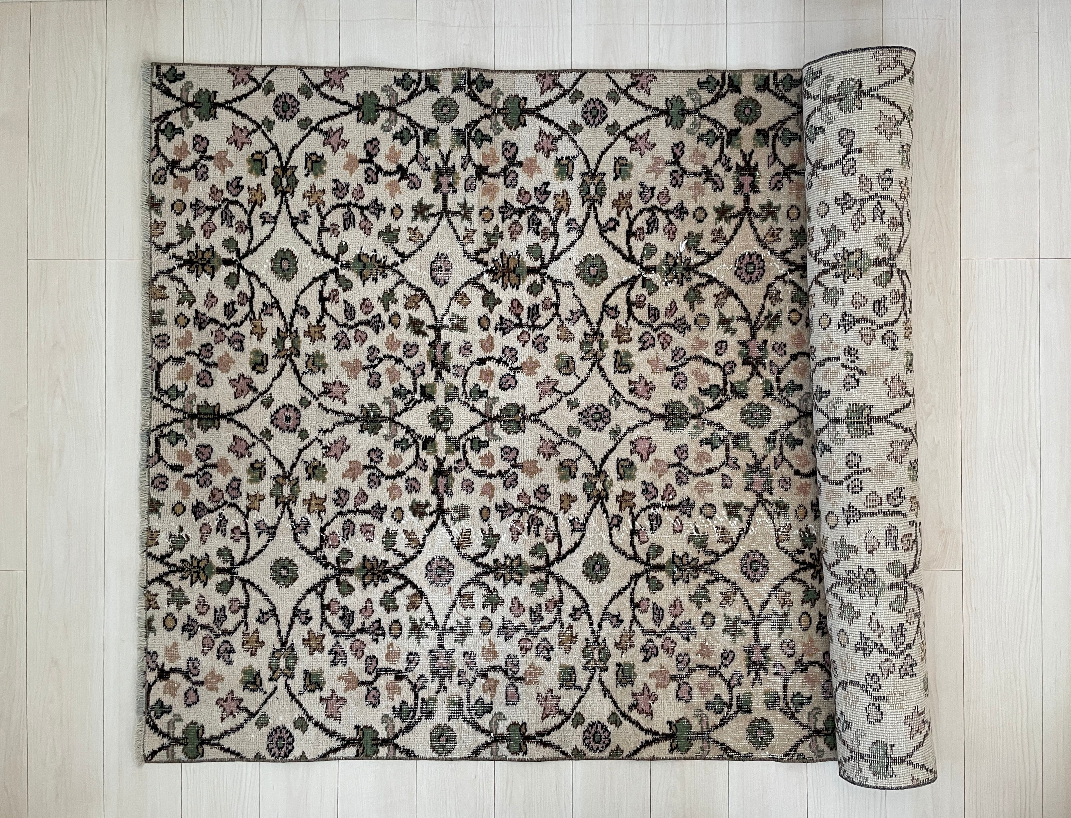 小さなお花がツタにデザインされた、可愛らしいヴィンテージラグ。