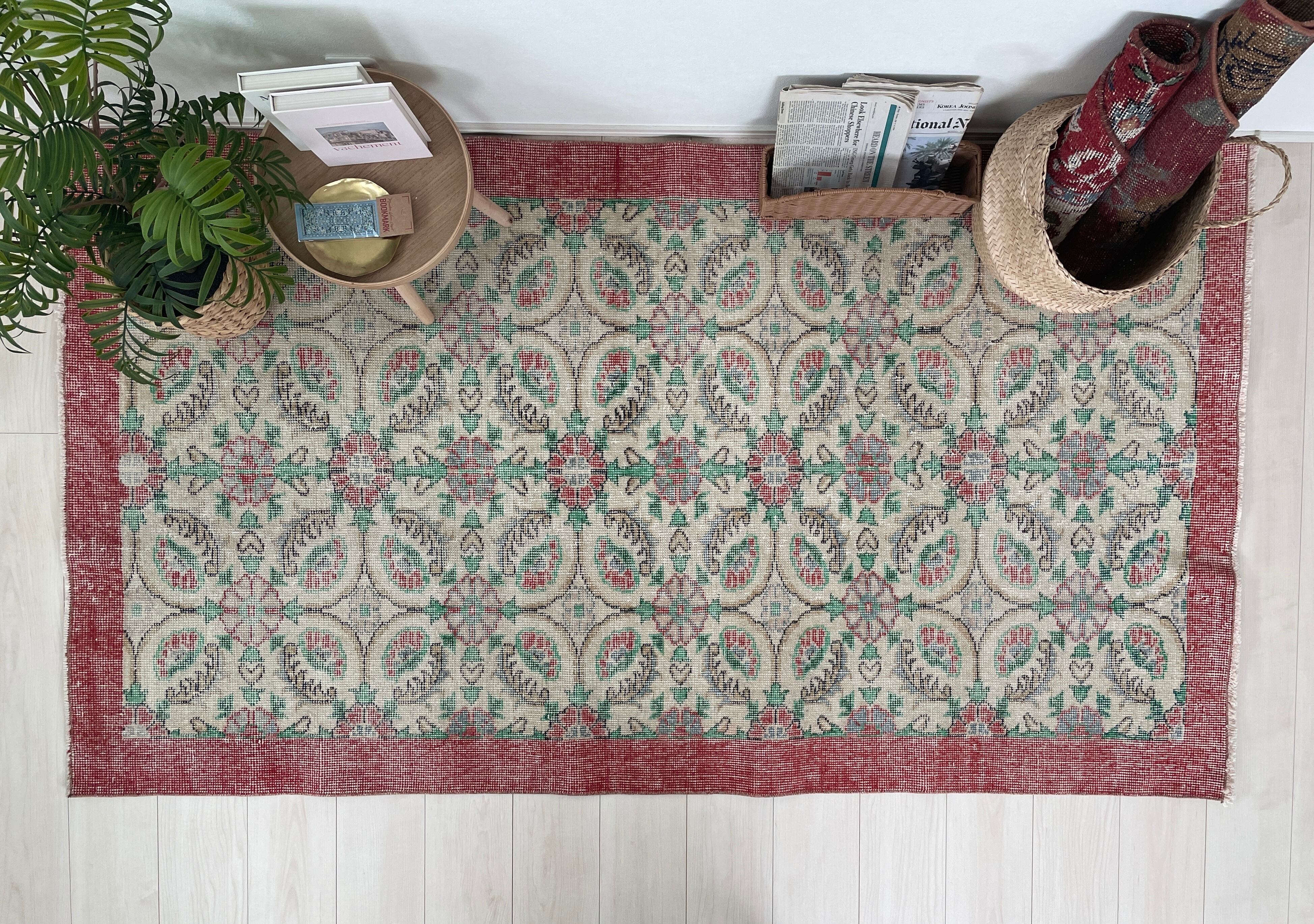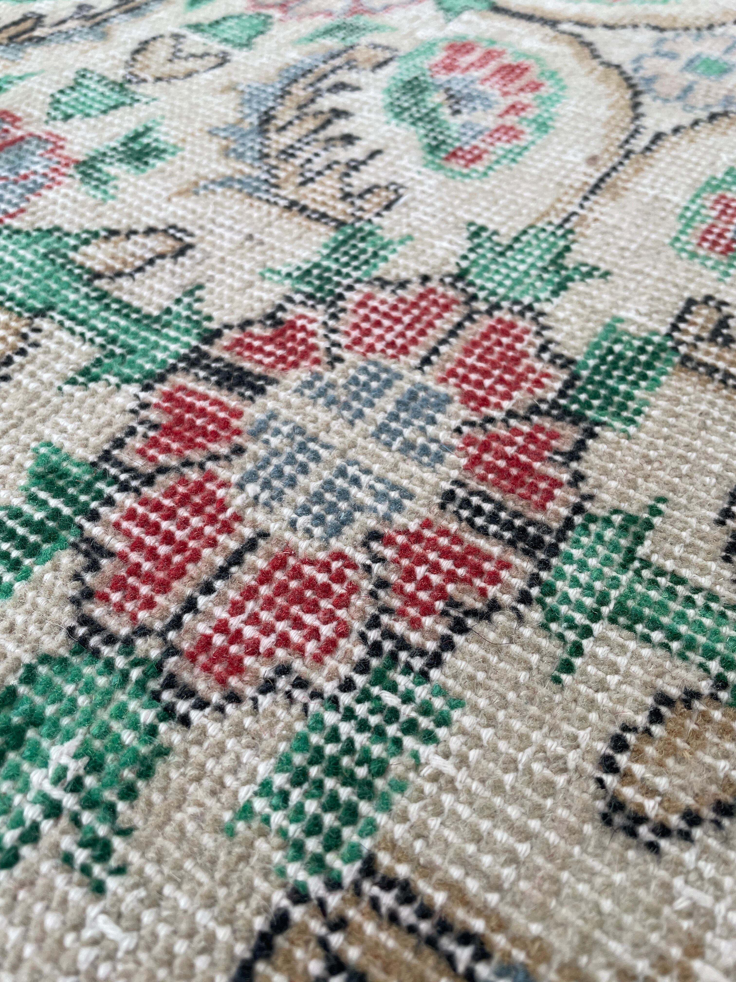 足元にぶわっとお花が咲いた様な可愛いらしいヴィンテージラグ。
