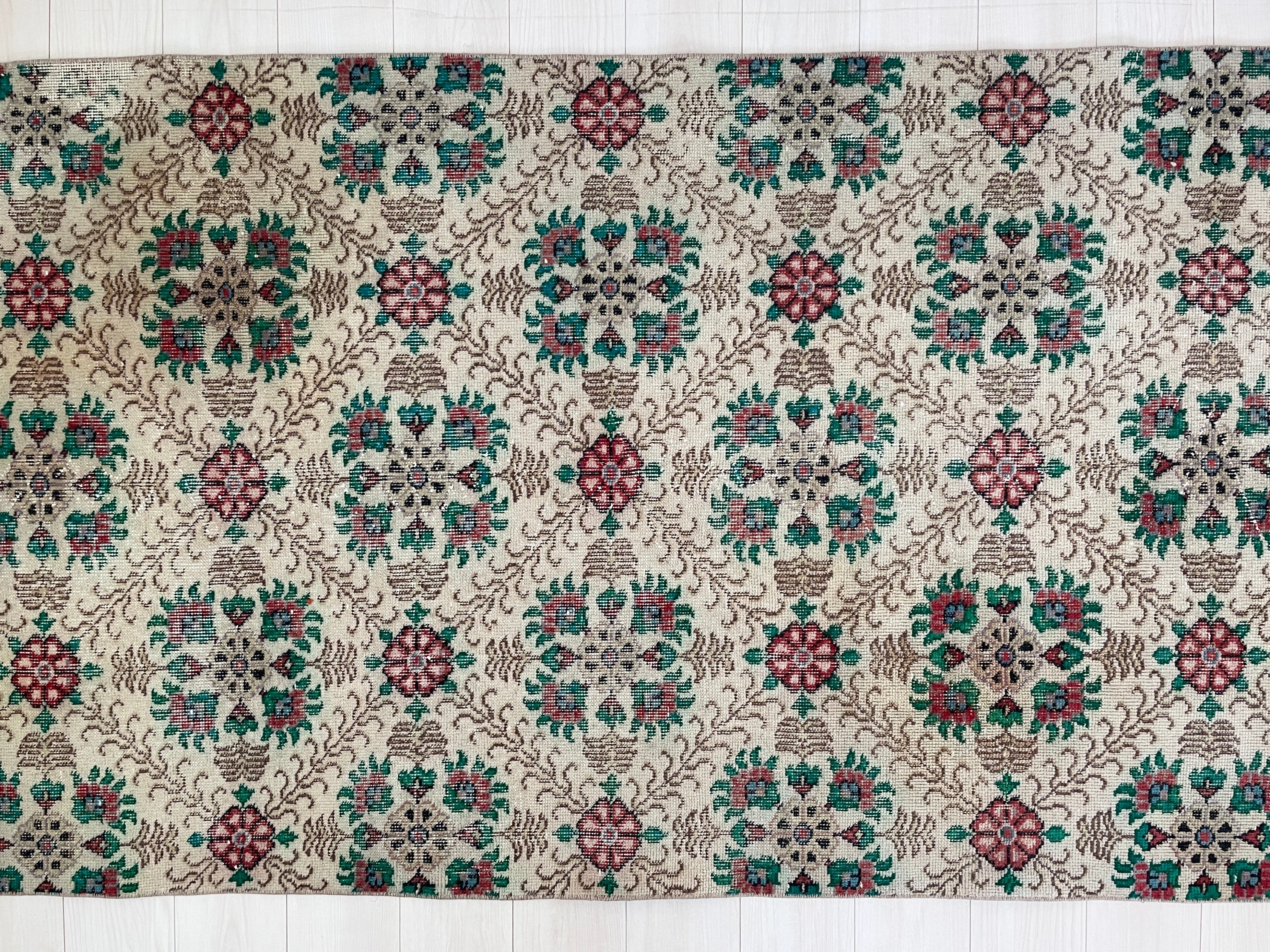 満開のお花が綺麗に残っているヴィンテージラグ。