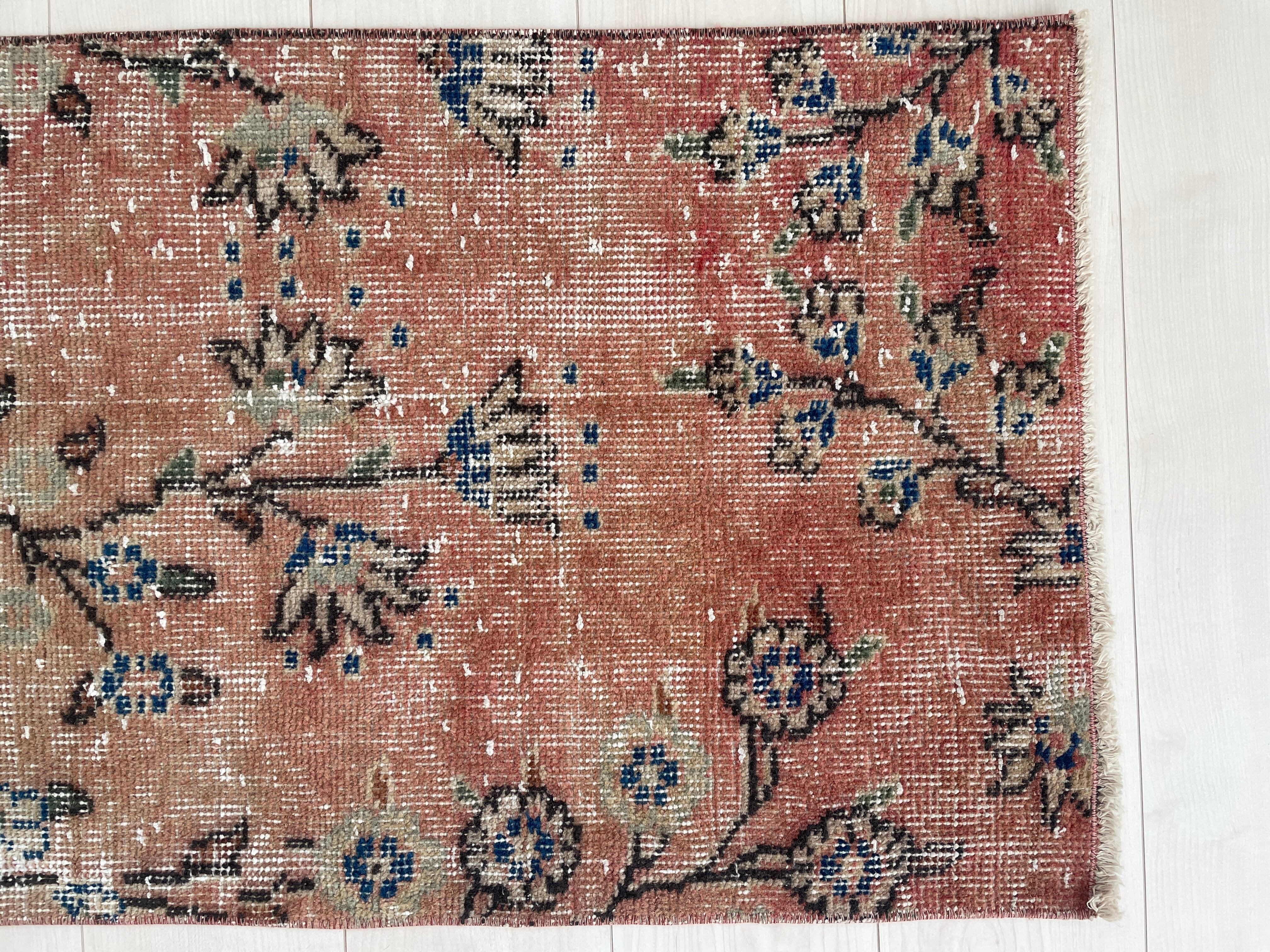 70's vintage mini rug -"apricot blue"-