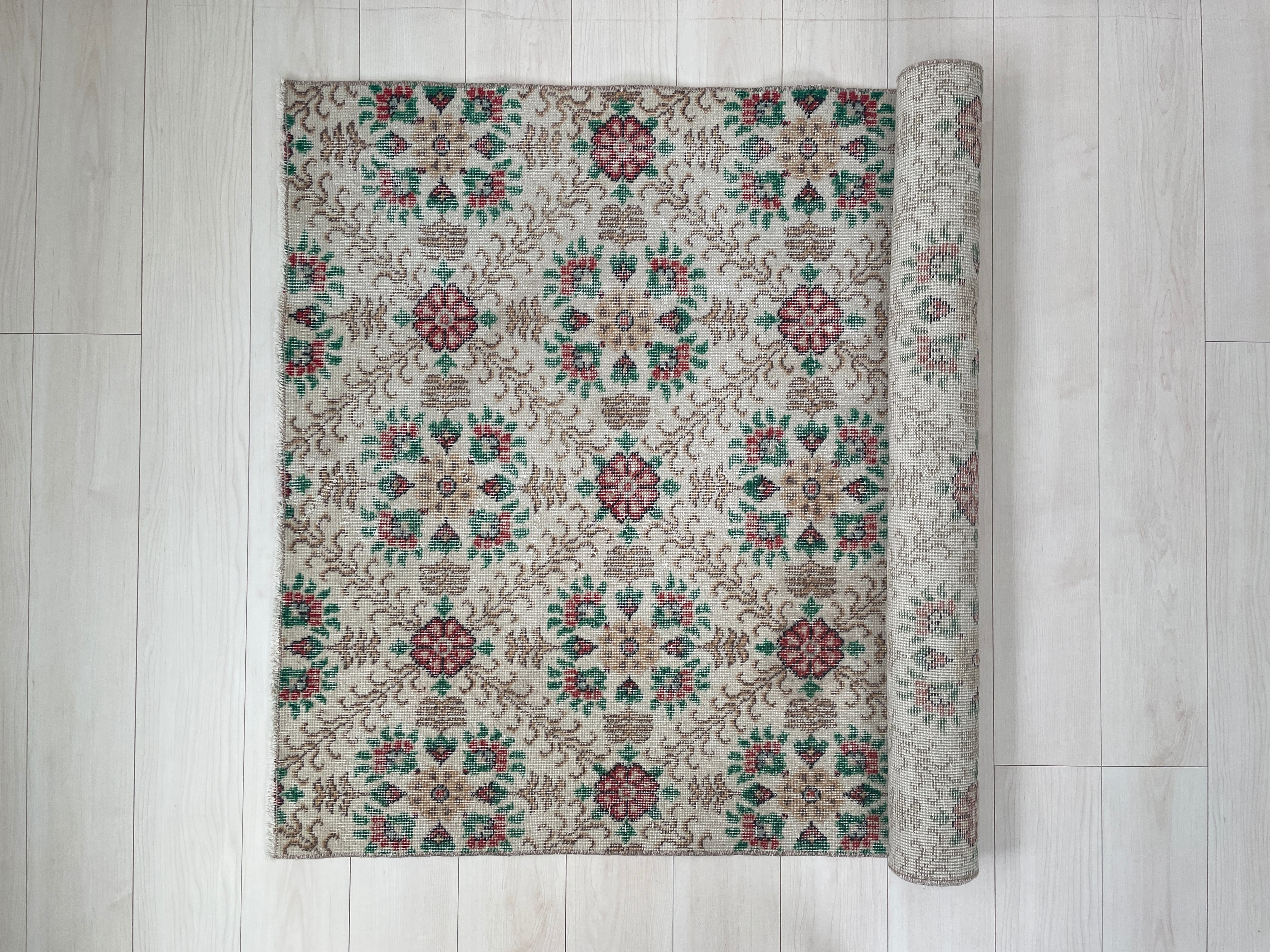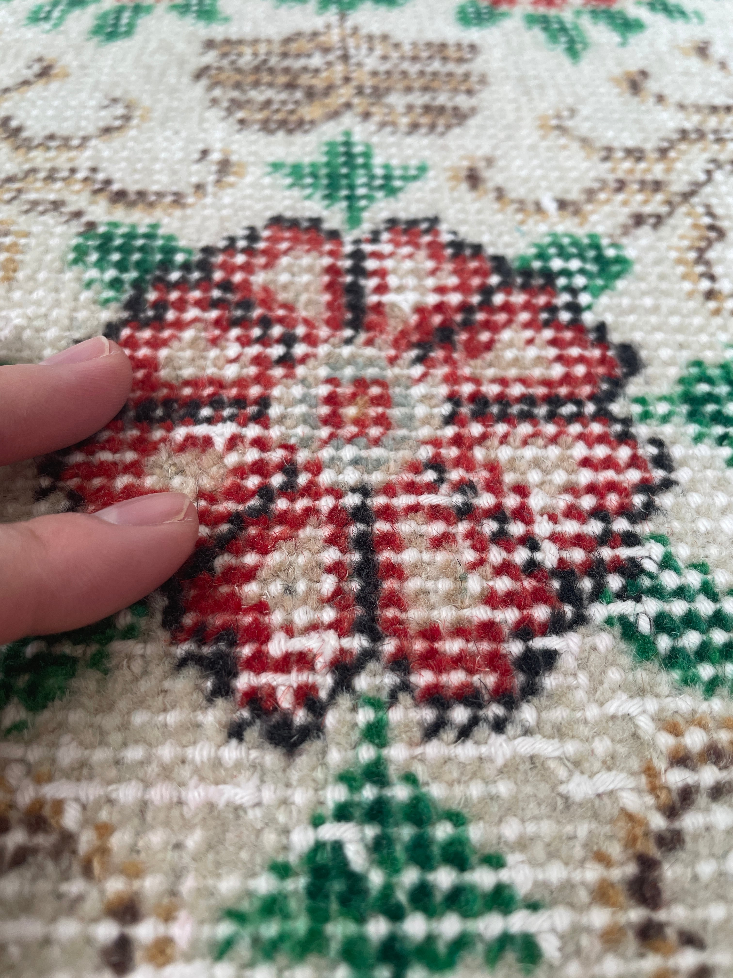 満開のお花が綺麗に残っているヴィンテージラグ。