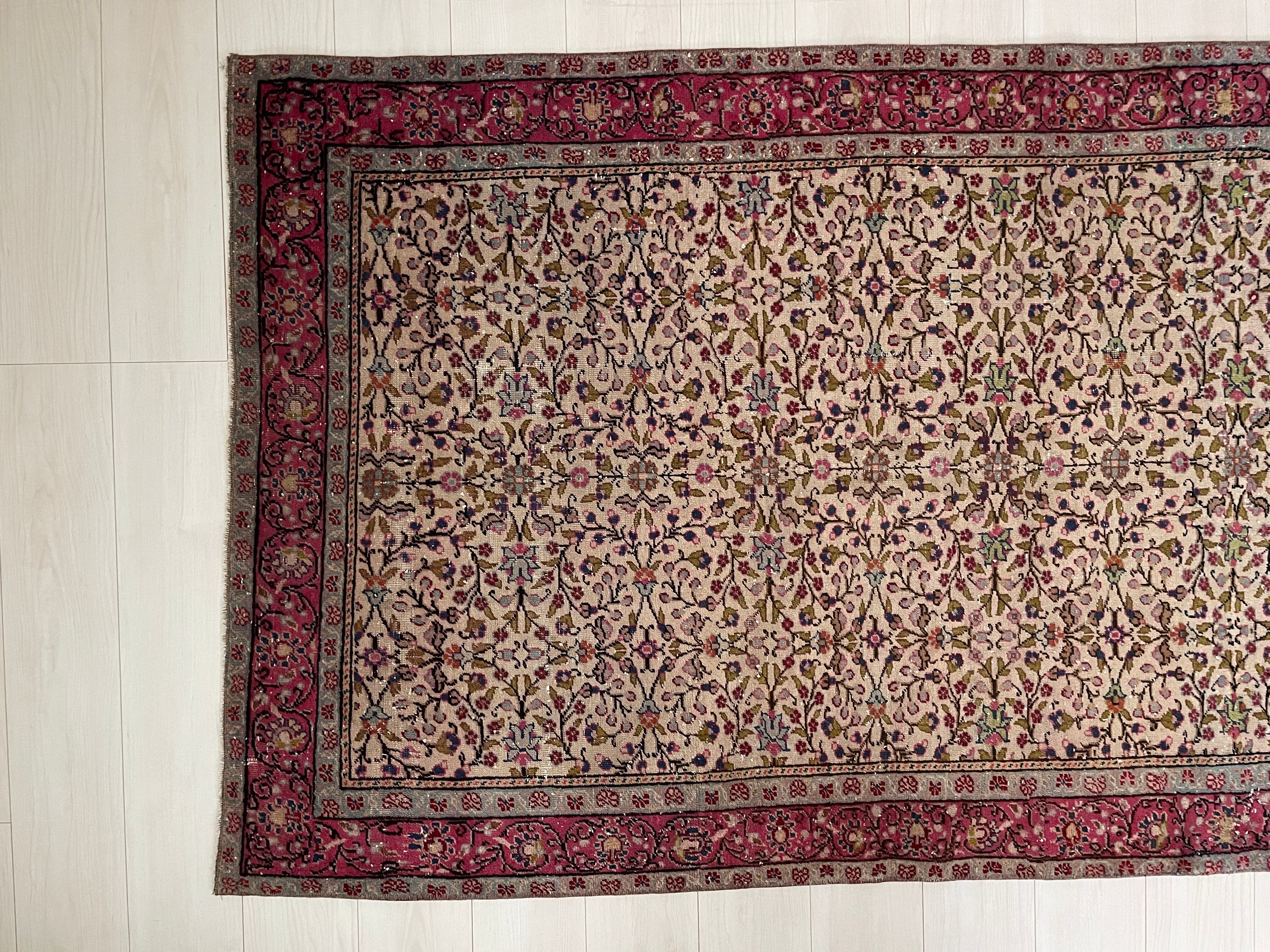 70's vintage rug -"pink floral"-