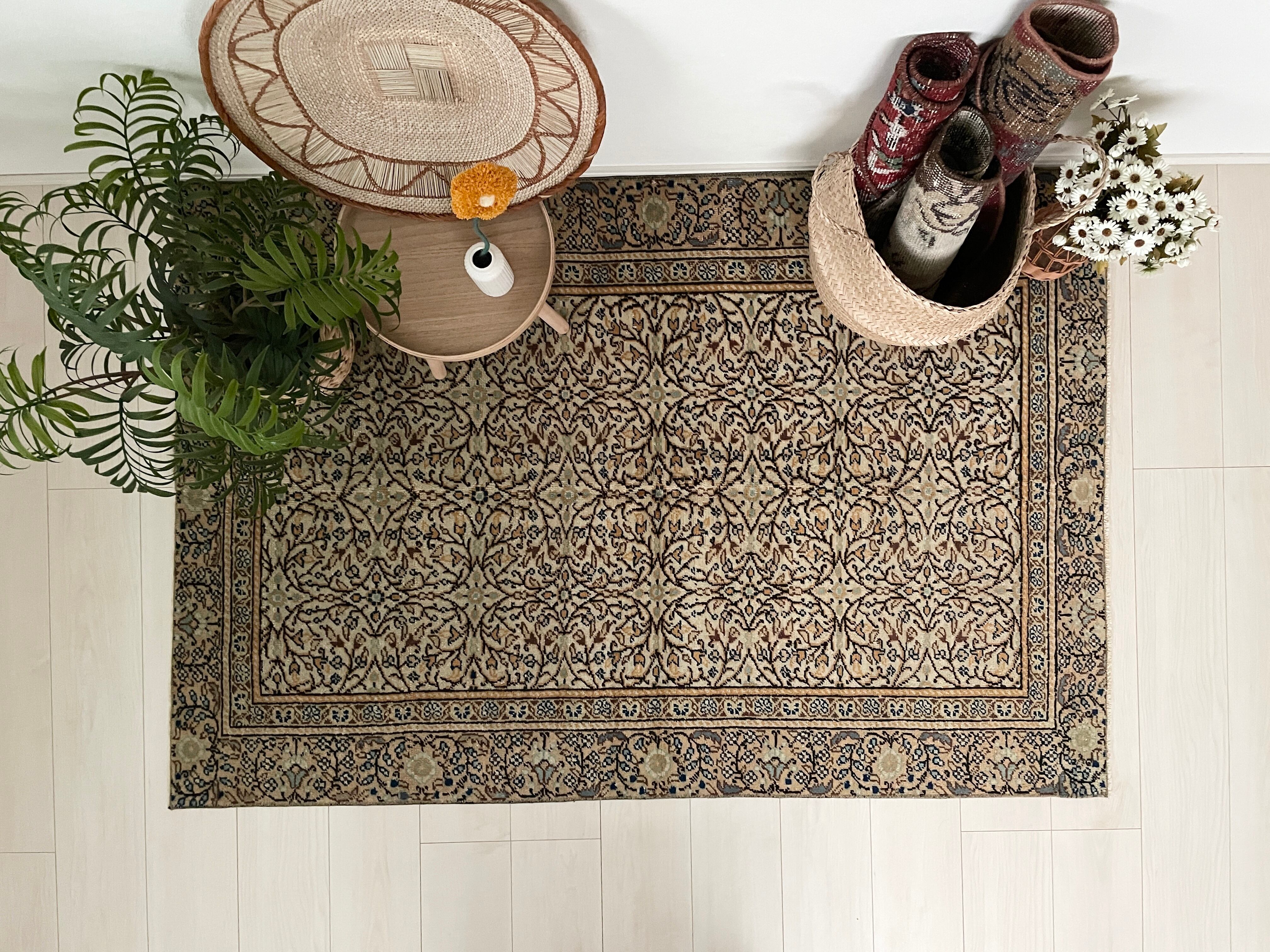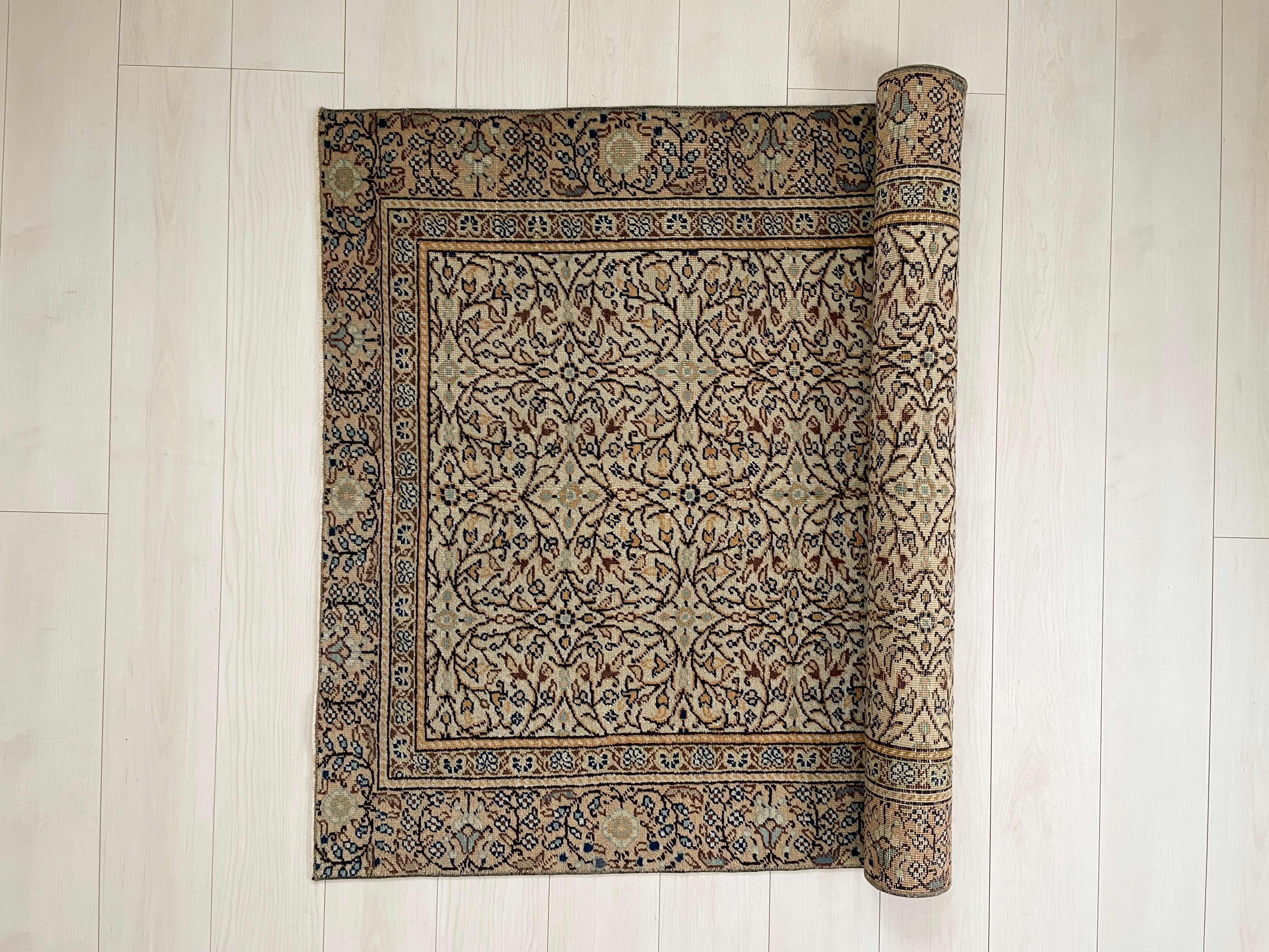 気品のあるデザインに小花柄が可愛らしい印象のヴィンテージラグ。