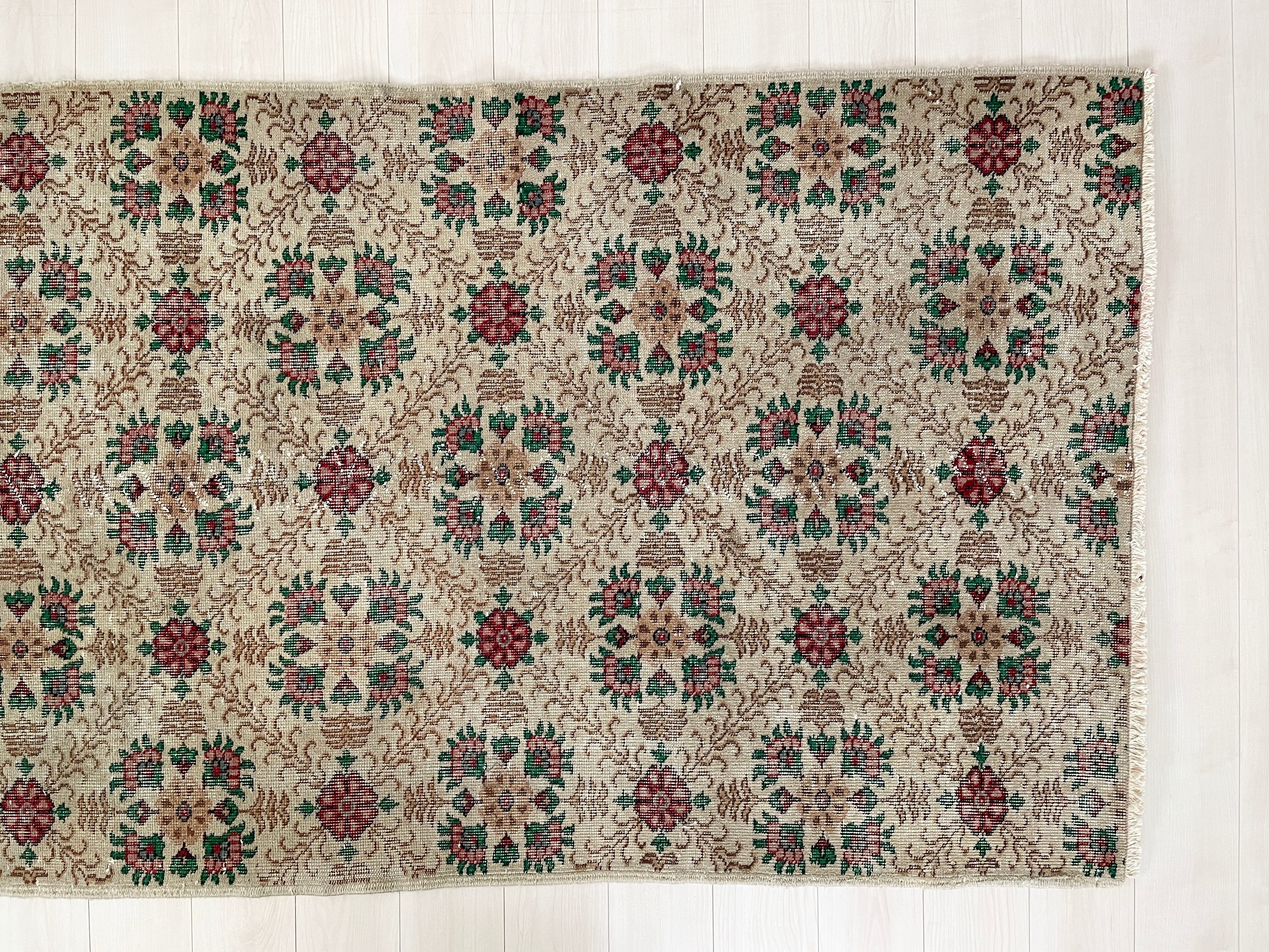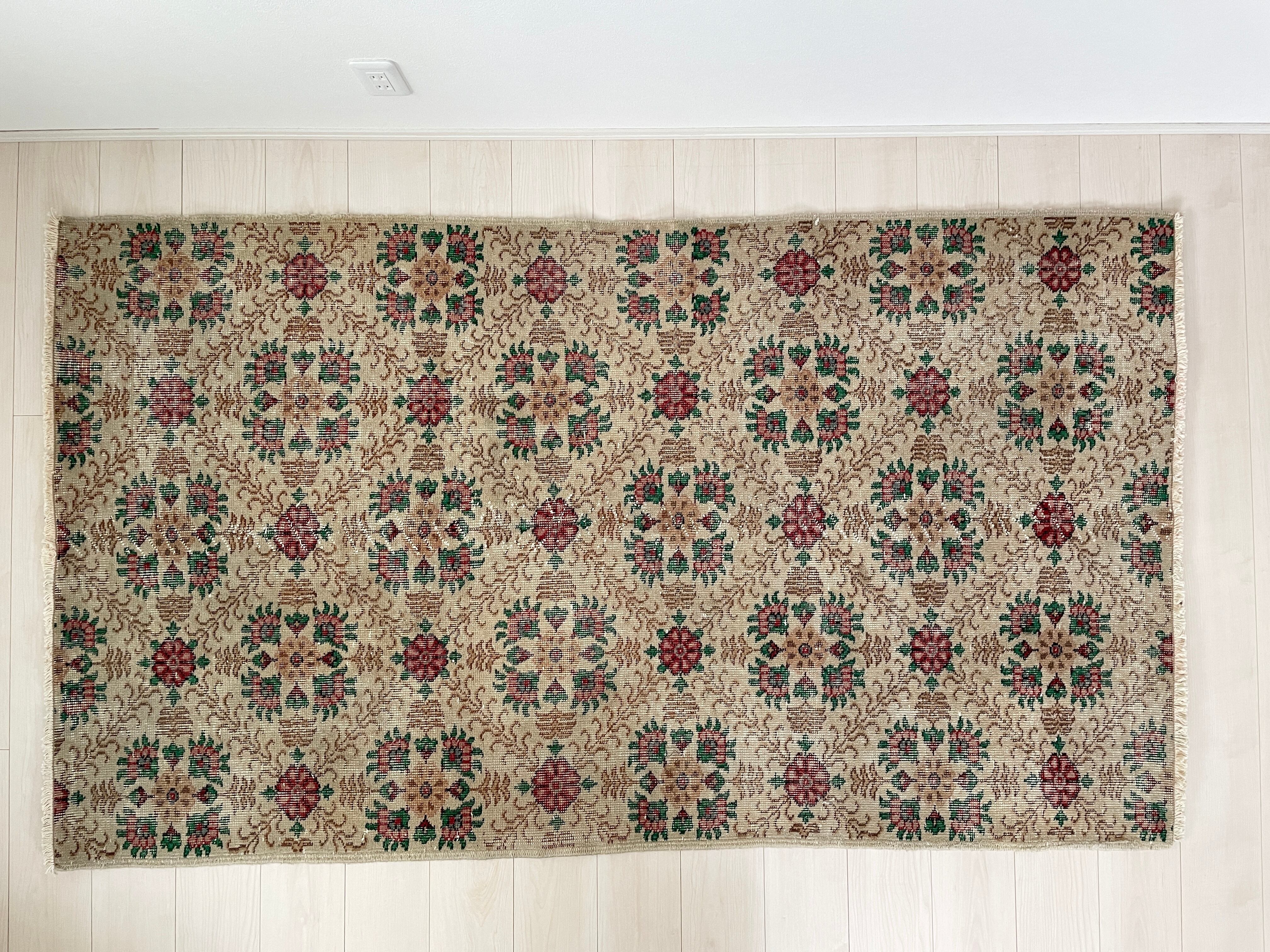 たくさんのブーケが並んでいるような華やかなヴィンテージラグ。