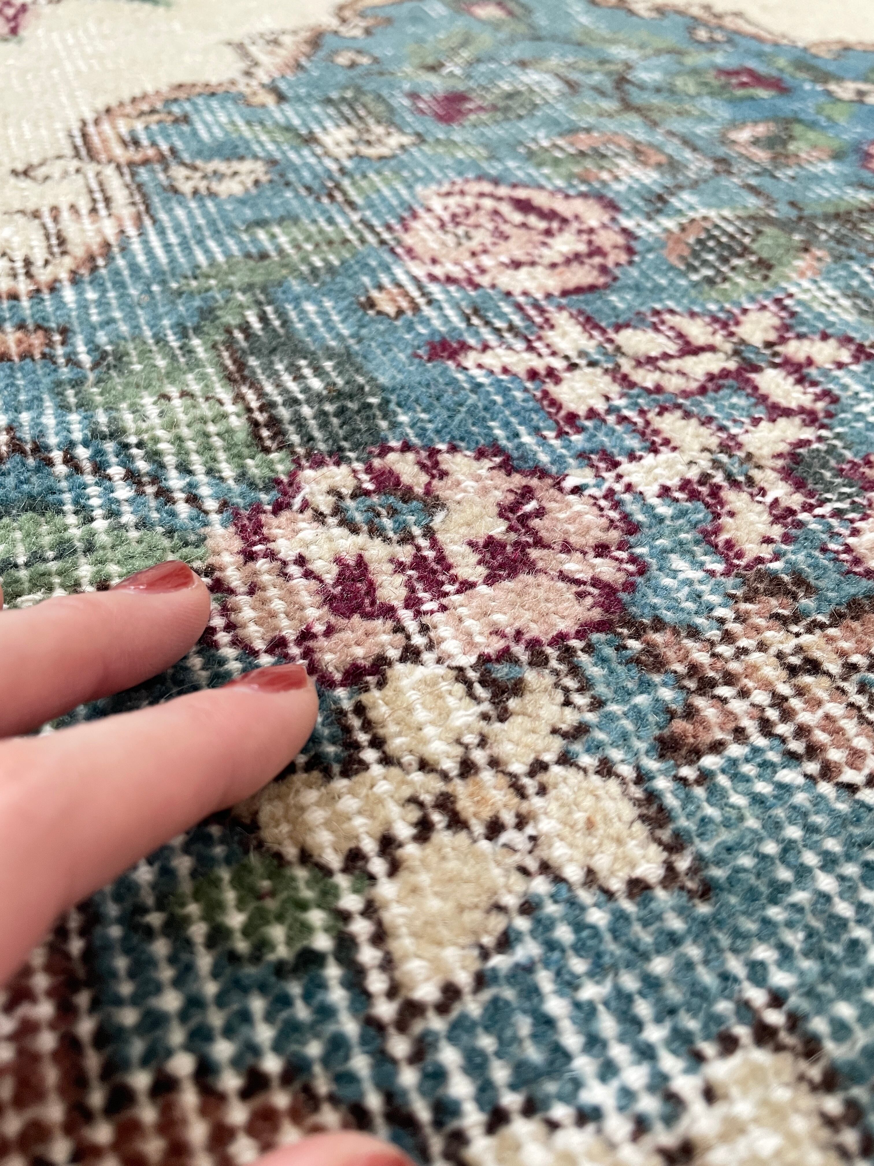 ヴィンテージラグは、糸のほつれ、抜け、毛羽立ち、シミなど見られる場合がございます。ヴィンテージ品ならではの雰囲気としてお楽しみいただけますと幸いです。