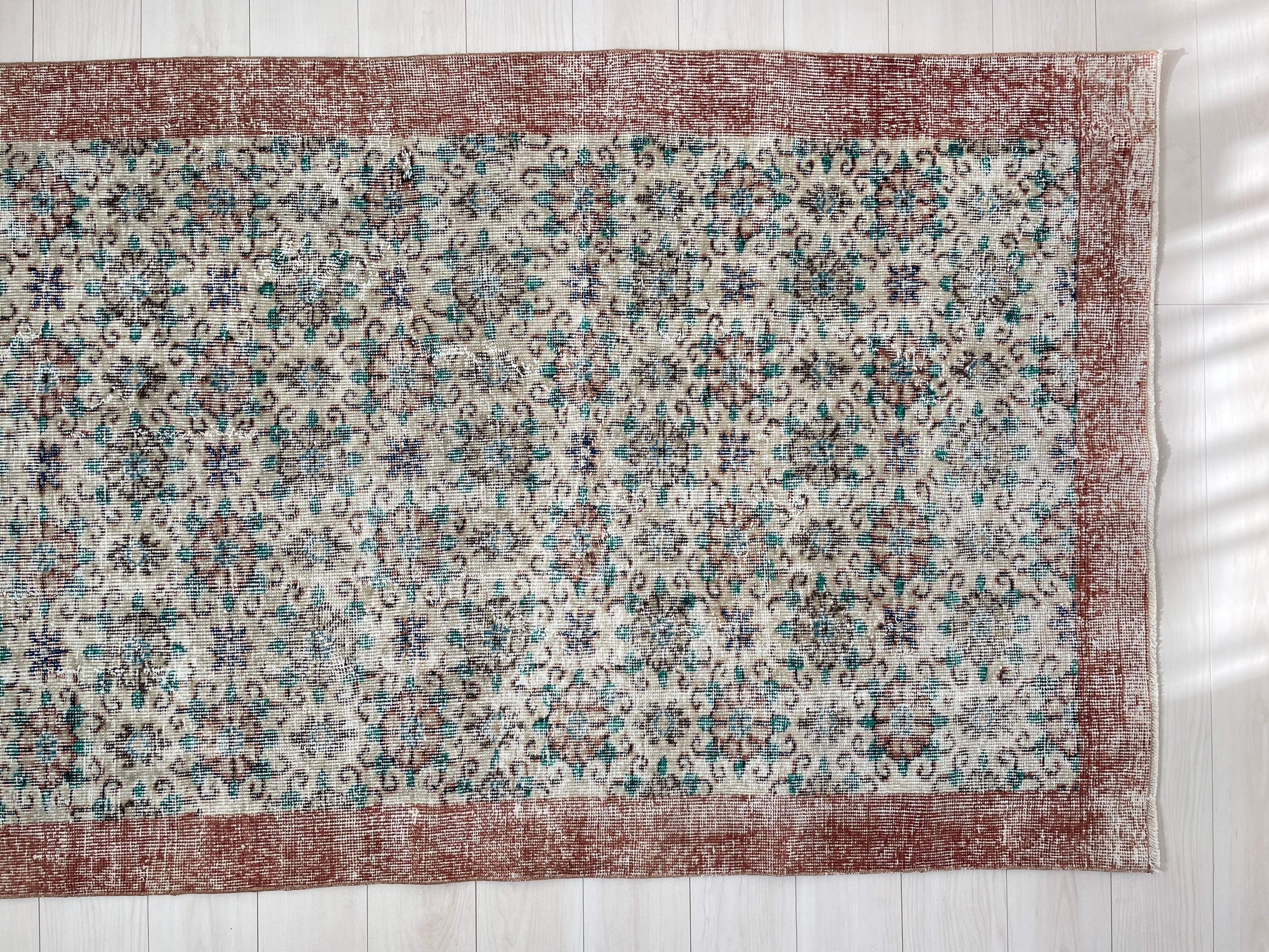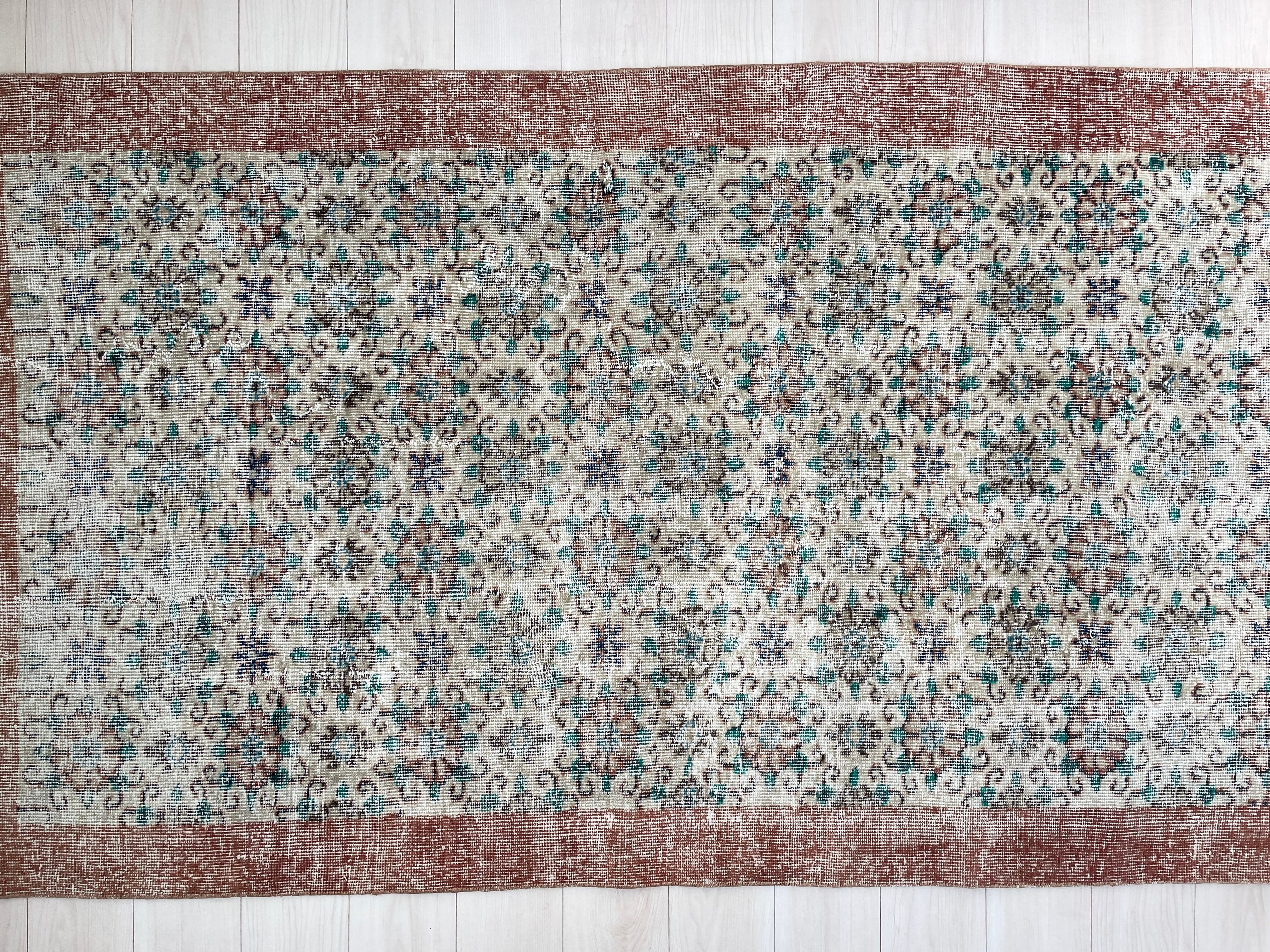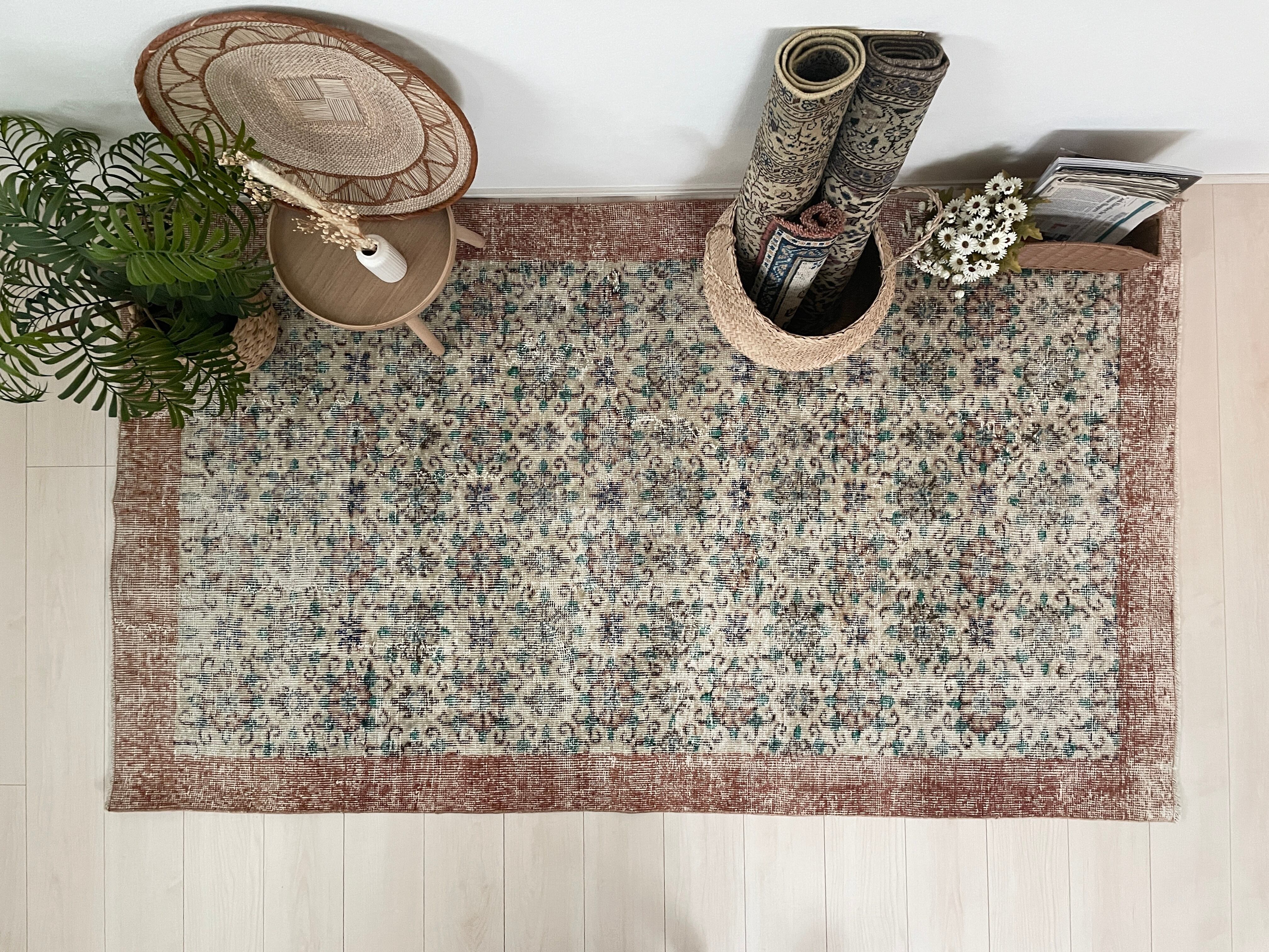 1輪1輪咲き誇るお花が華やかなヴィンテージラグ。