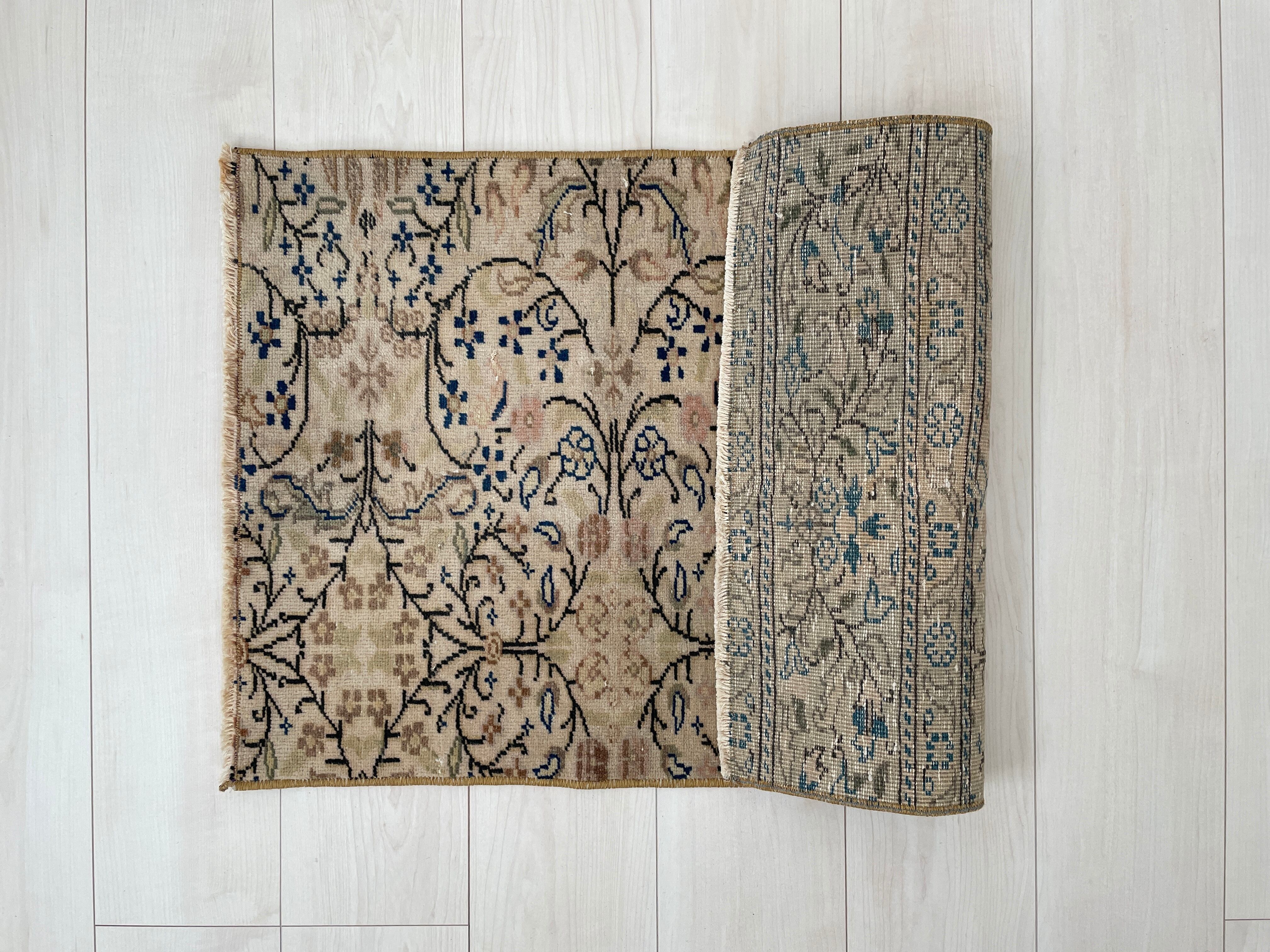 お花が咲いたようなお花柄ヴィンテージラグなので、敷いてあるだけでもインテリアになりますよ。